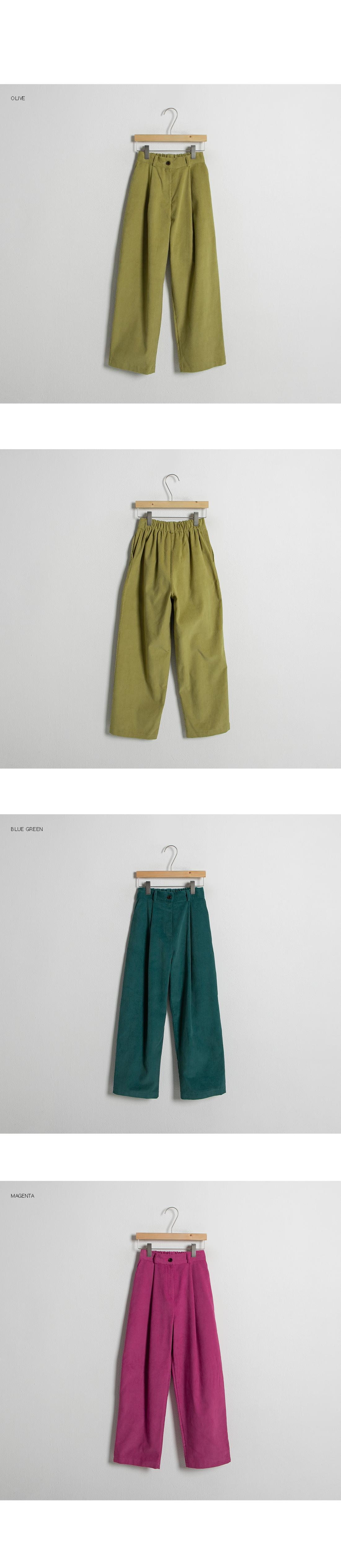 코듀로이 백밴딩 와이드 컬러 팬츠를 소개합니다.