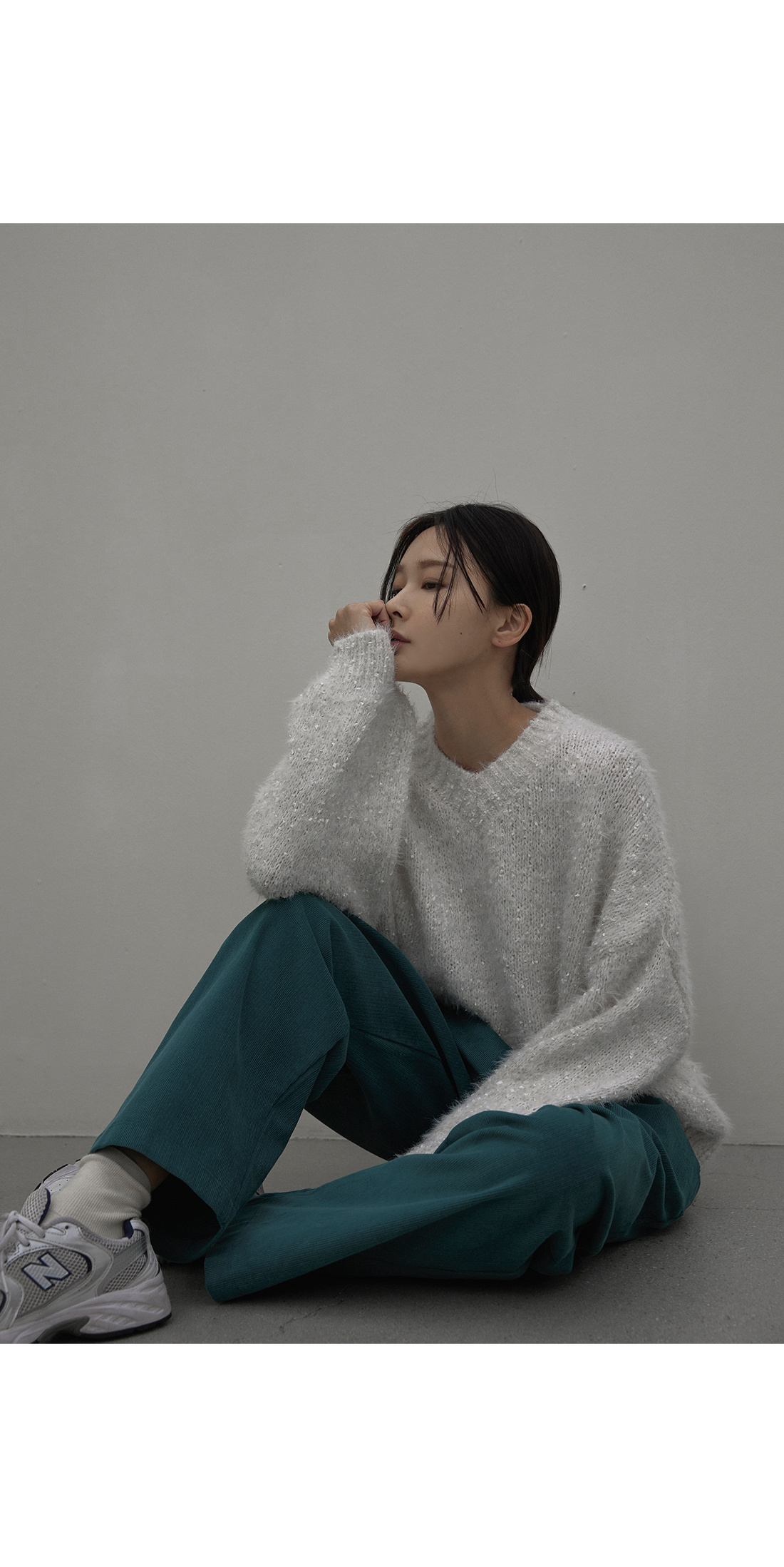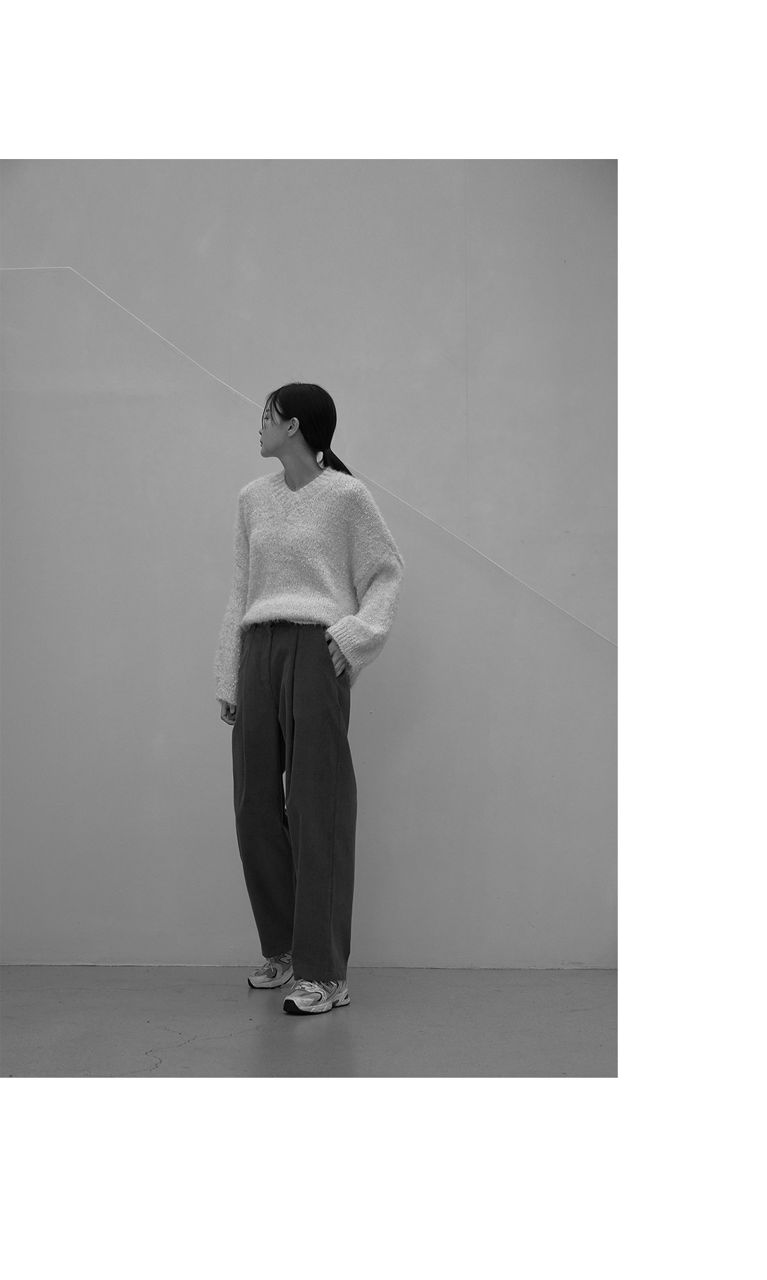 모델 키 기준 발목라인에서 깔끔하게 떨어지는 핏으로