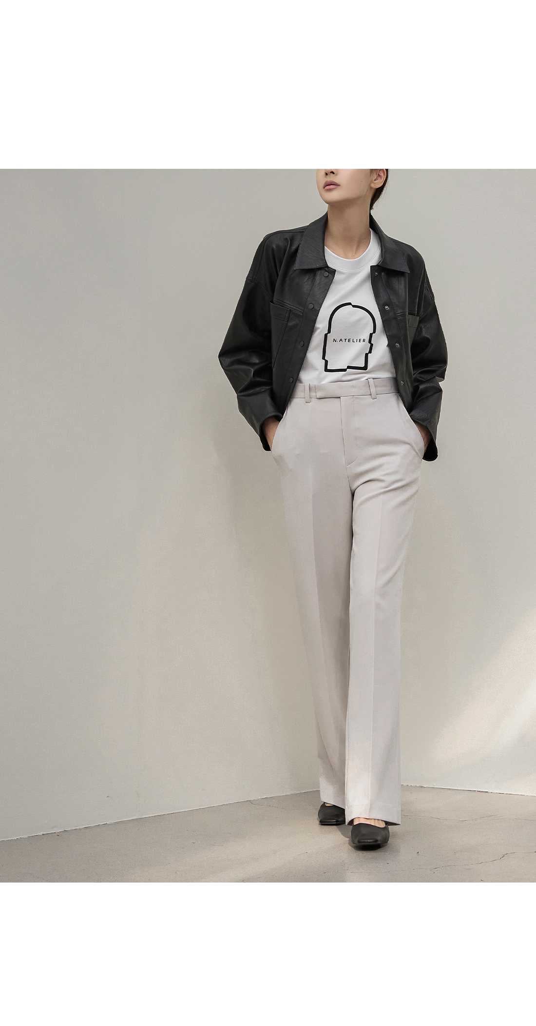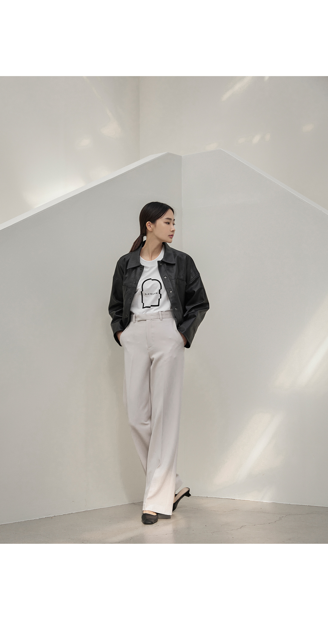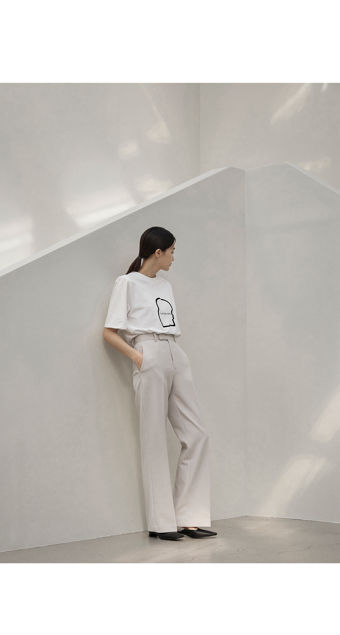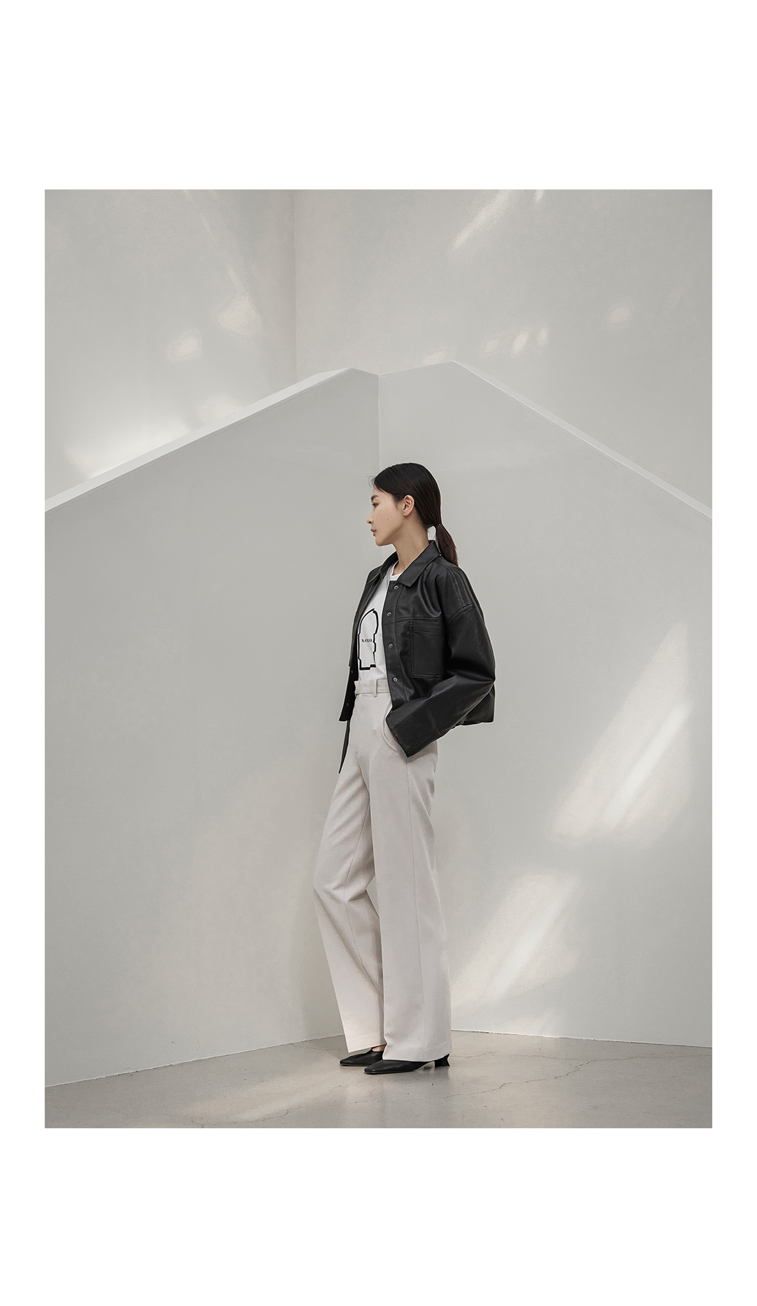 슬림한 스트레이트핏 실루엣이 심플하면서도