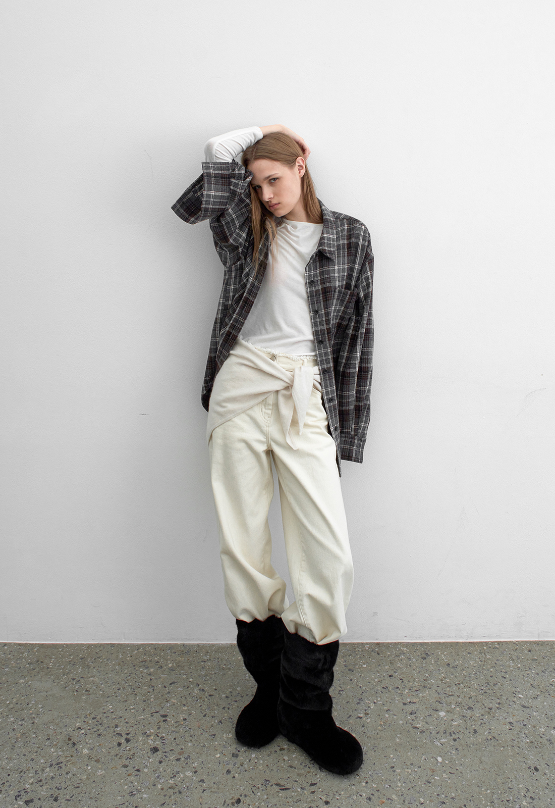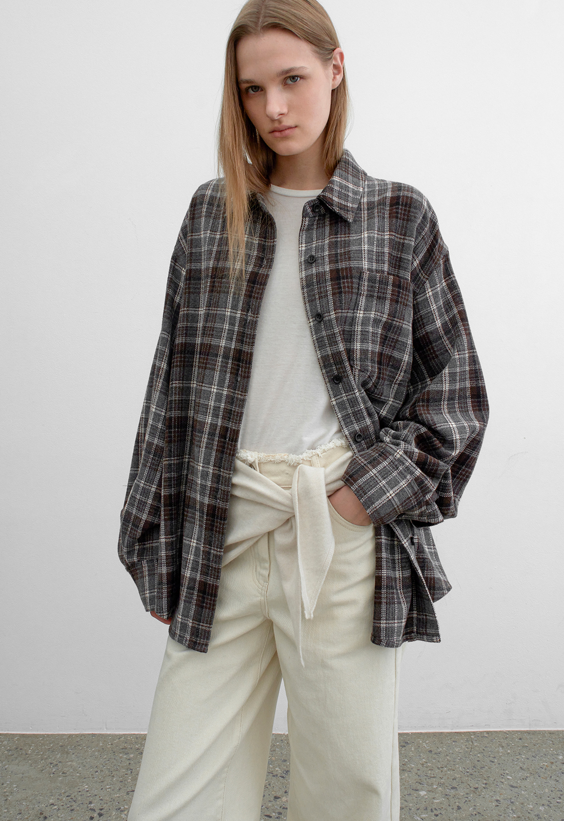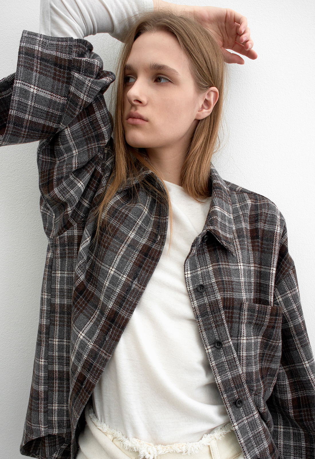 울 블렌디드 오버사이즈 체크 셔츠입니다.