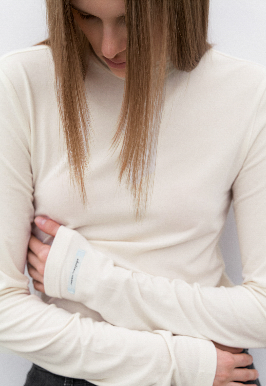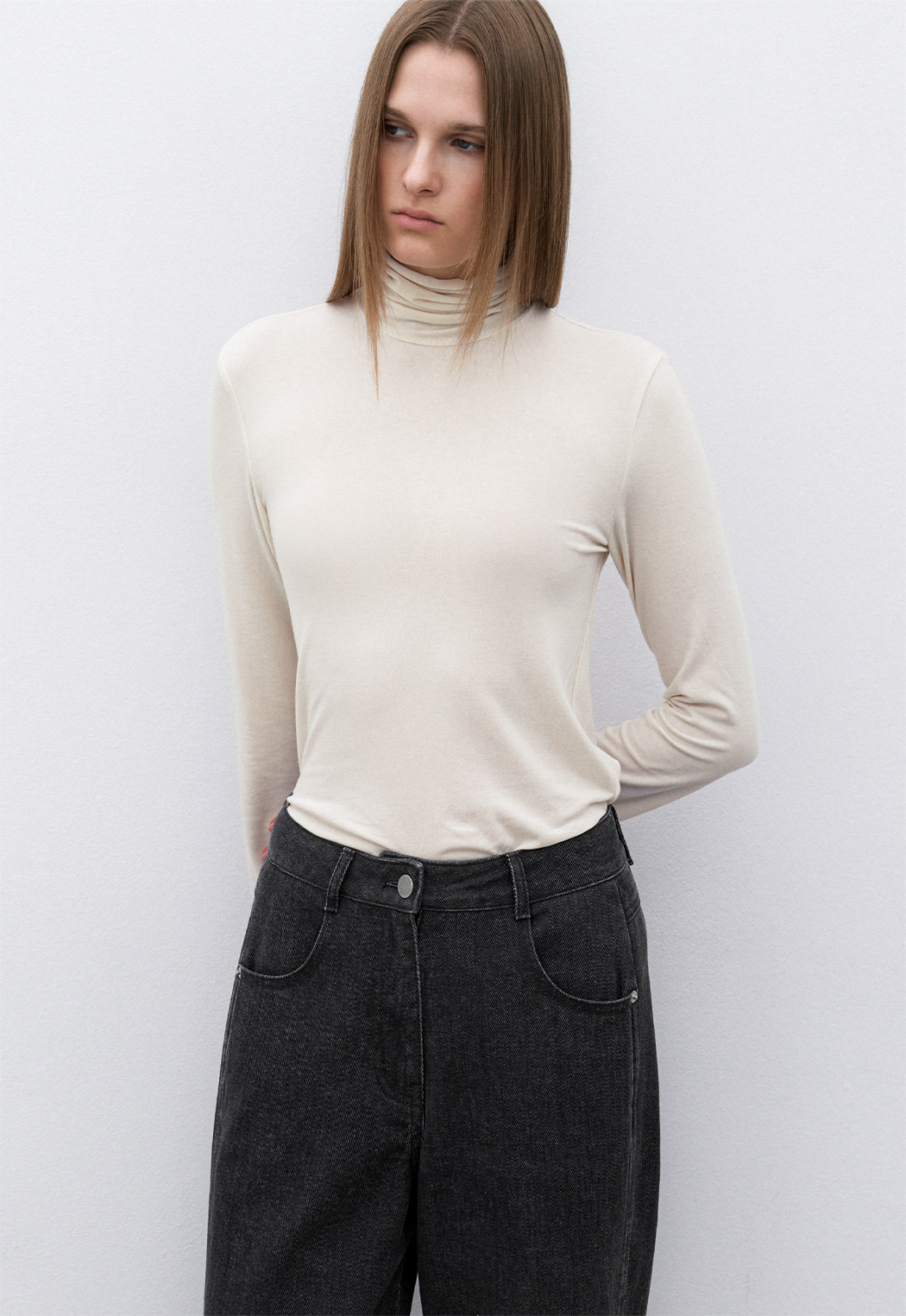 깔끔하게 이너로 착용하기 좋은 목폴라 티셔츠입니다.