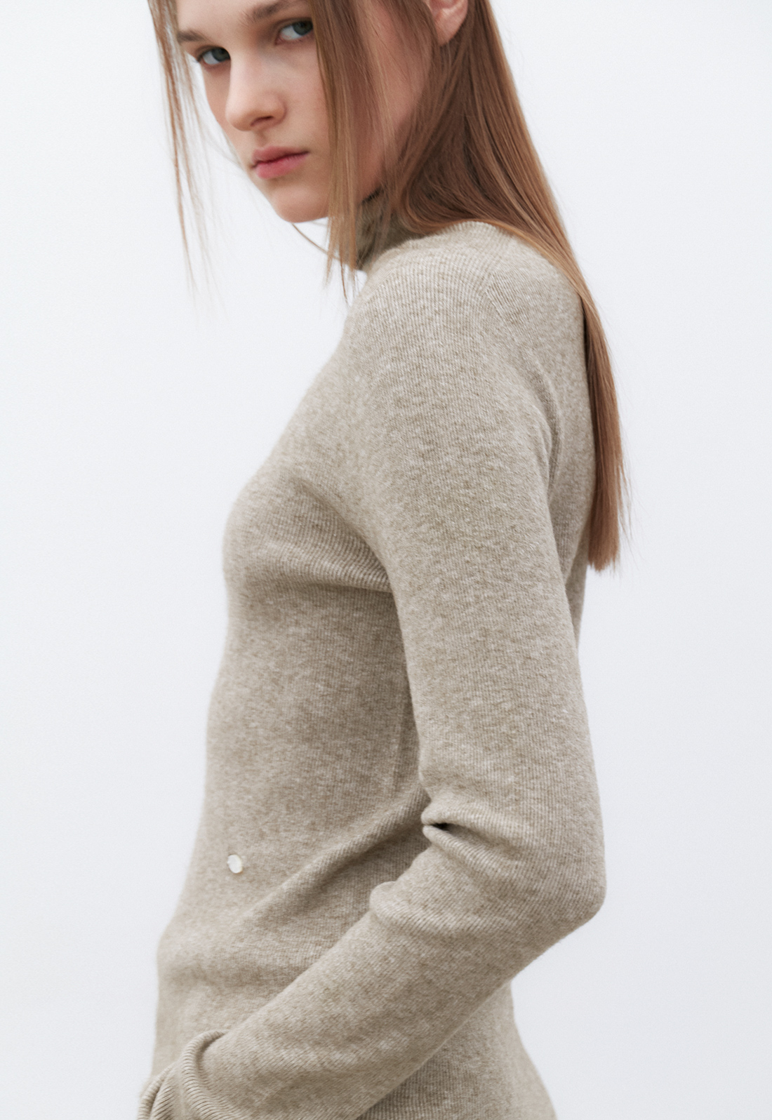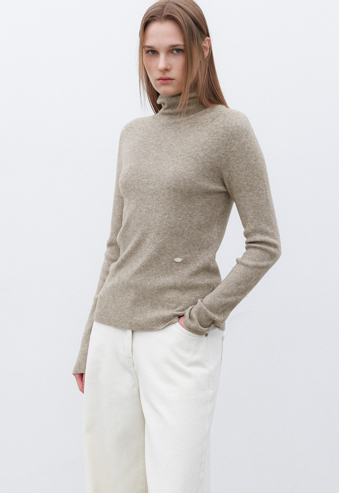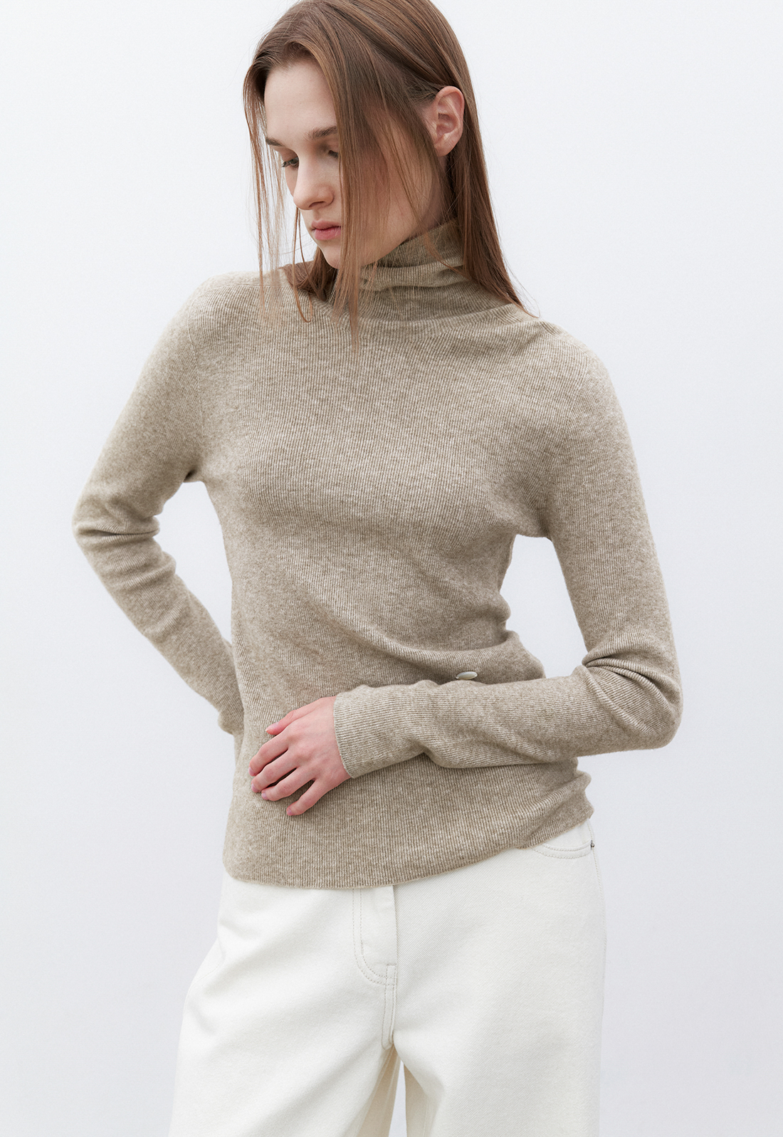 봉제선이 없는 홀가먼트 방법으로 제작된 하이넥 슬림 골지 니트풀오버 입니다.