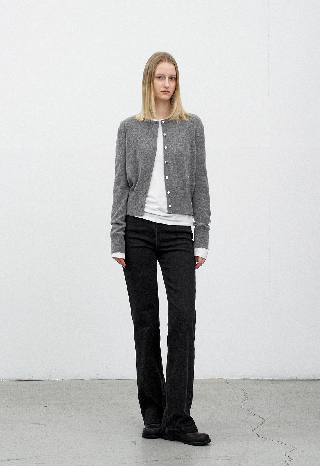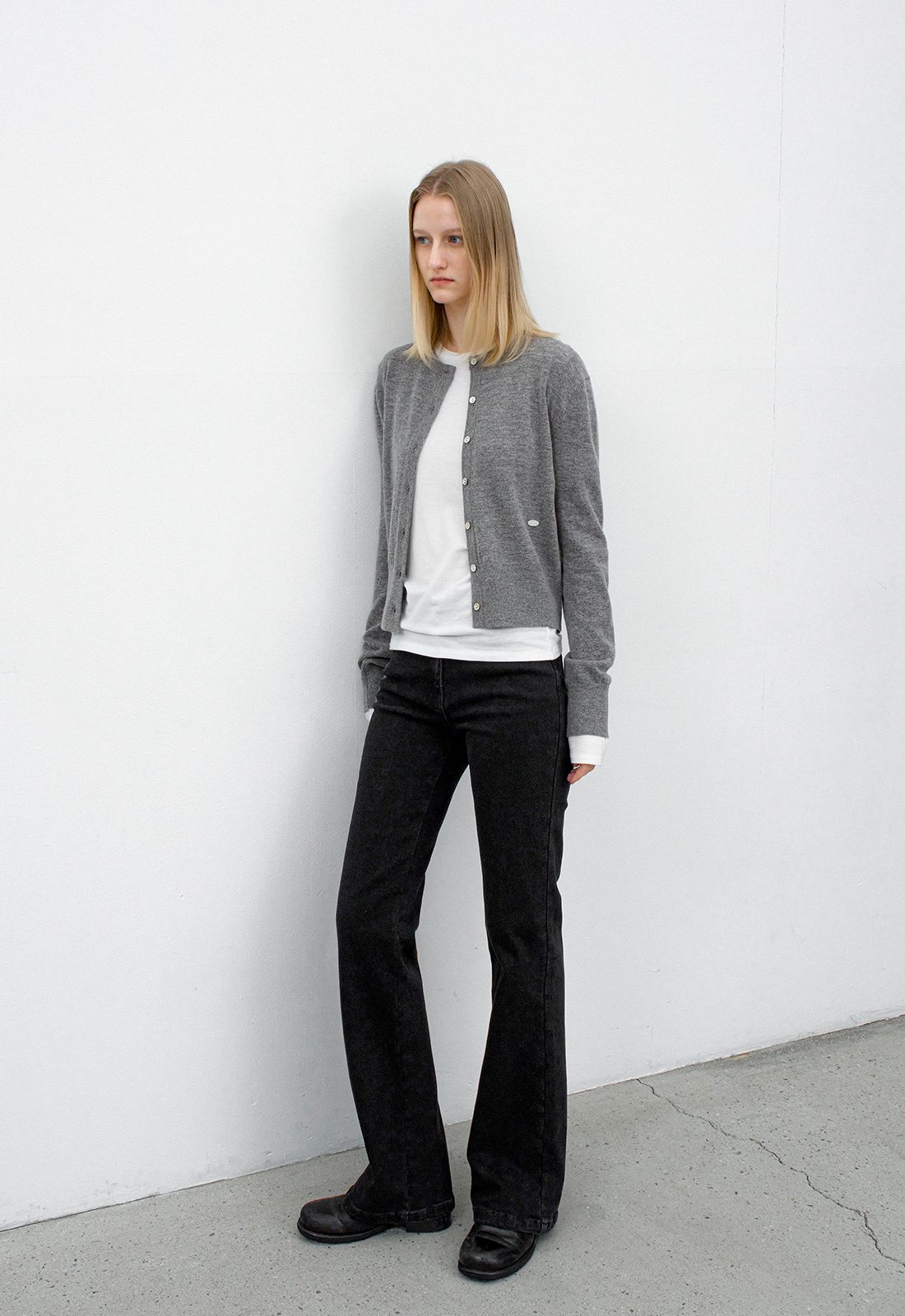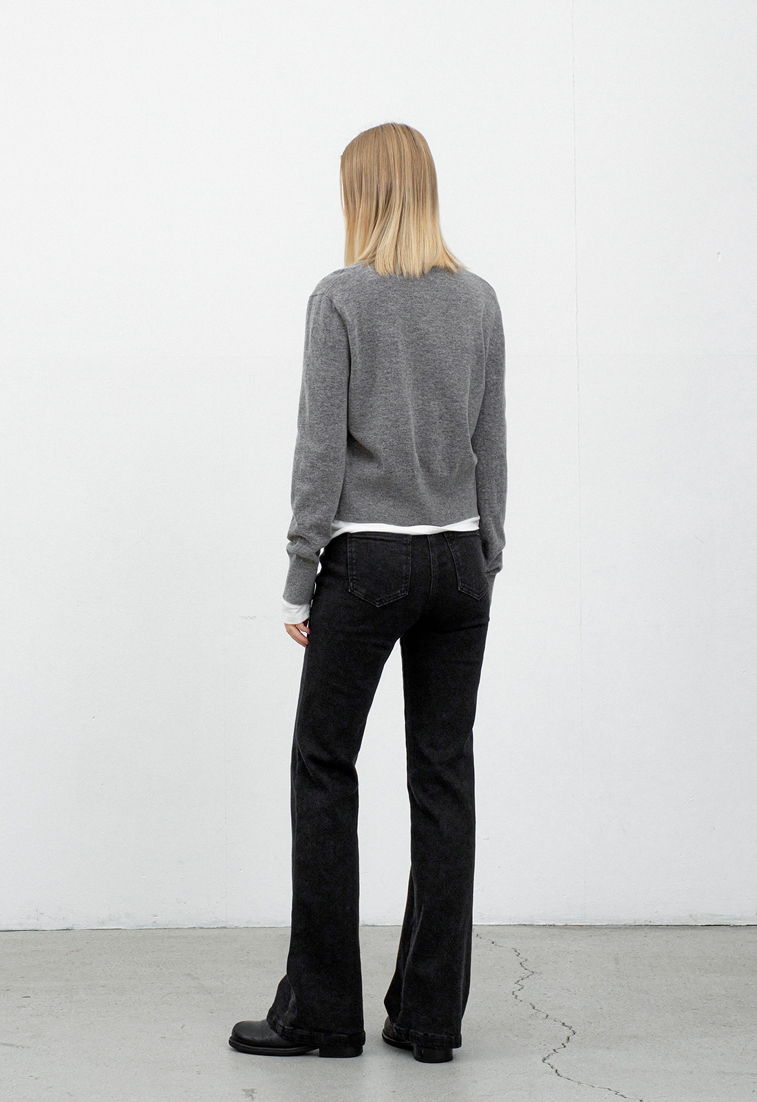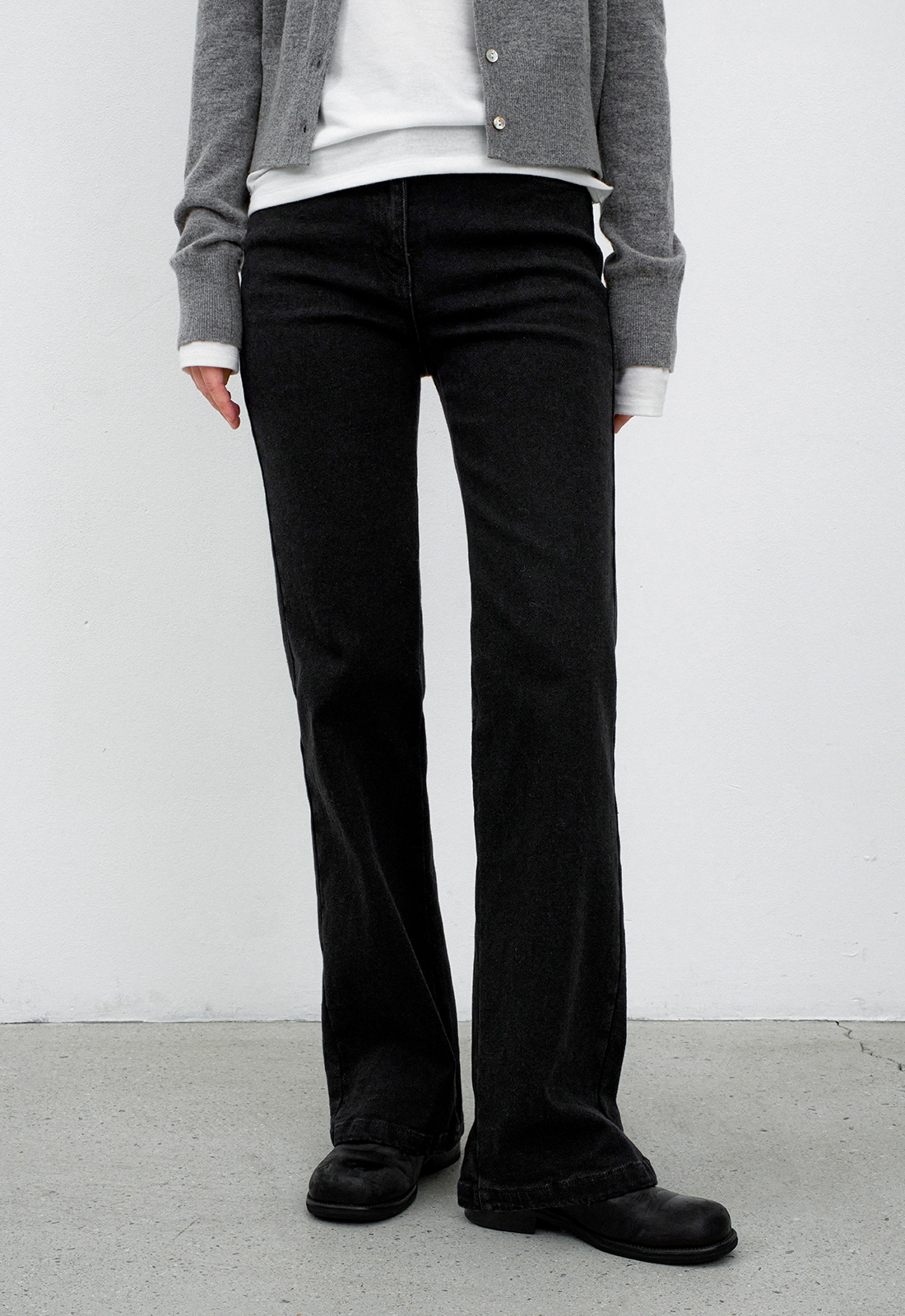 롱한 기장감의 슬림핏 부츠컷 팬츠 입니다.