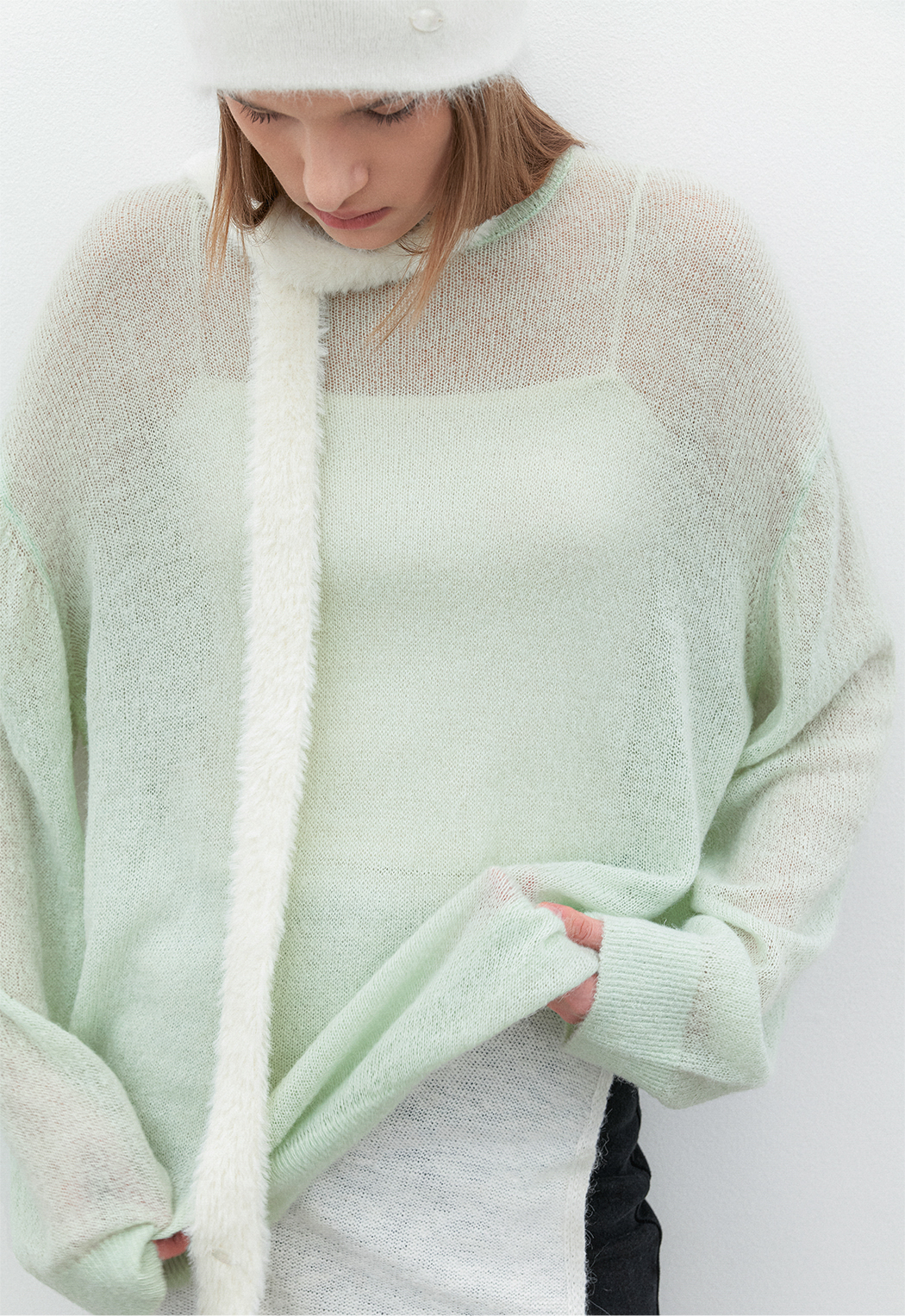소프트한 헤어리 소재로 슬림한 두께의 타이 형태 머플러입니다.