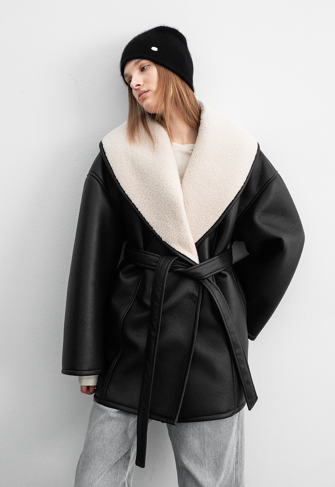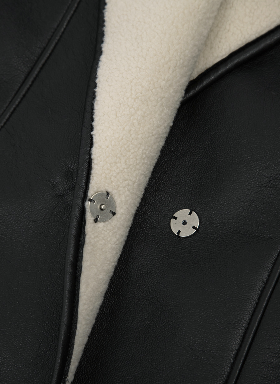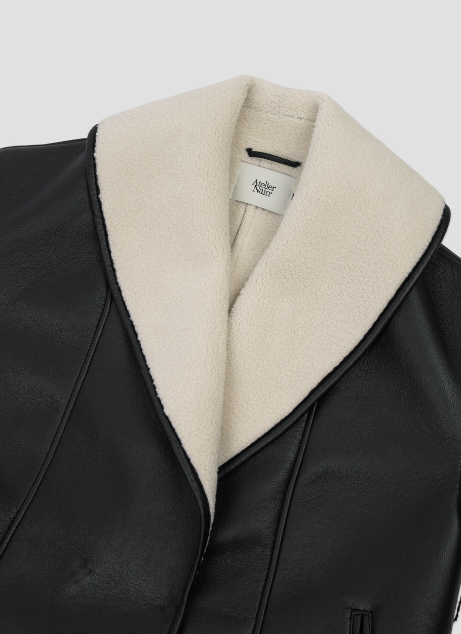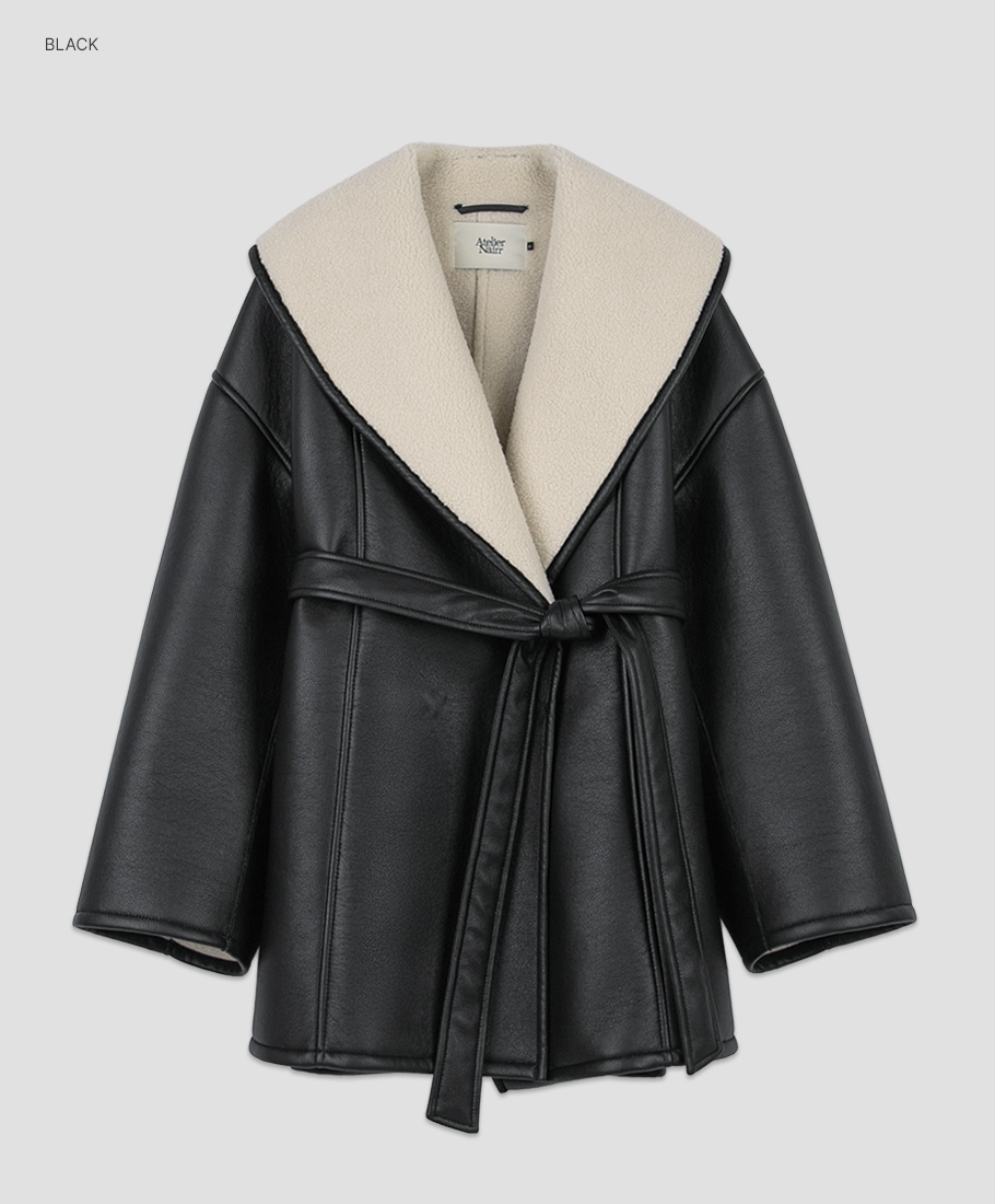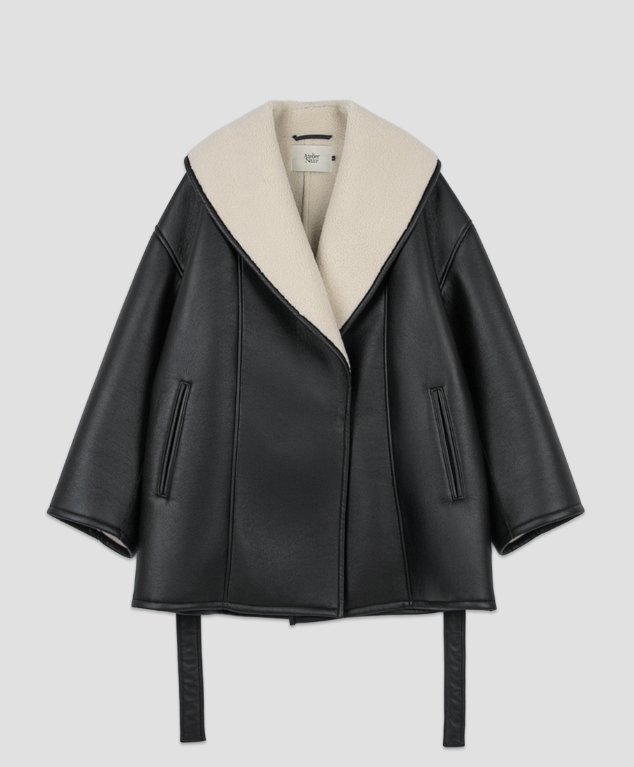 오버사이즈의 반코트 기장감을 가지고있는 숄카라 무스탕입니다.