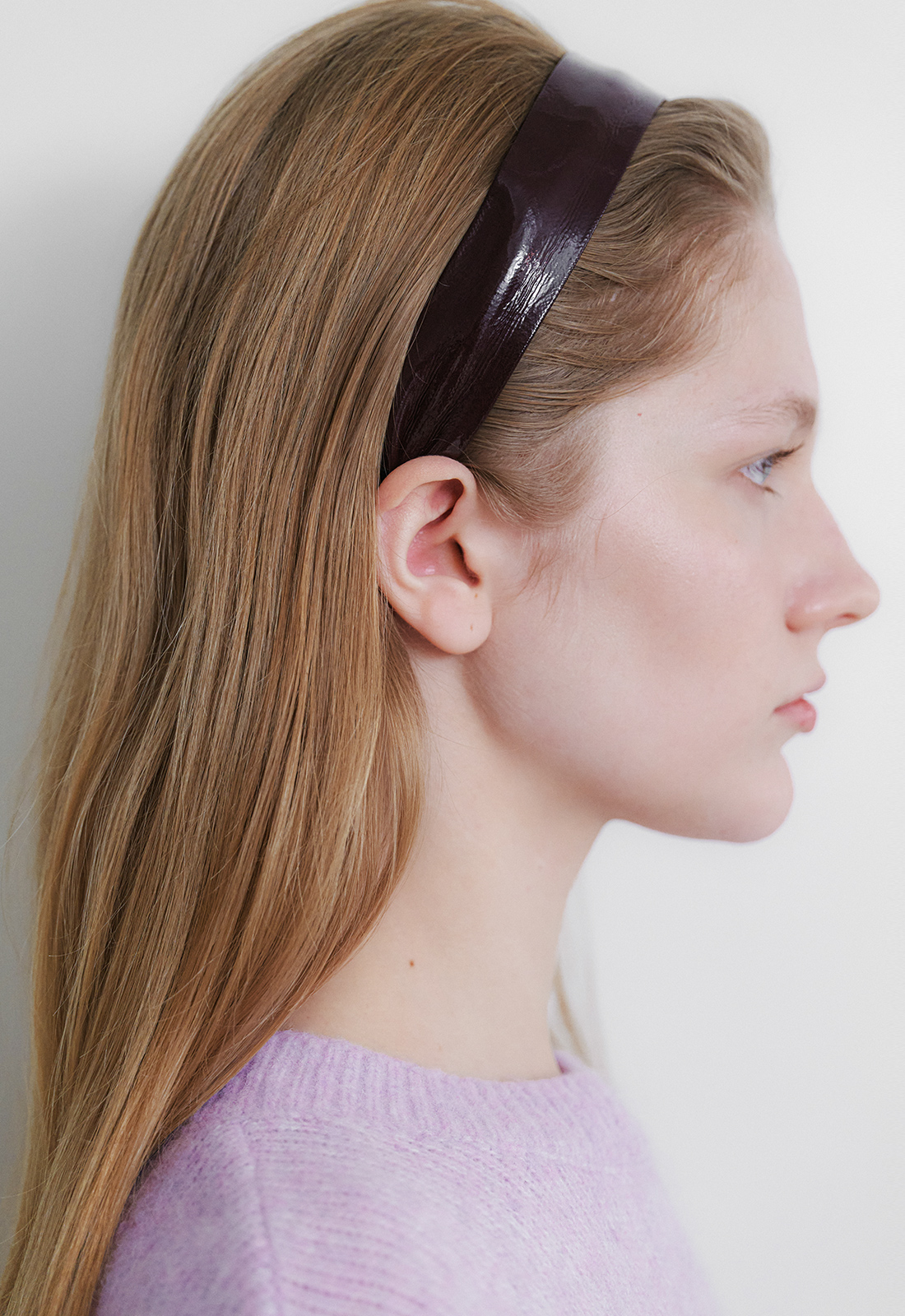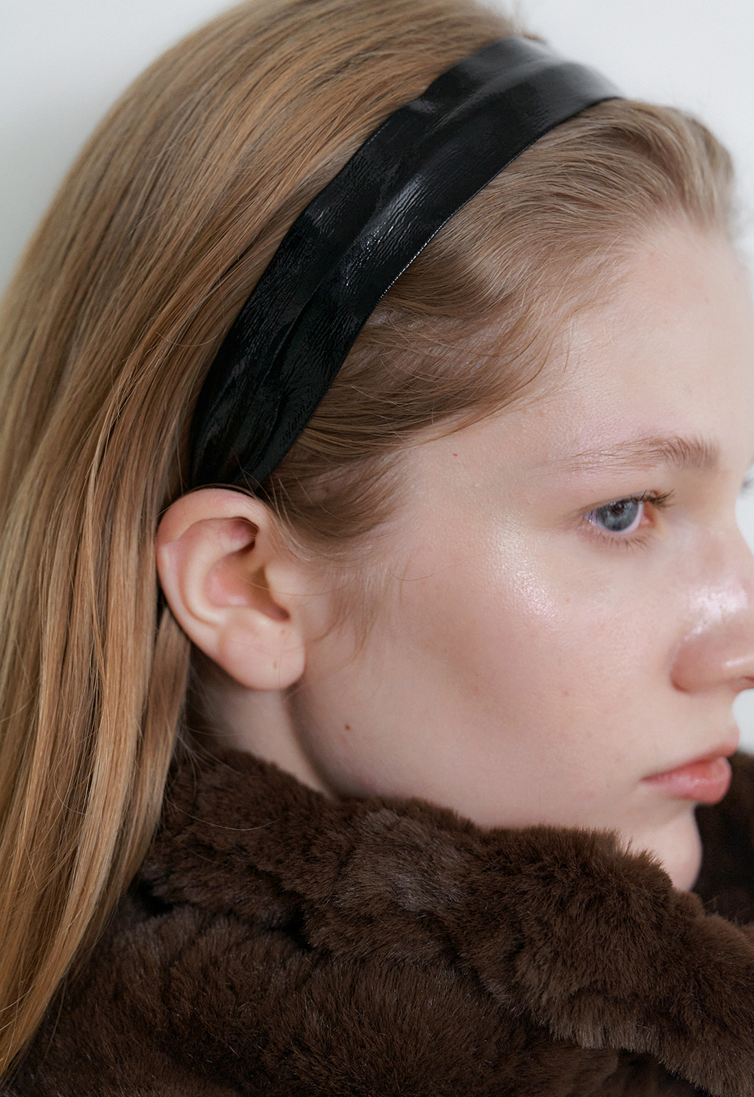 글로시한 소재가 멋스러운 에나멜 헤어밴드입니다.