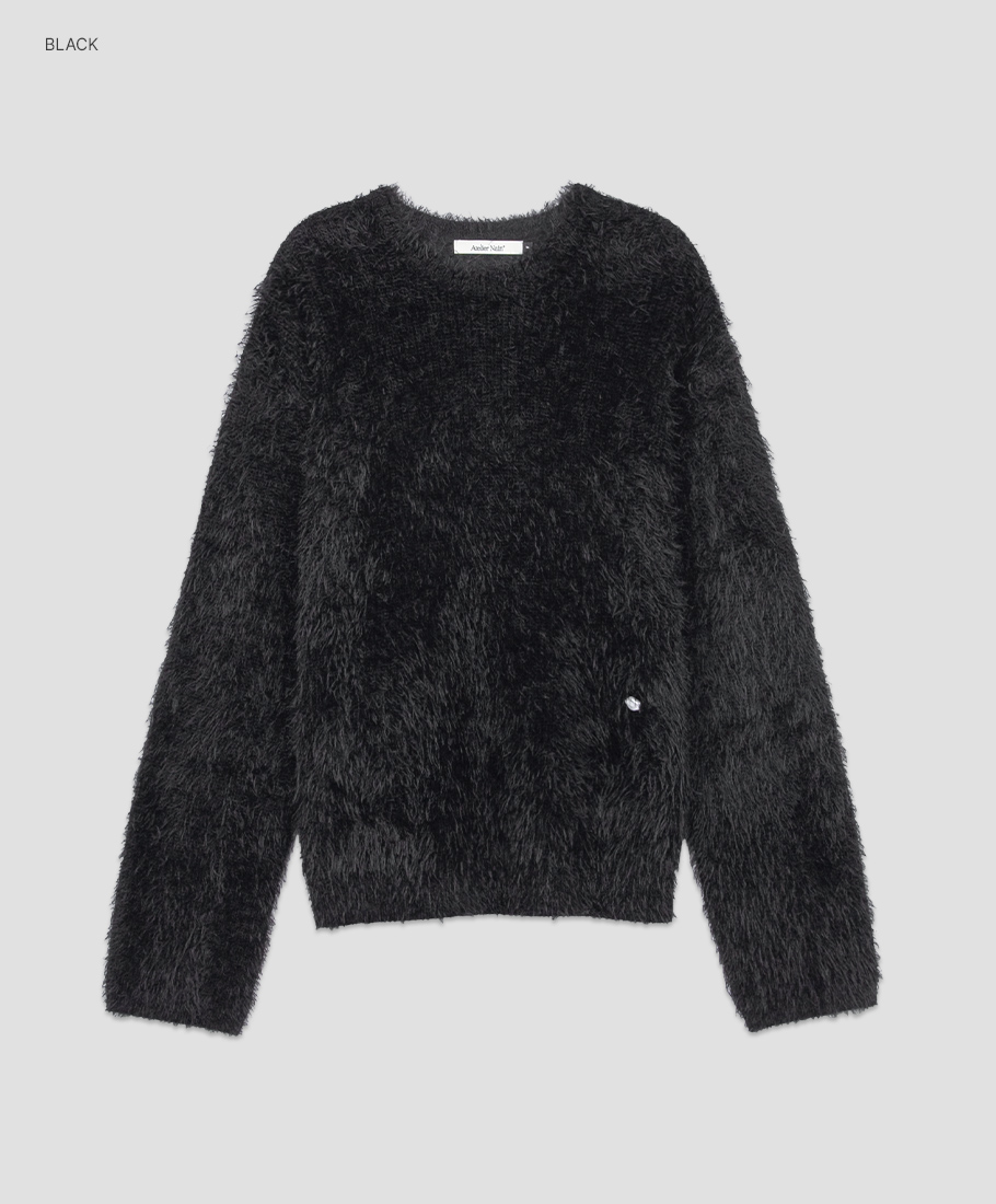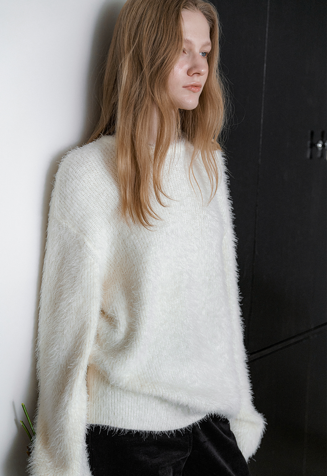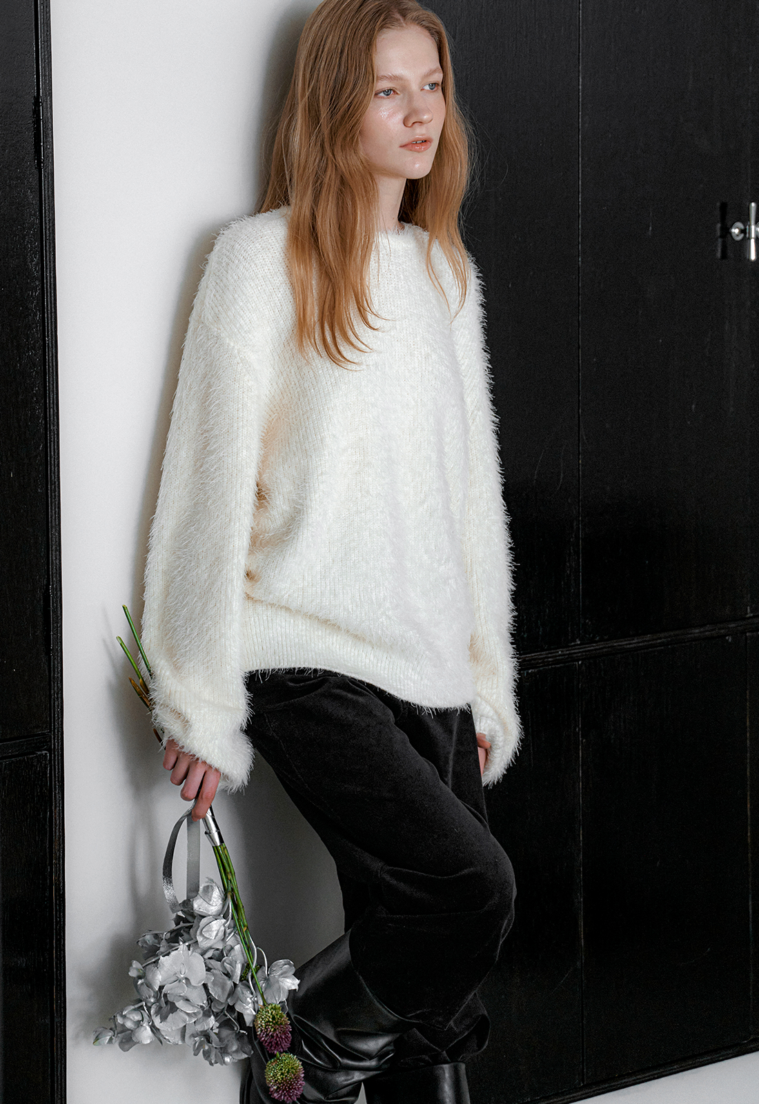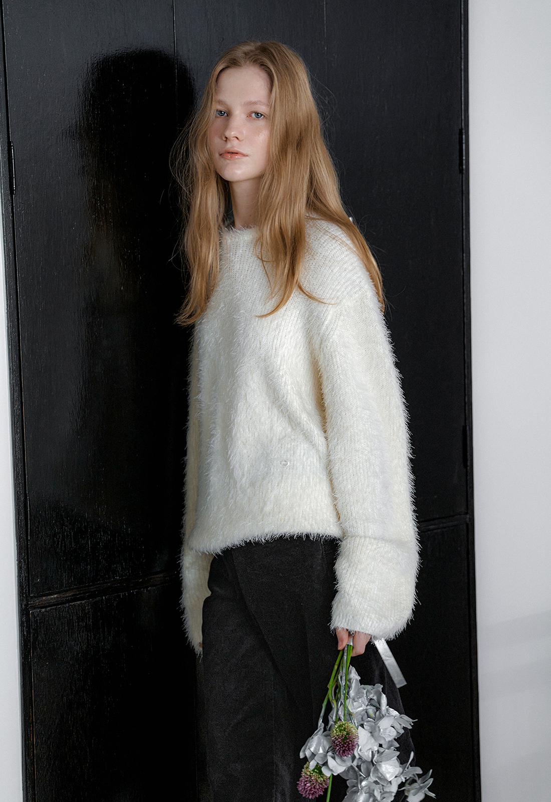 GLOSSY한 롱 헤어 원사로 제작된 니트 풀오버 입니다.