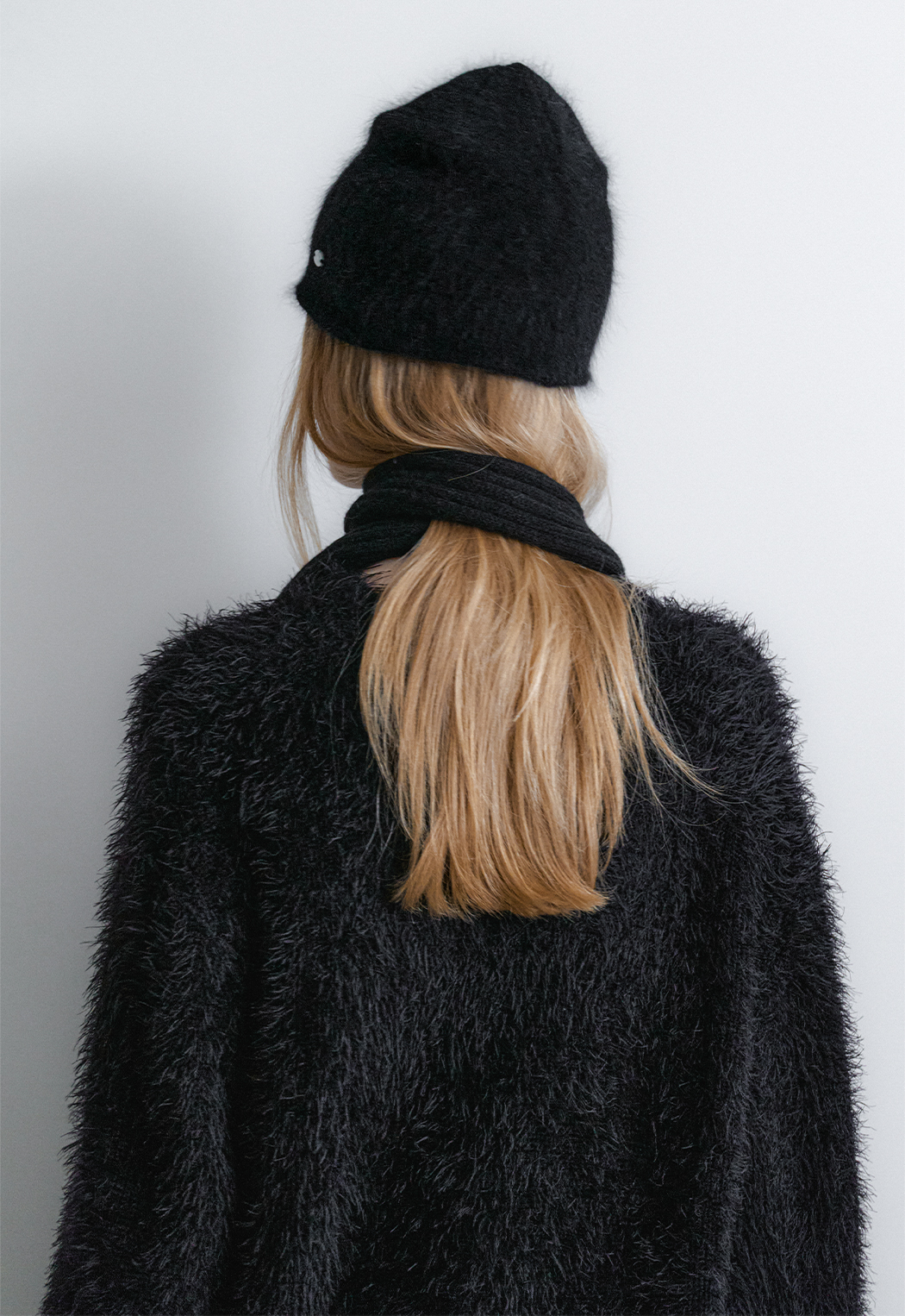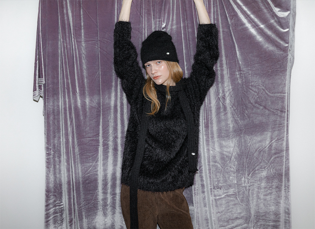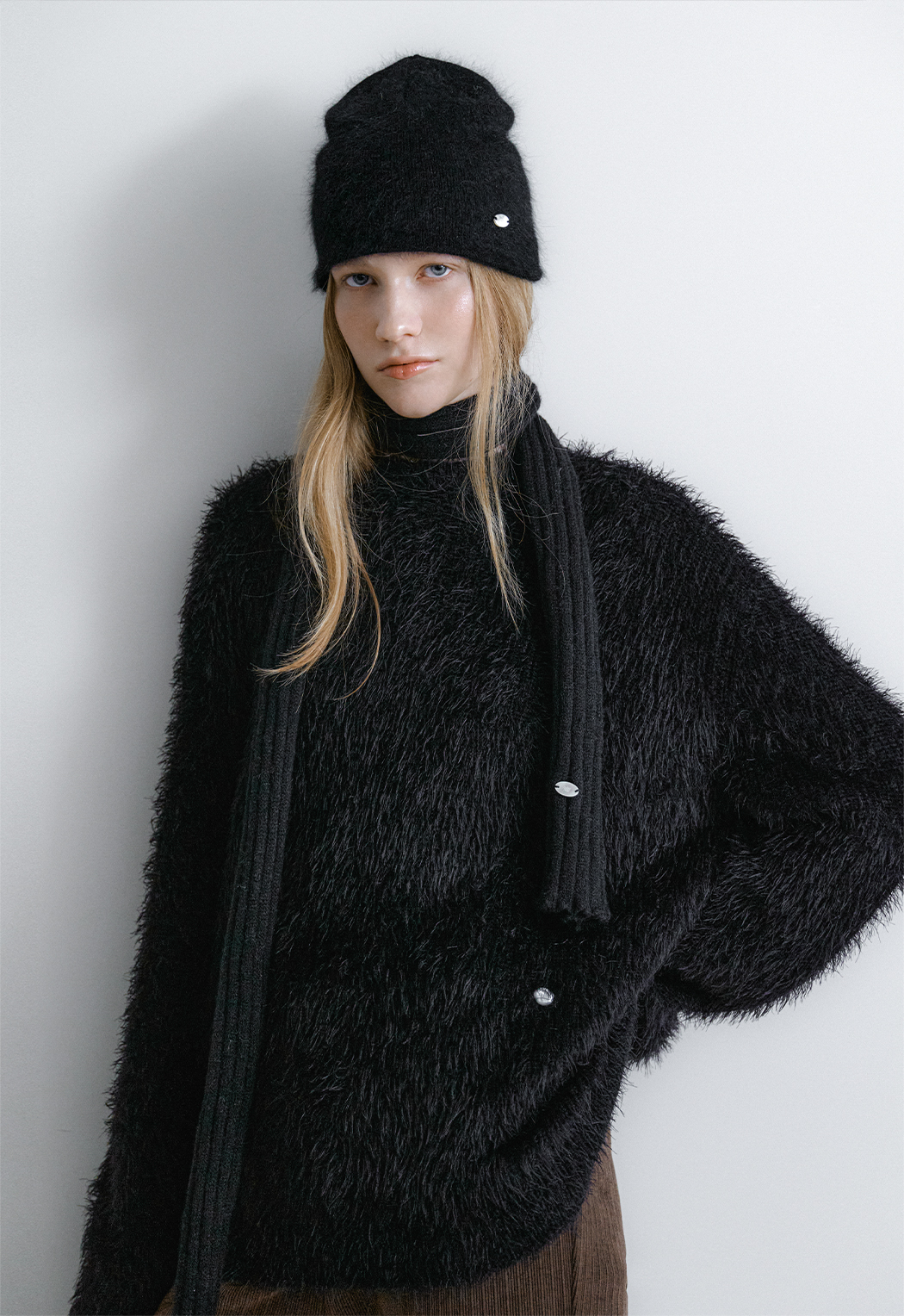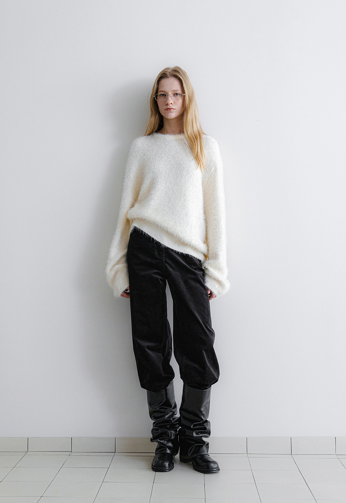 GLOSSY한 롱 헤어 원사로 제작된 니트 풀오버 입니다.