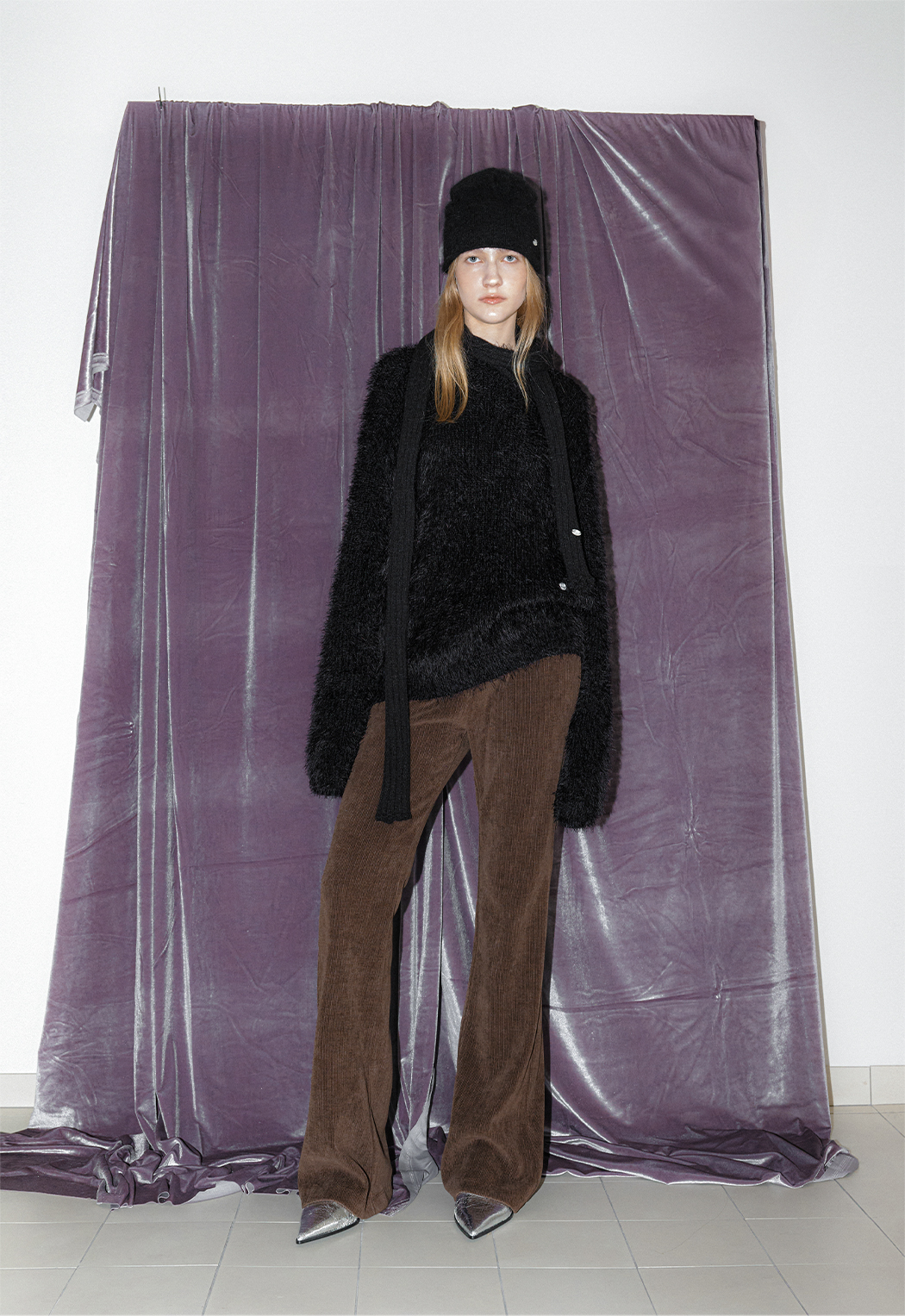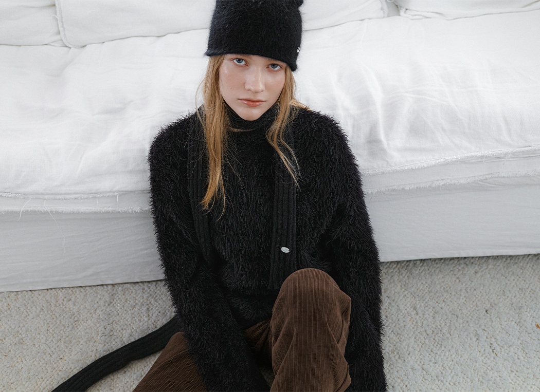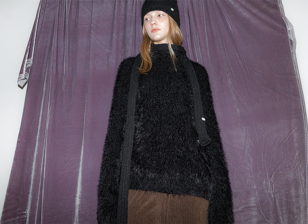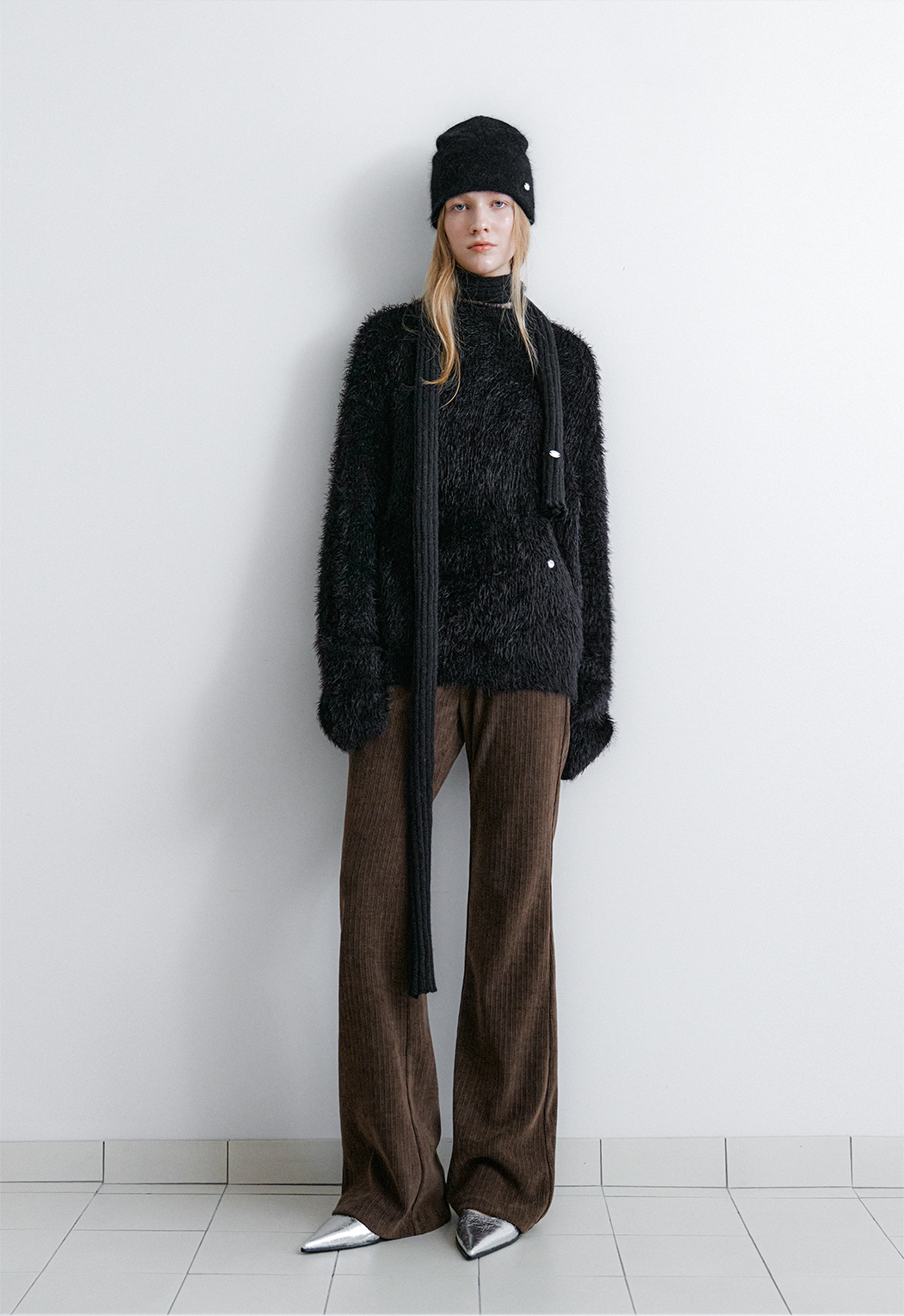GLOSSY한 롱 헤어 원사로 제작된 니트 풀오버 입니다.