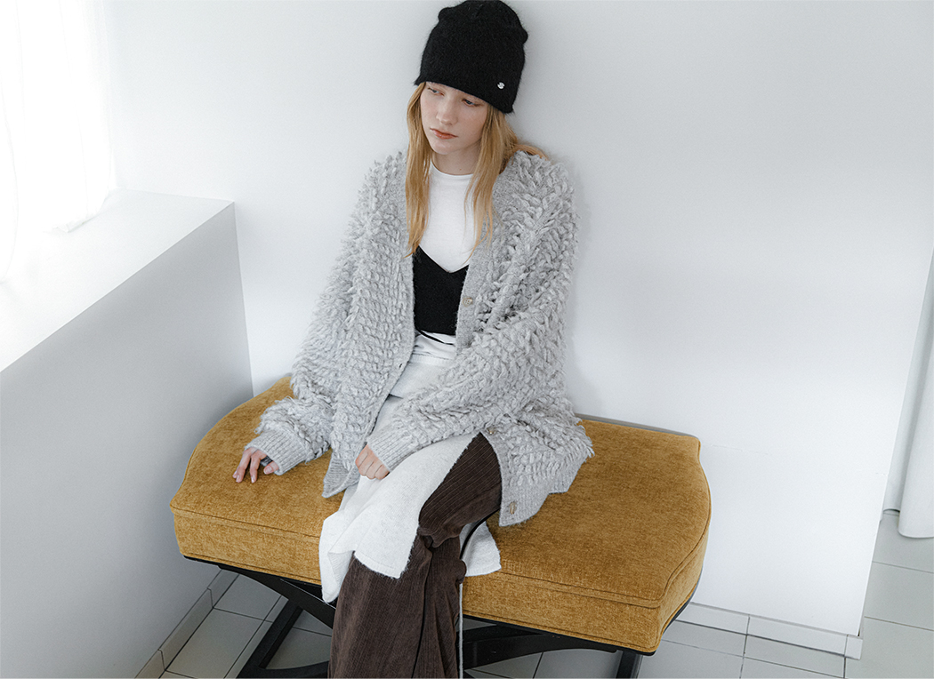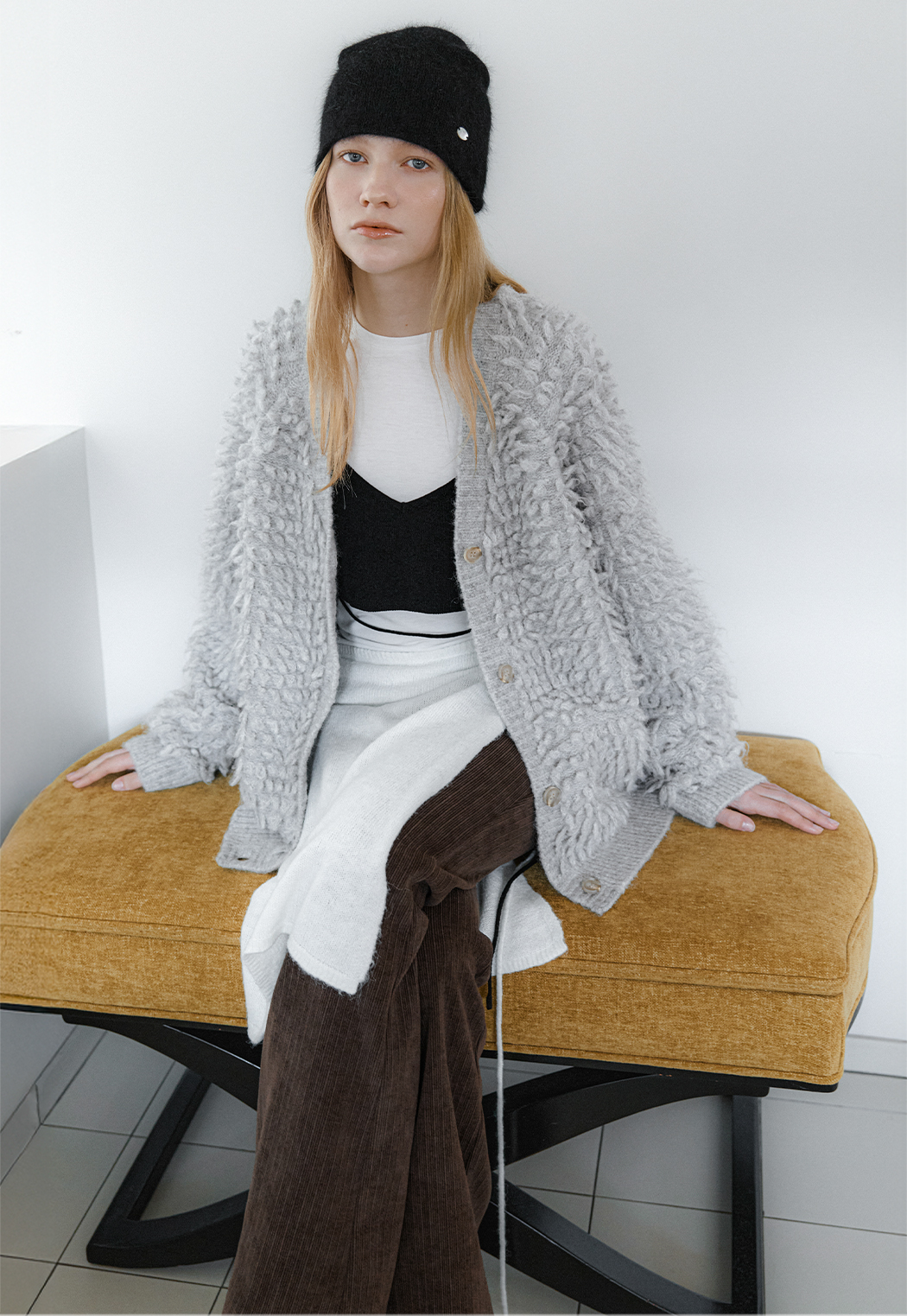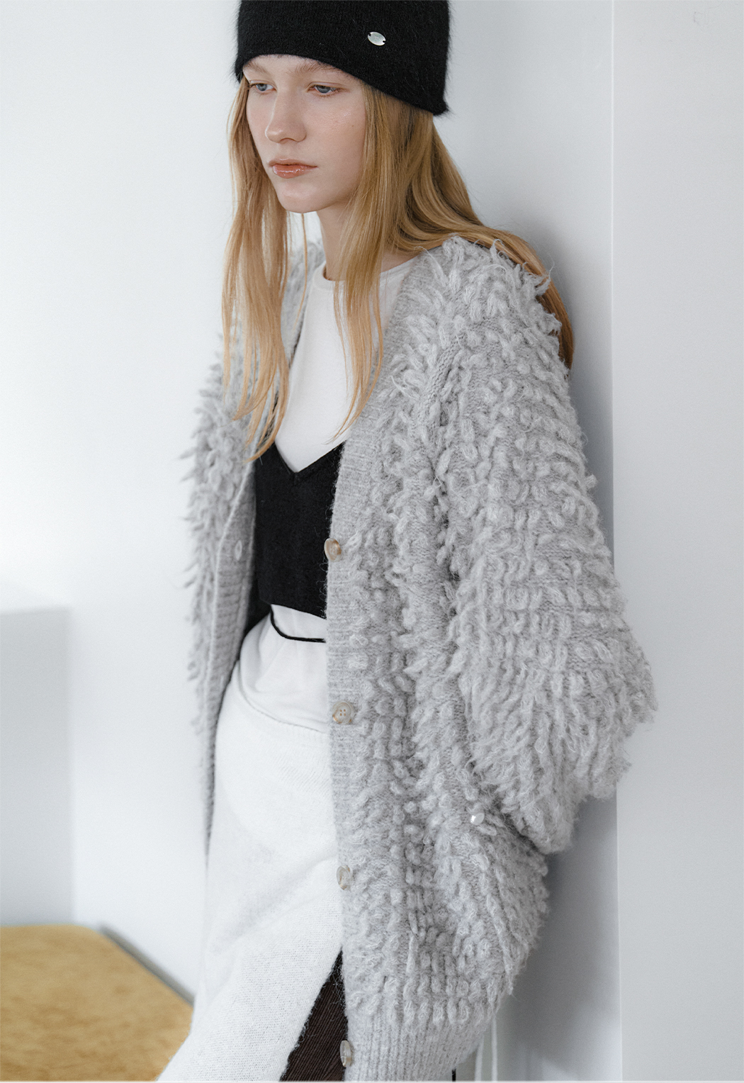 볼드한 루프조직으로 볼륨감 있게 제작된 니트 가디건 입니다.