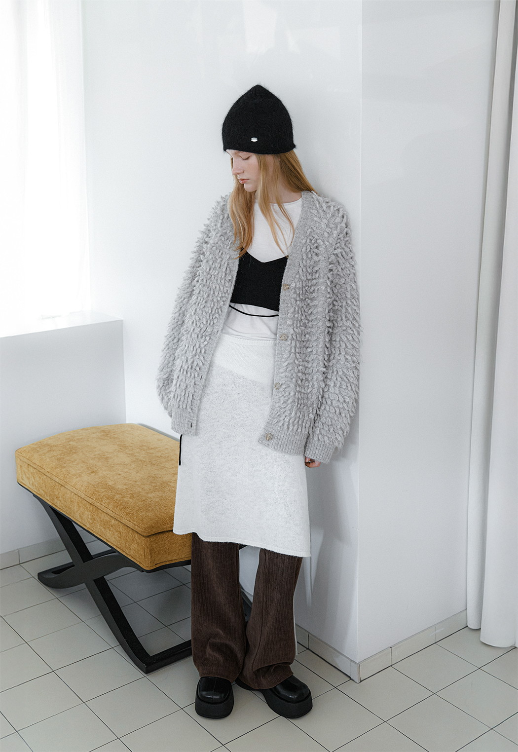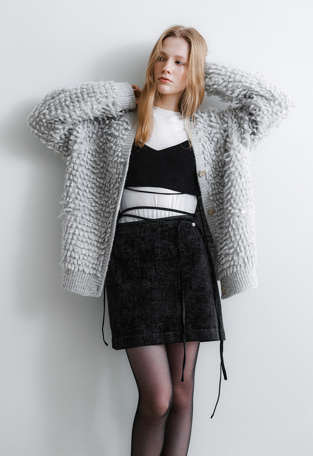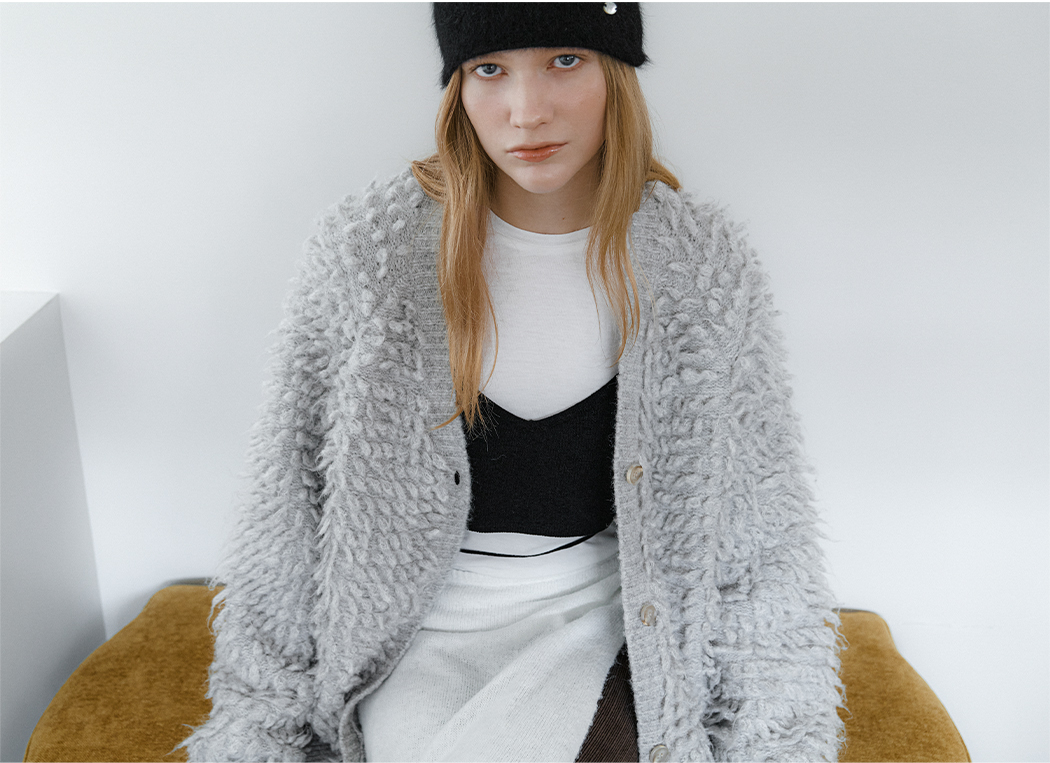 볼드한 루프조직으로 볼륨감 있게 제작된 니트 가디건 입니다.