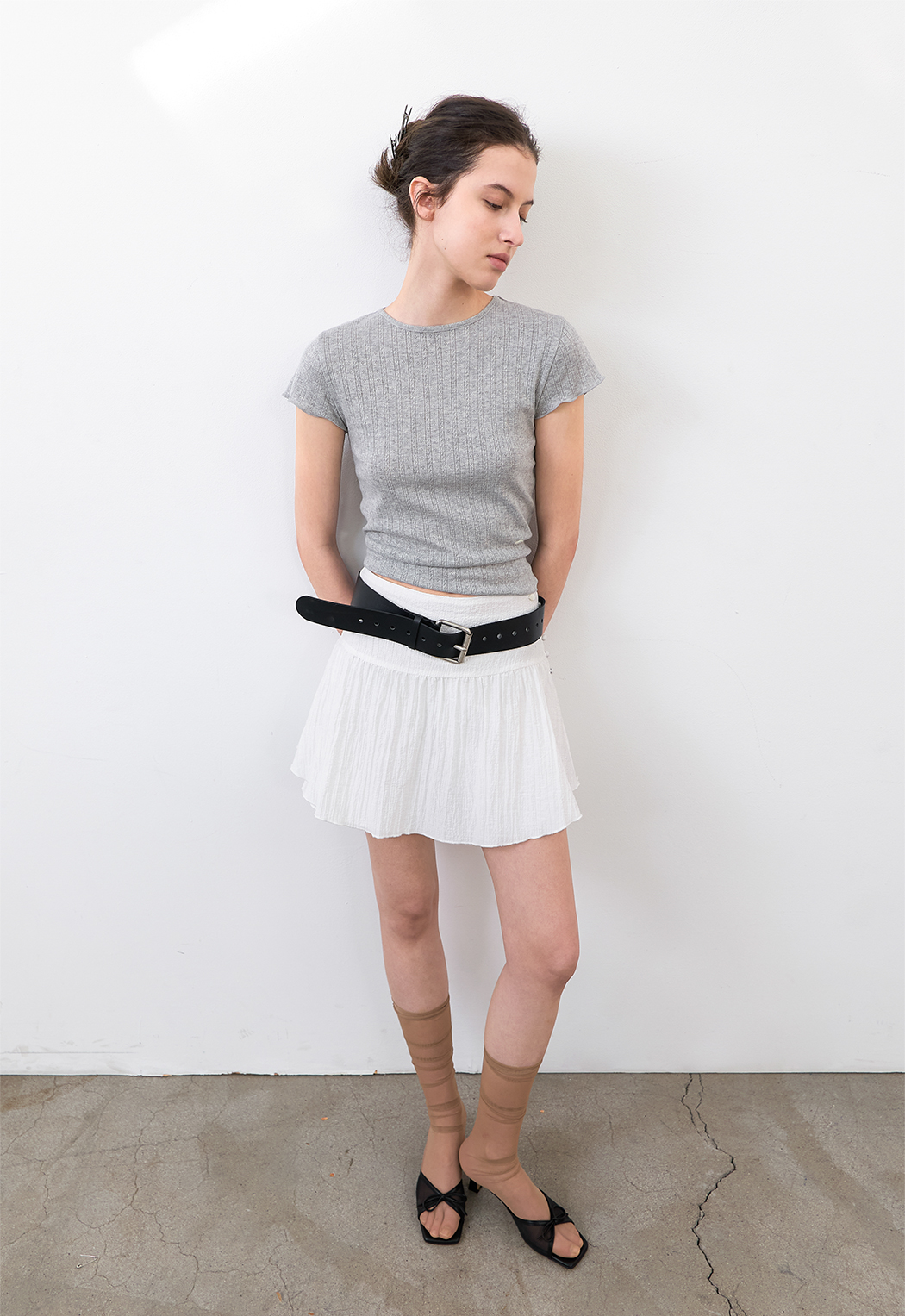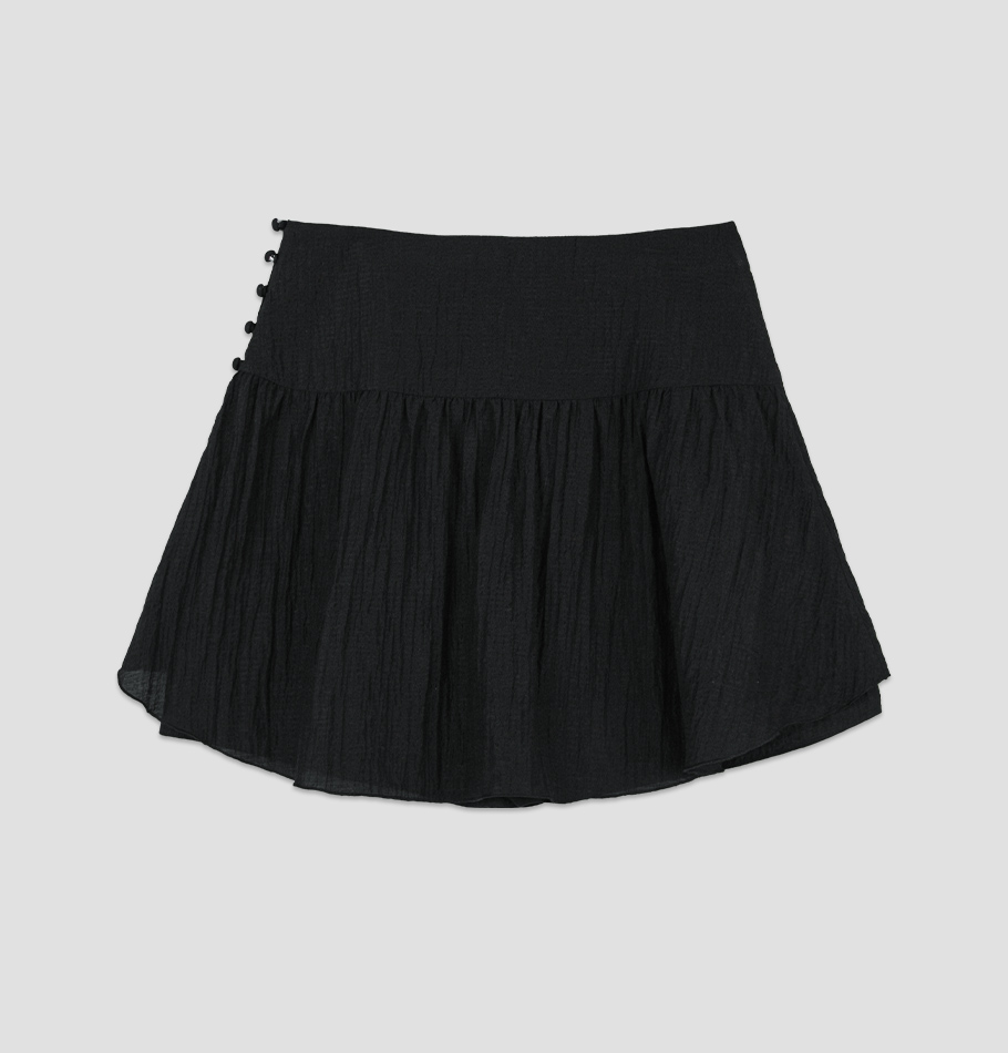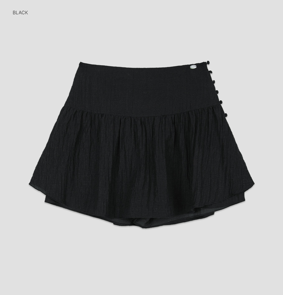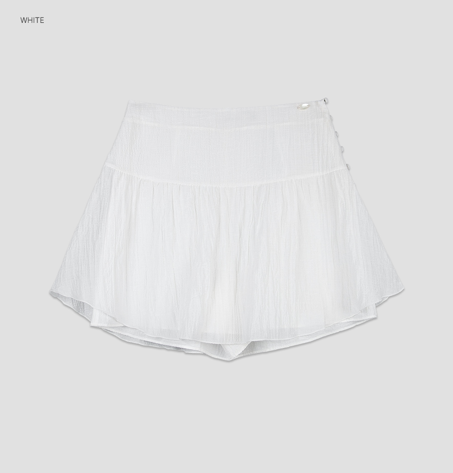 잔잔한 주름 결이 돋보이는 미니 스커트 팬츠입니다.