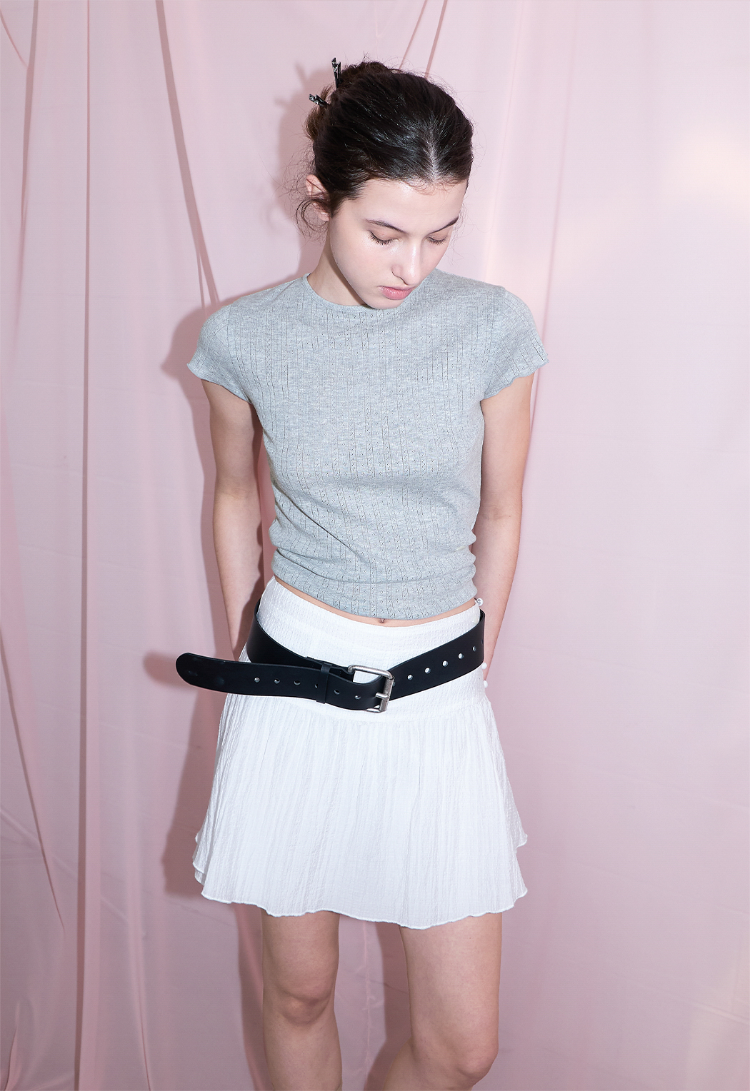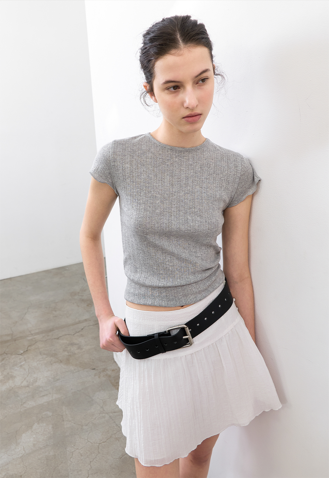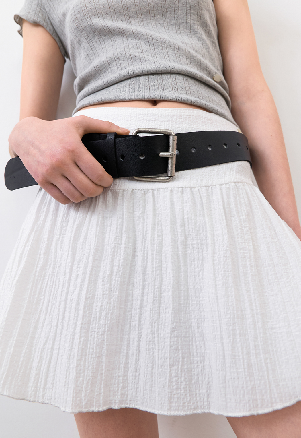 잔잔한 주름 결이 돋보이는 미니 스커트 팬츠입니다.