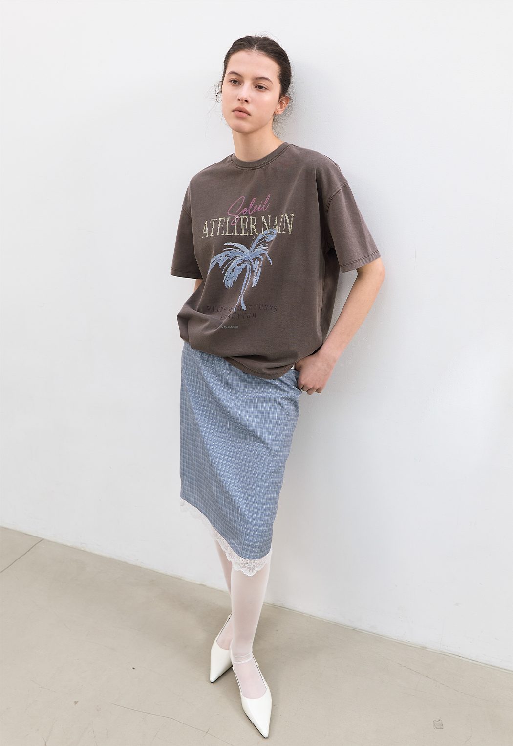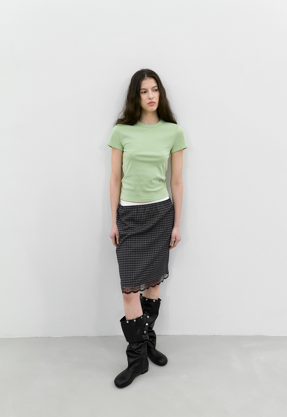 밑단 레이스 디테일이 센슈얼하면서 페미닌한 무드를 더합니다.