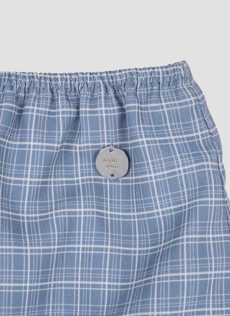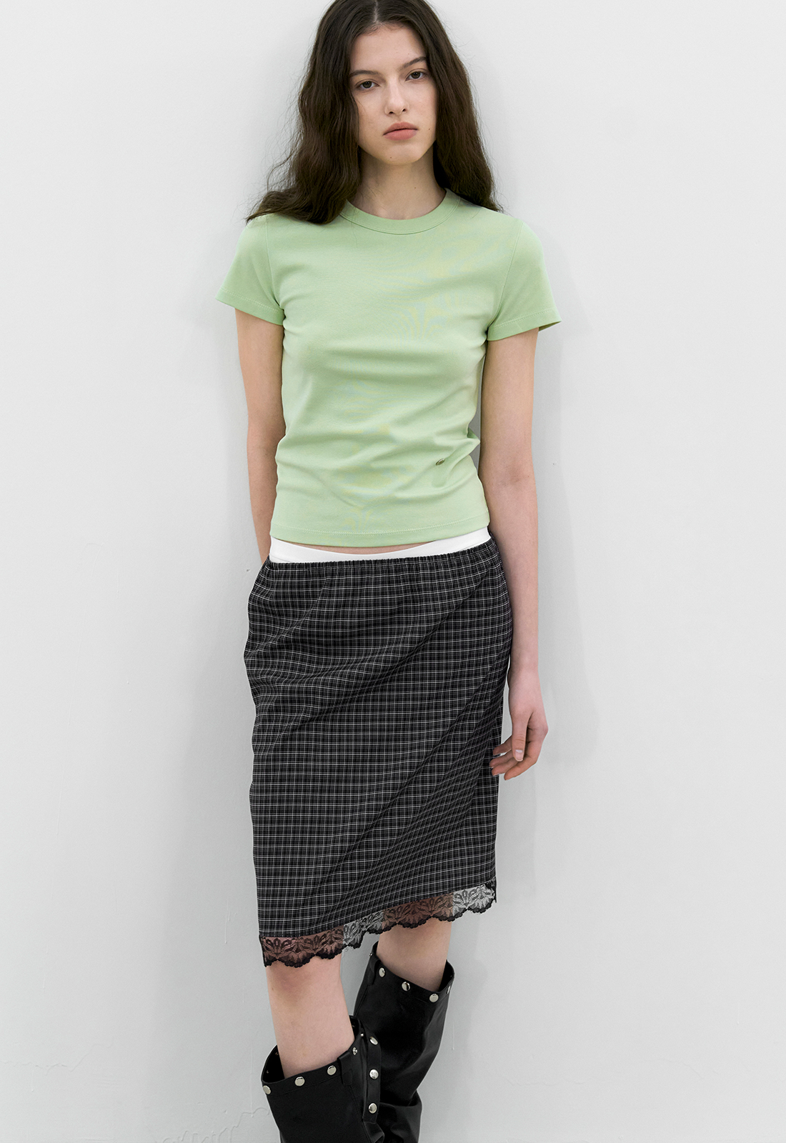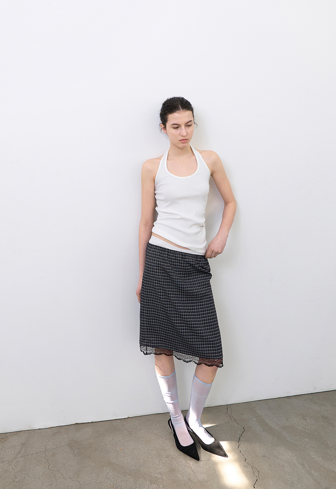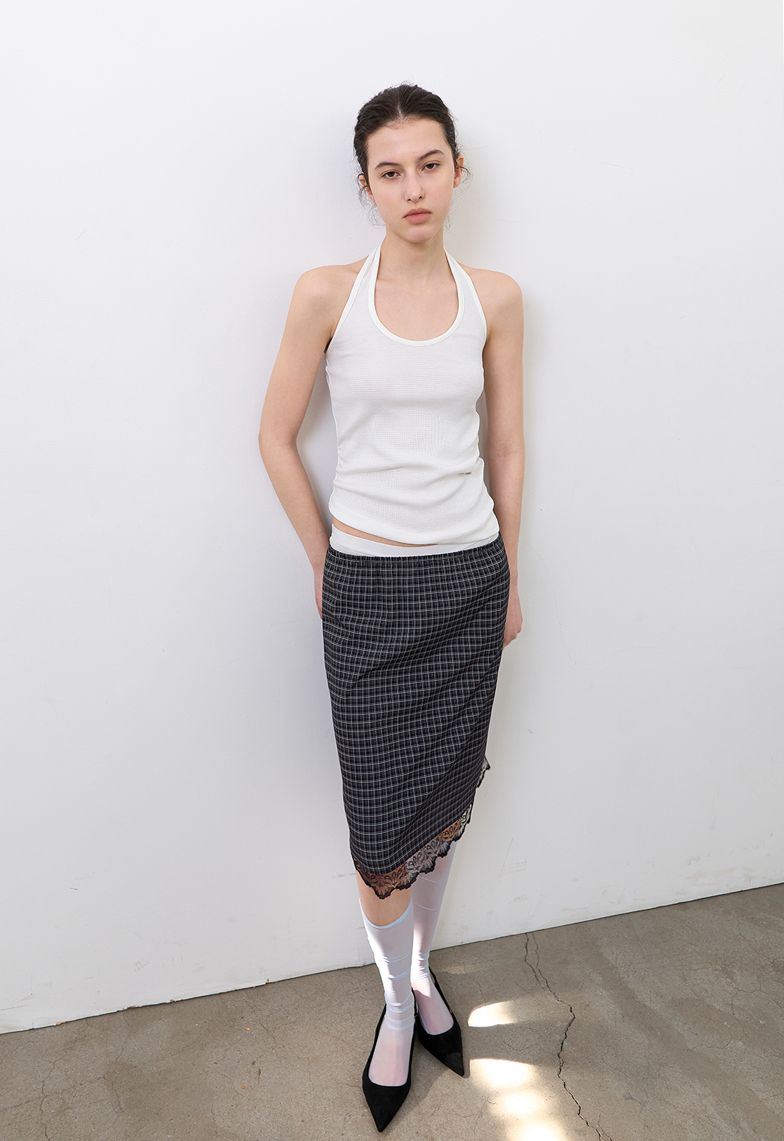 H라인으로 미니멀하게 떨어지는 체크 패턴 미디 스커트입니다.