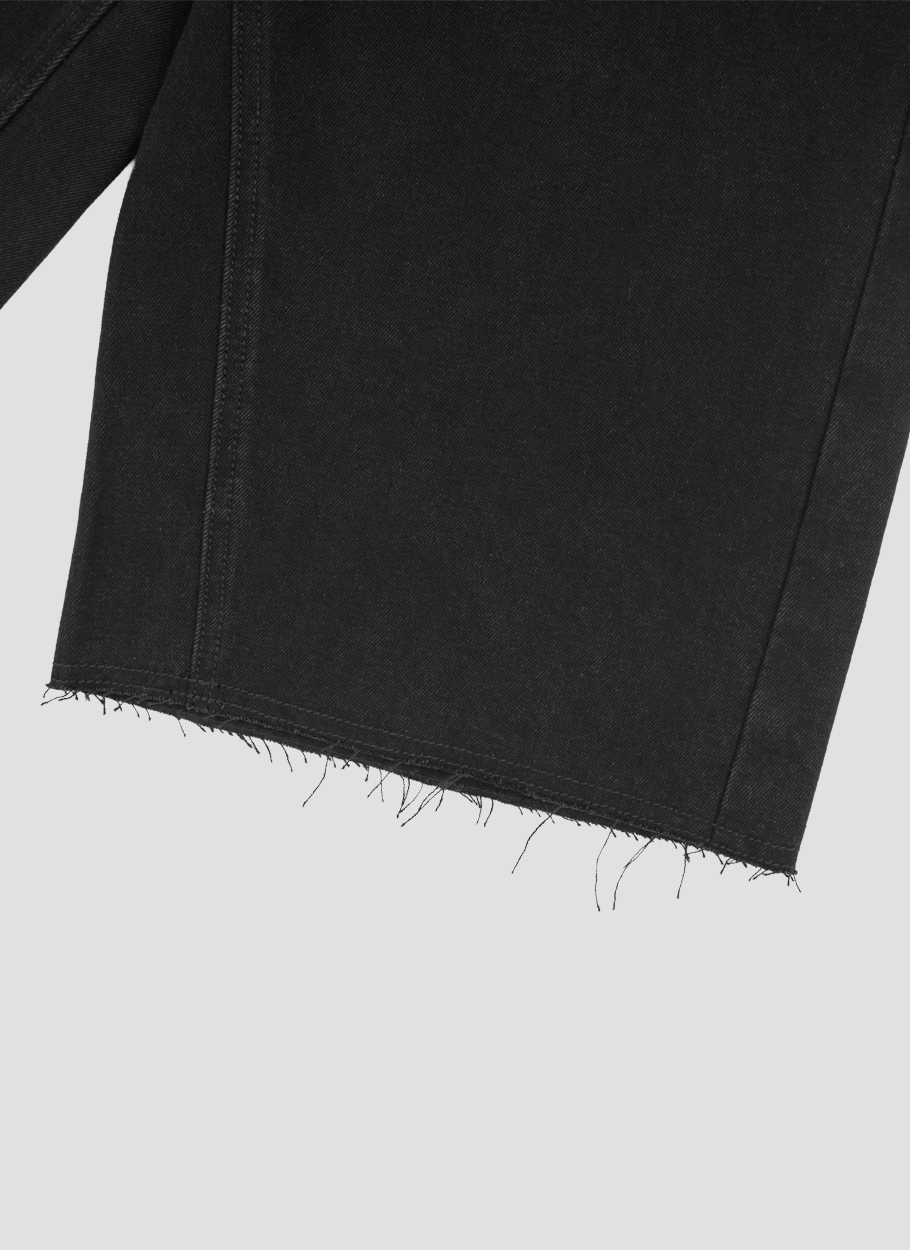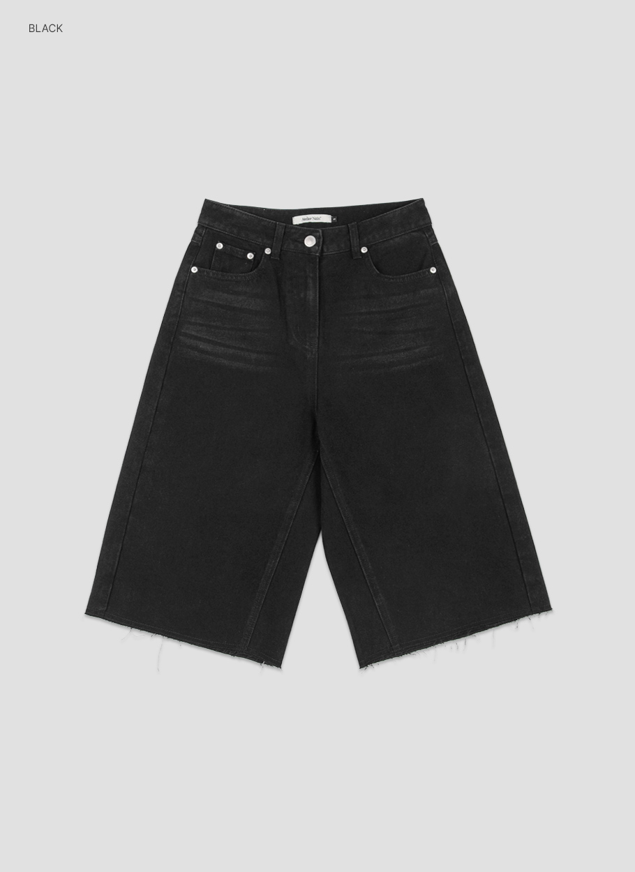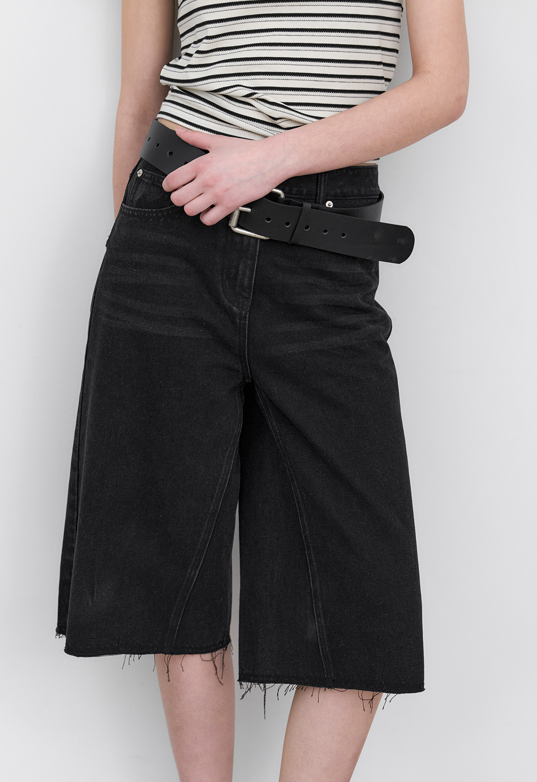 은은한 워싱의 딥 블랙 데님 버뮤다 팬츠입니다.