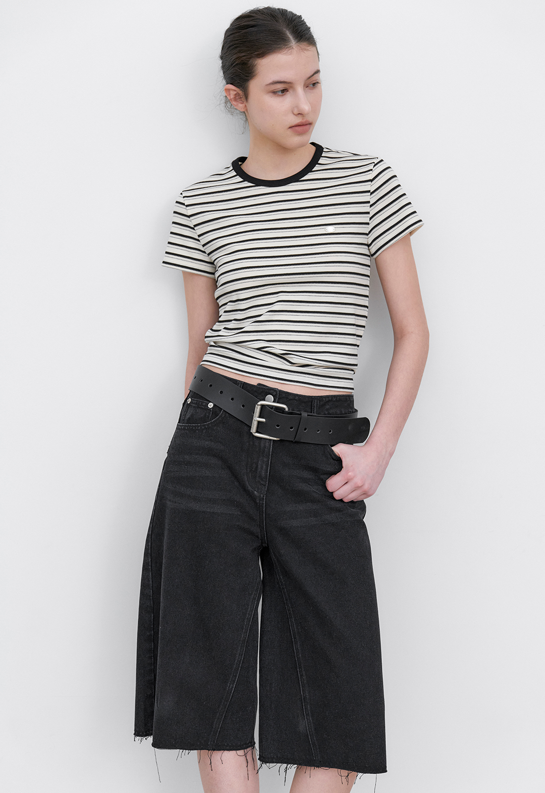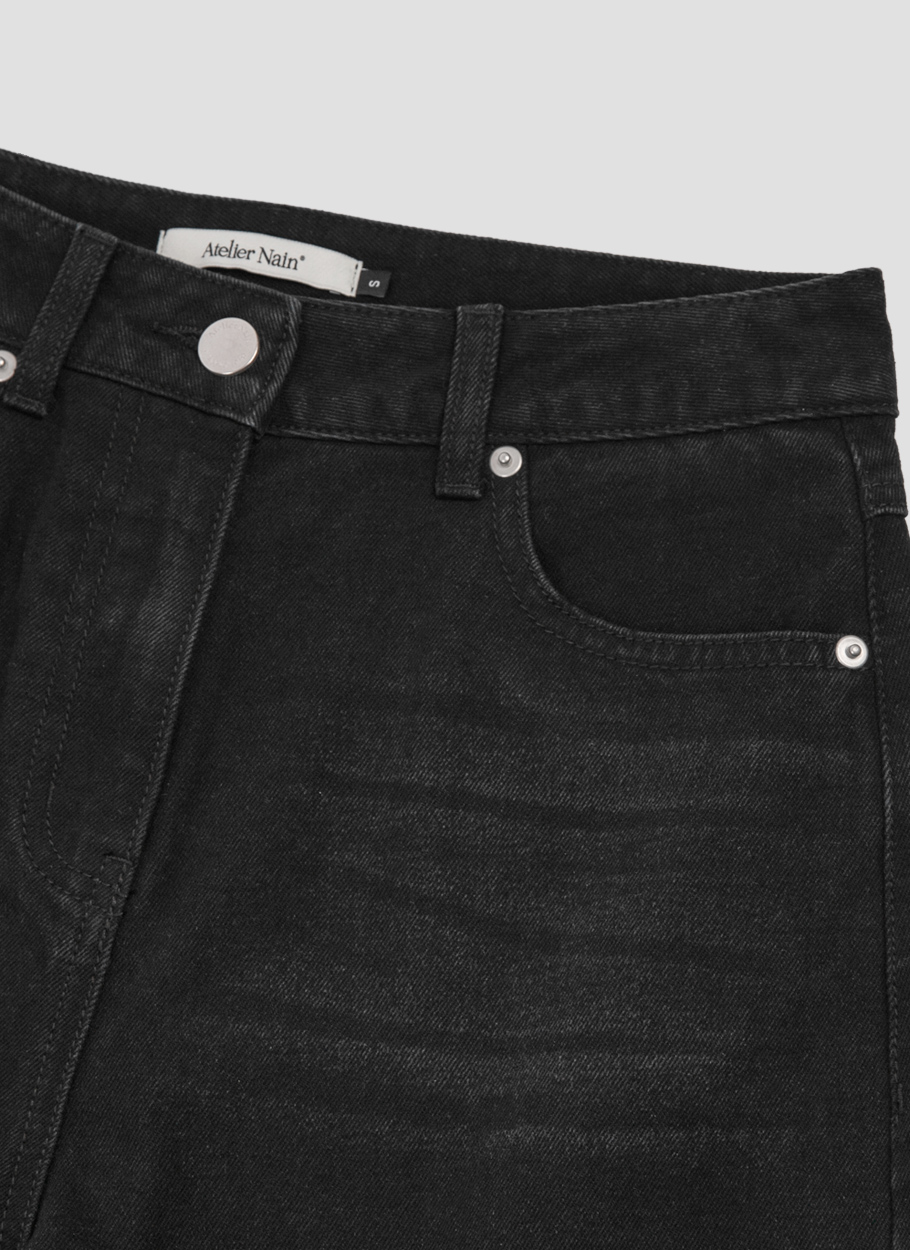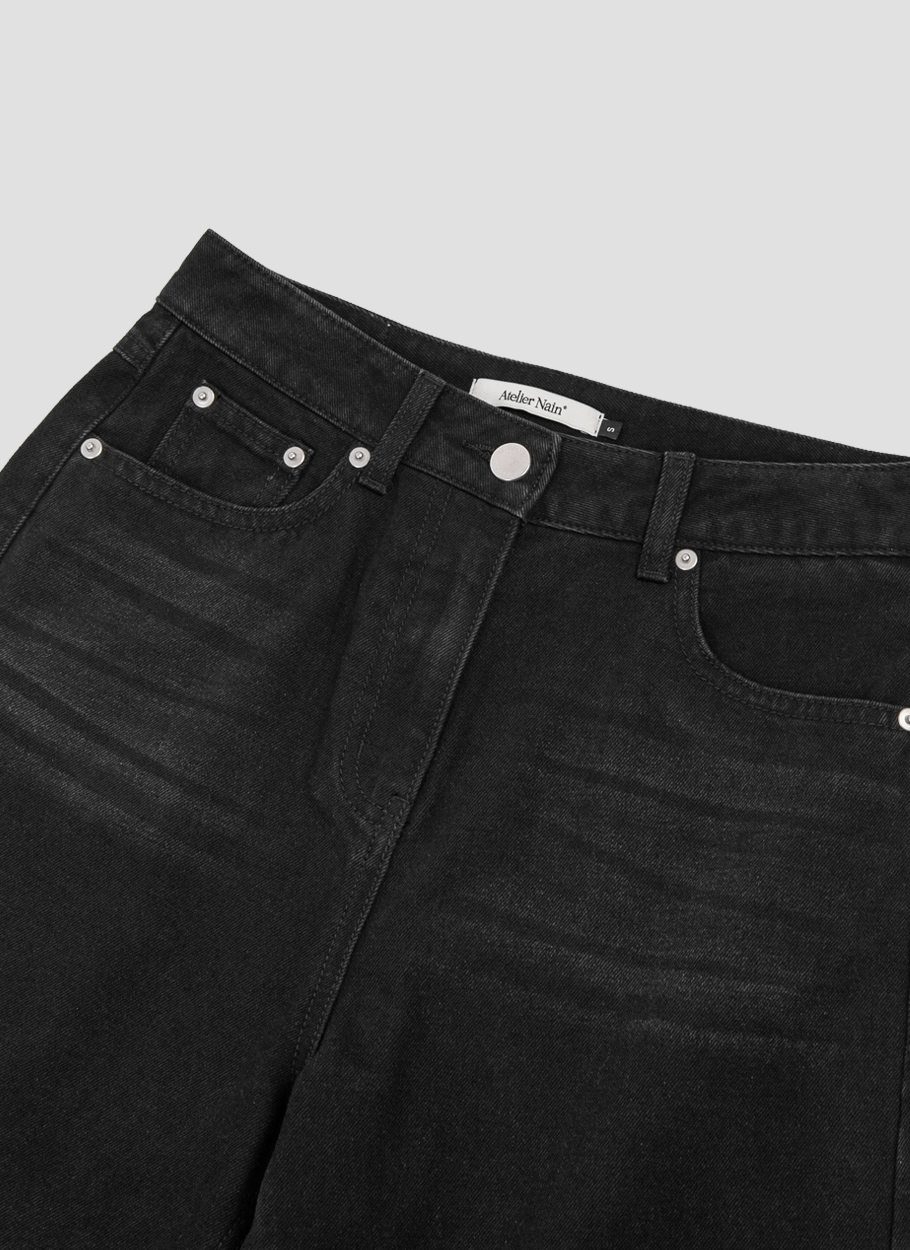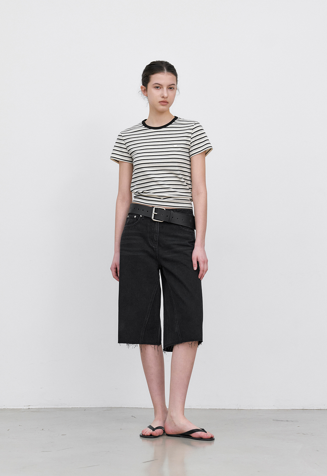은은한 워싱의 딥 블랙 데님 버뮤다 팬츠입니다.