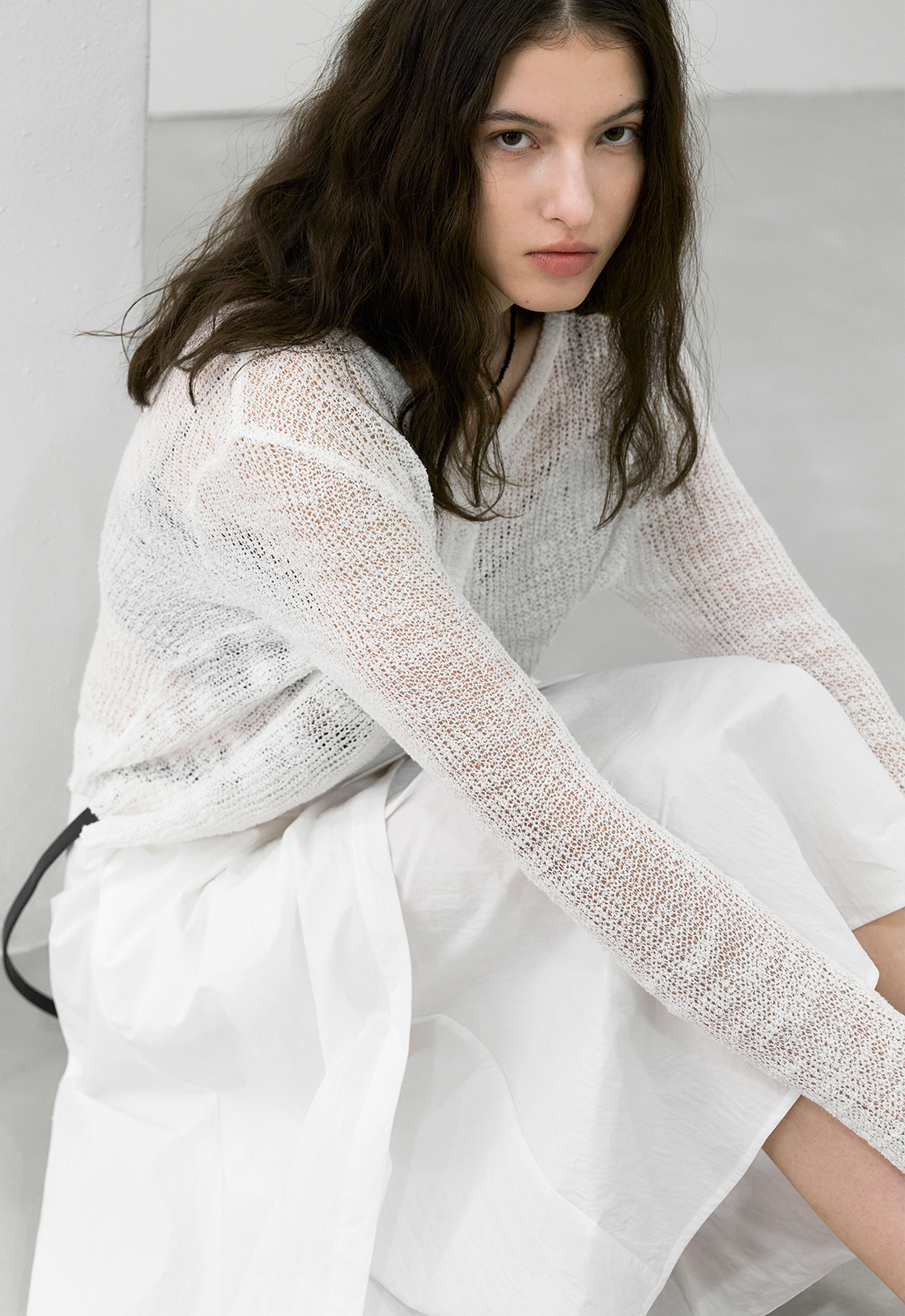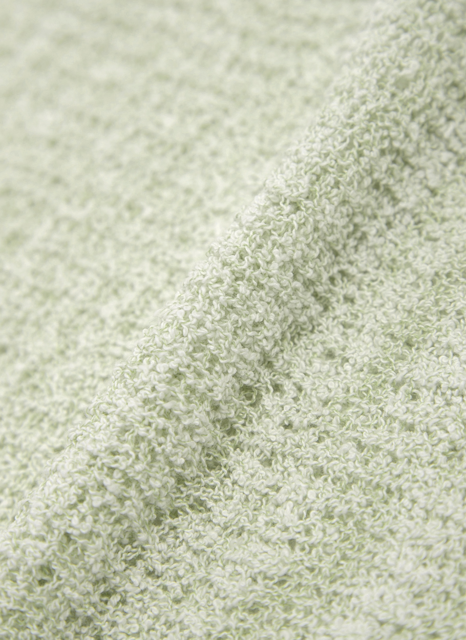 볼드하면서 성글게 짜인 NET 조직과 린넨 감촉이 시원한 착용감을 제공하며,