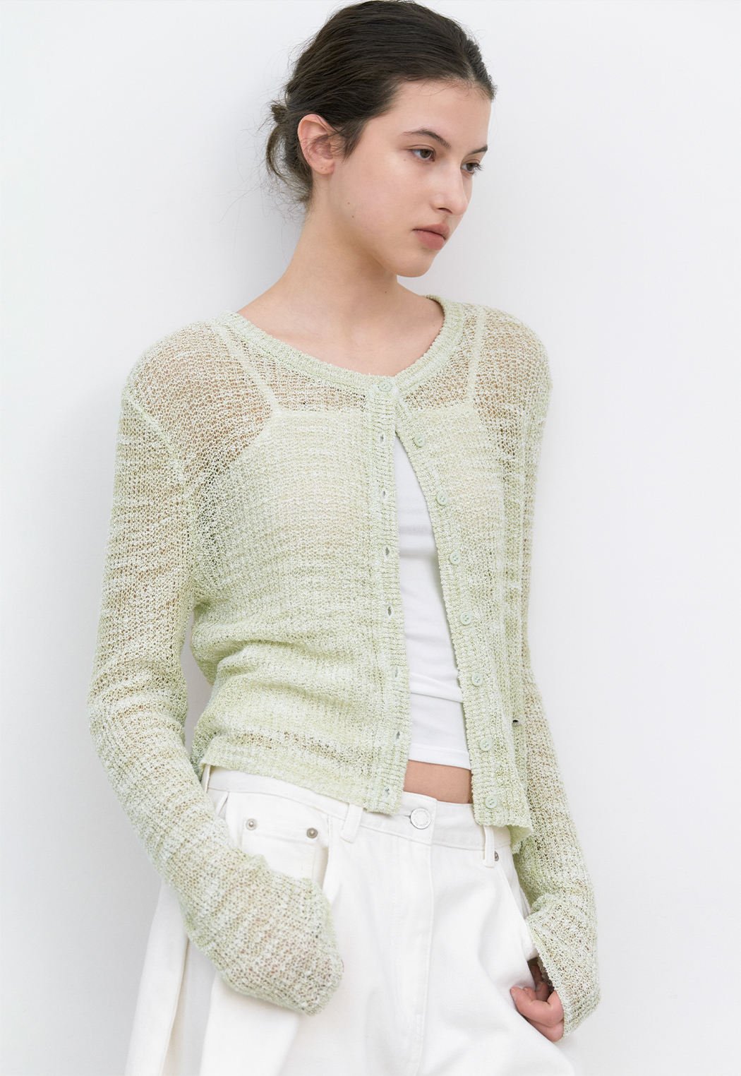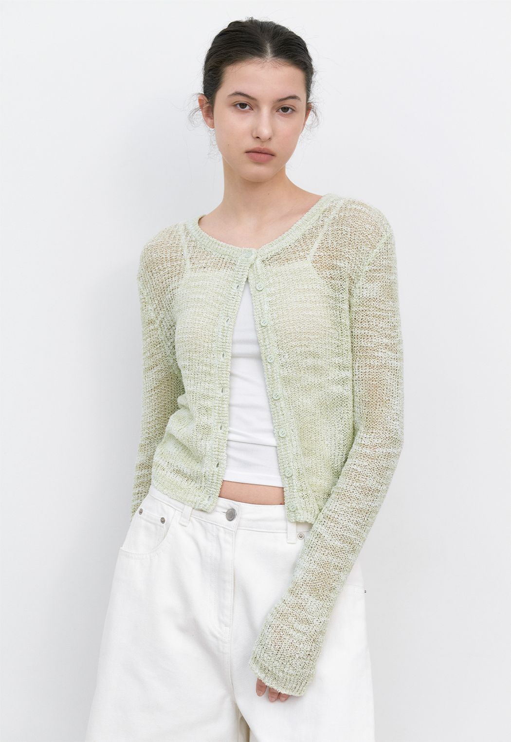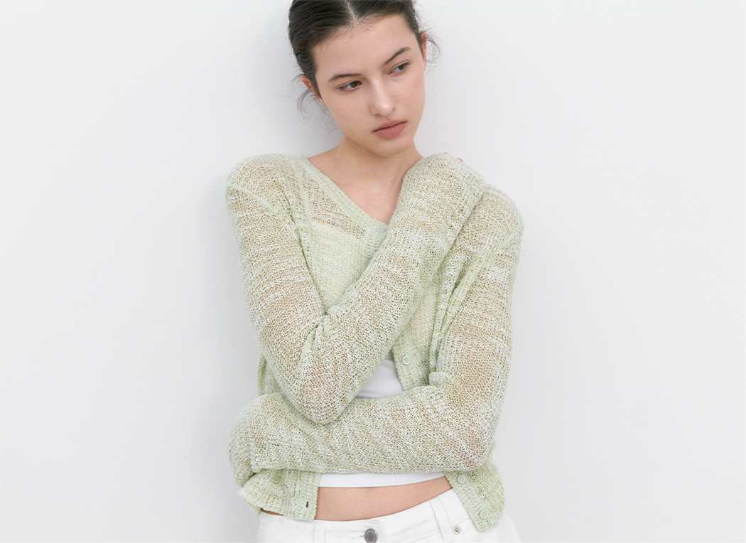 SUMMER SLUB YARN으로 제작된 슬림핏 니트 가디건입니다.