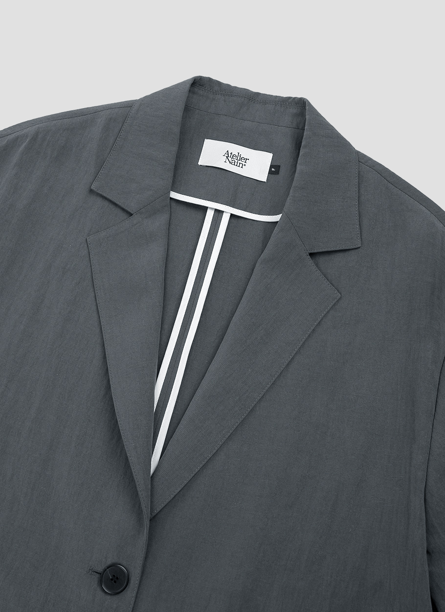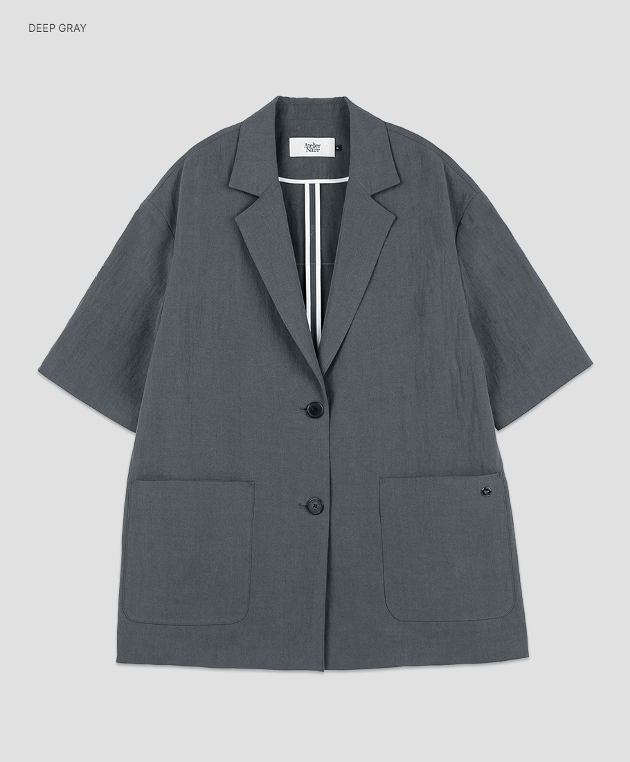 가볍게 흐르는 소재로 자연스러운 실루엣이 돋보이는 오버핏 자켓입니다.