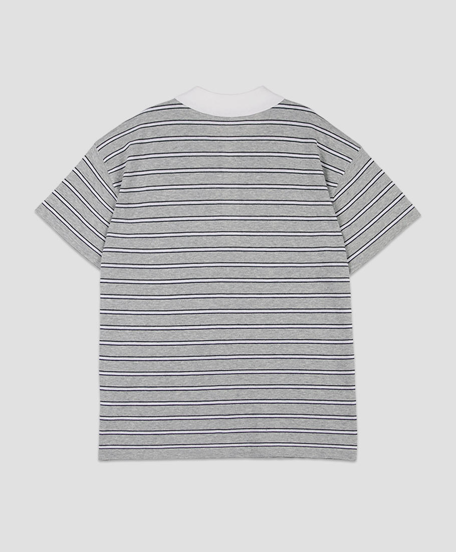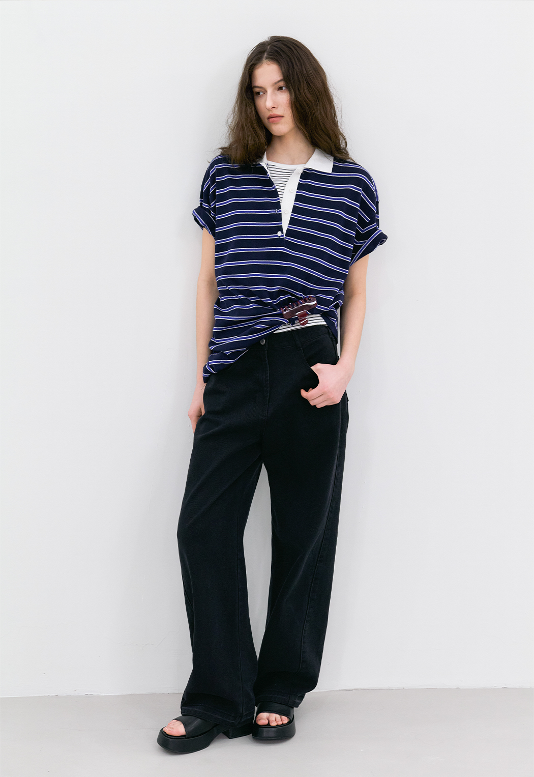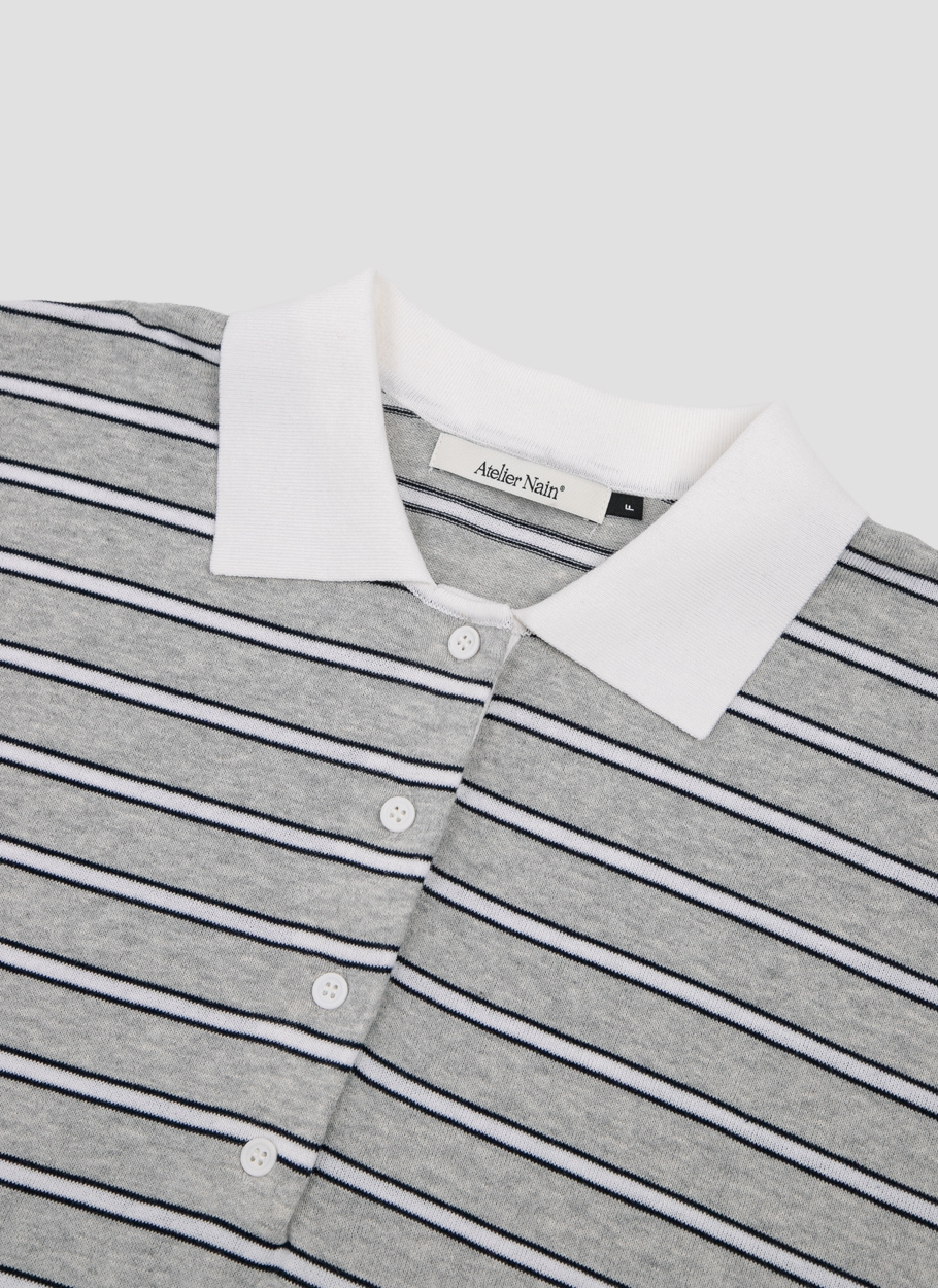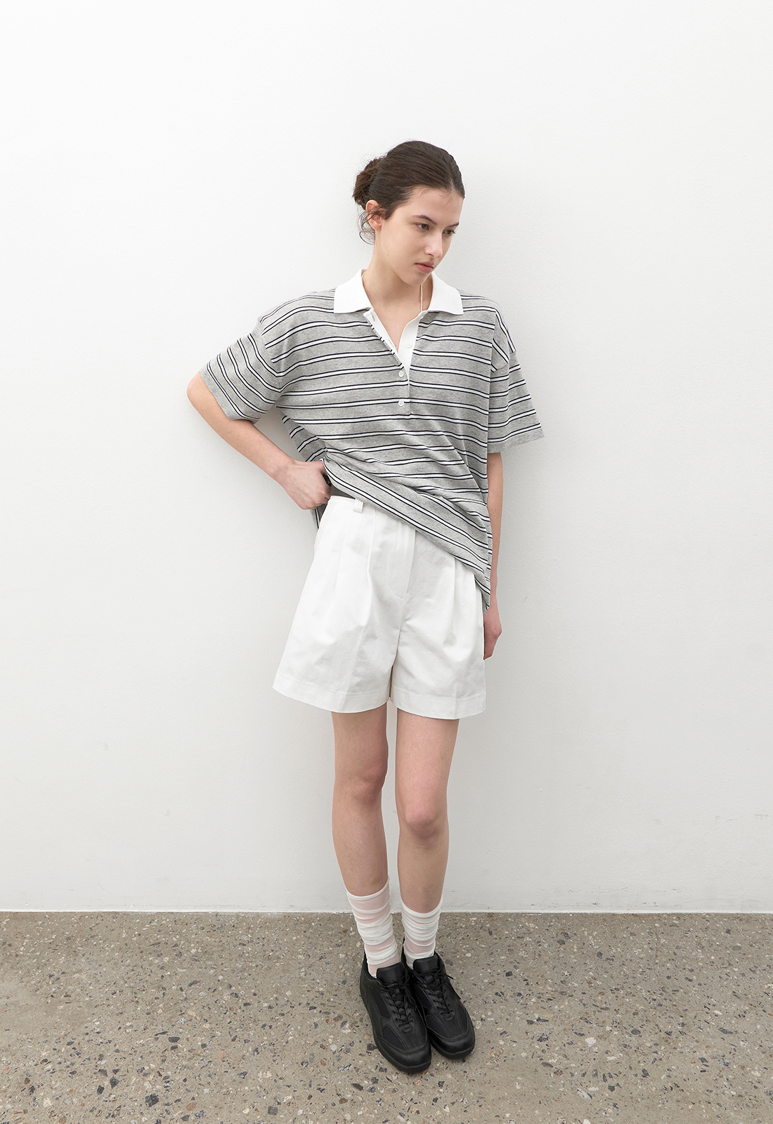 루즈 핏의 스트라이프 폴로 니트 풀오버입니다.