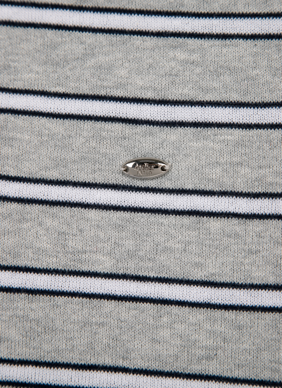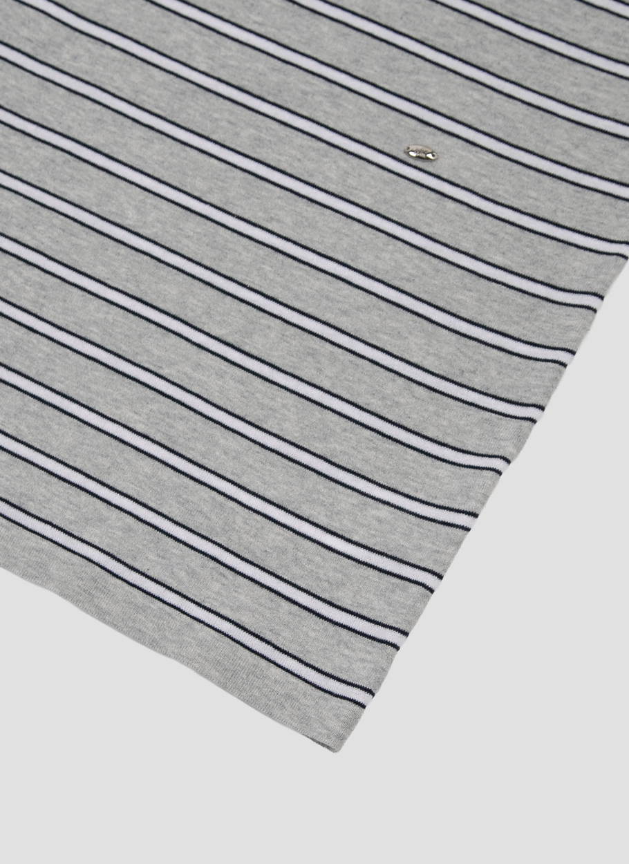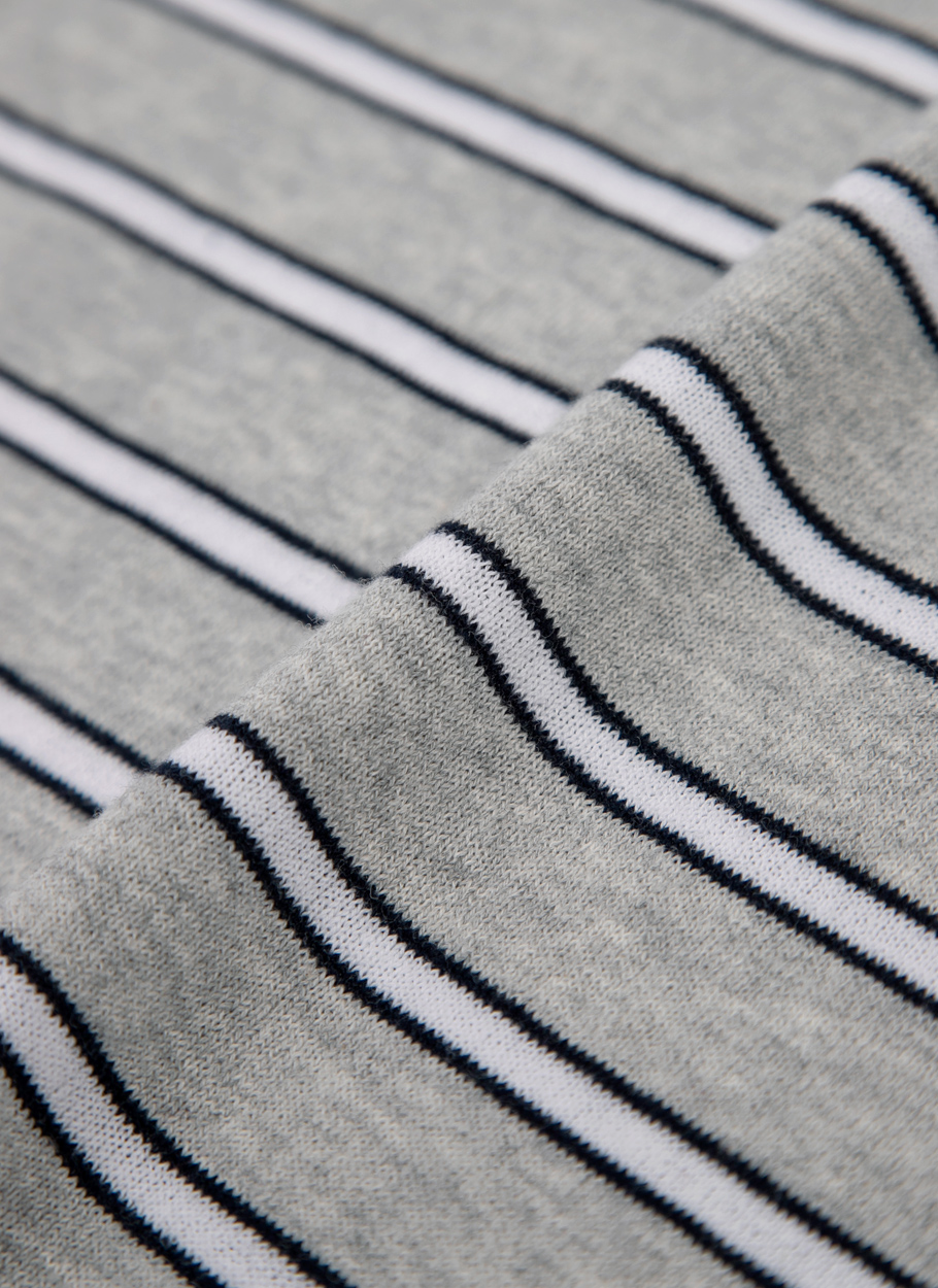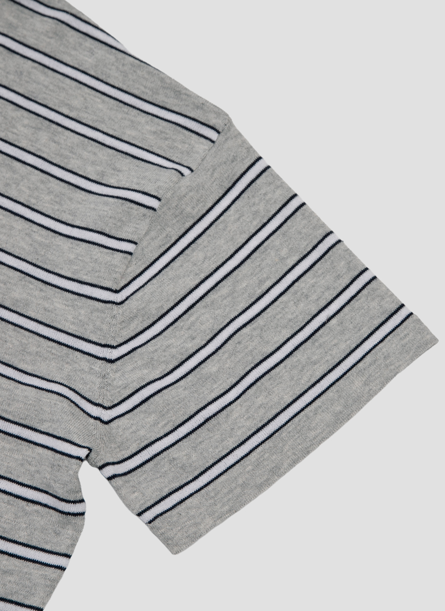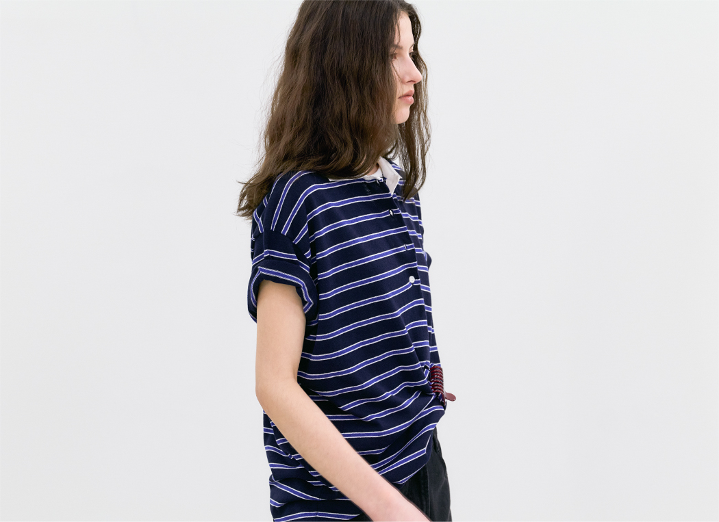 루즈 핏의 스트라이프 폴로 니트 풀오버입니다.