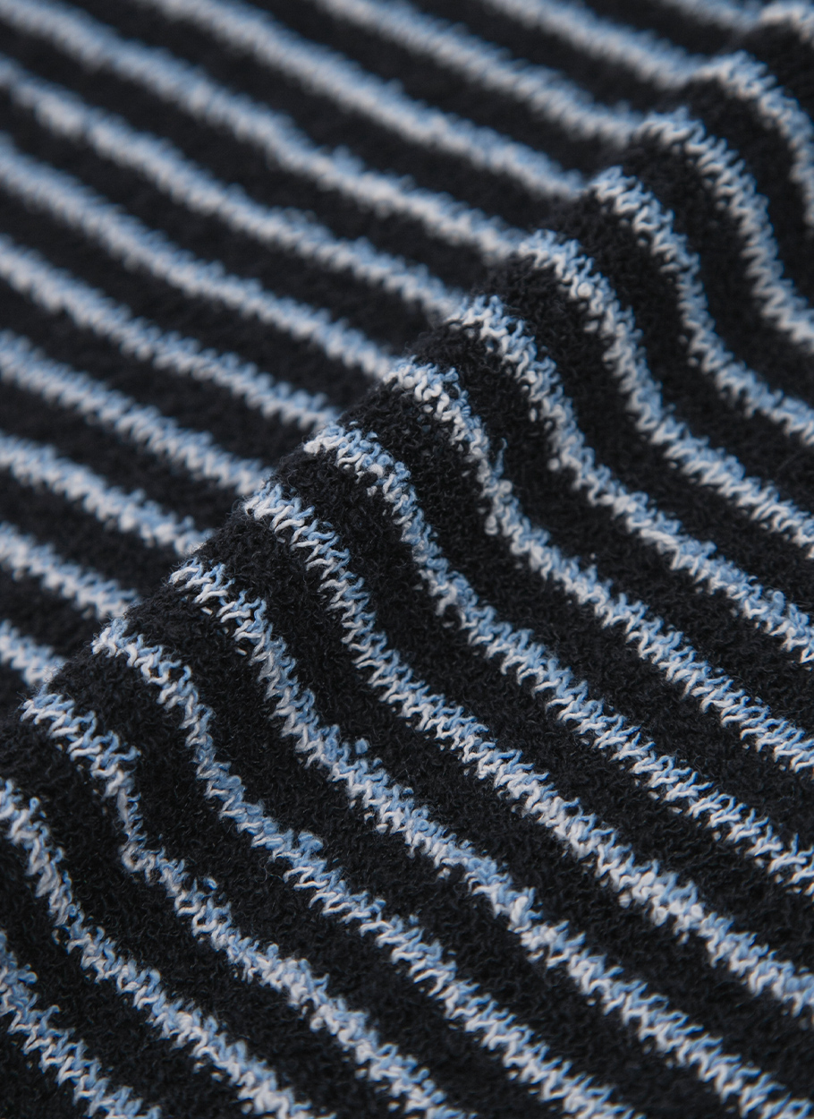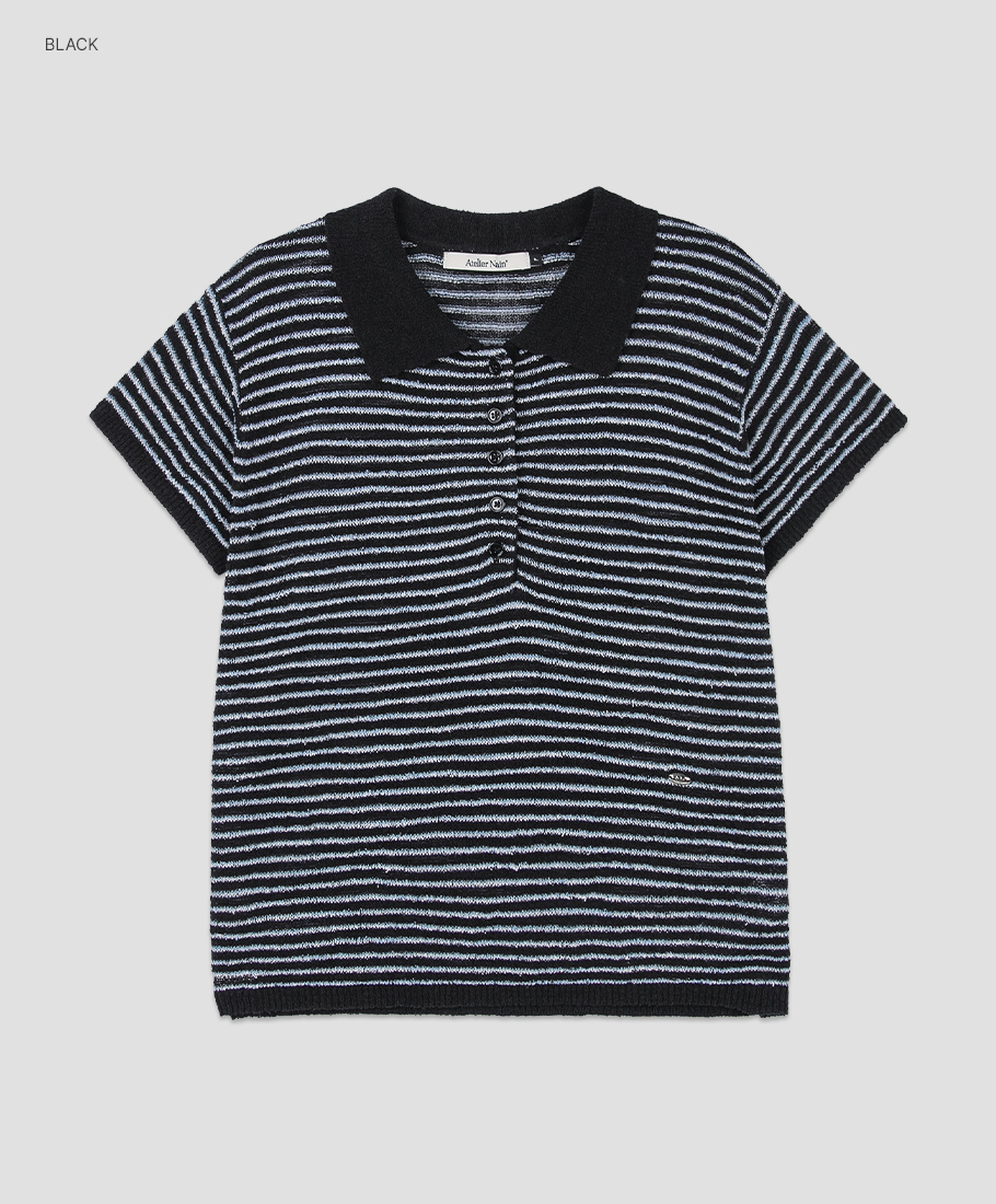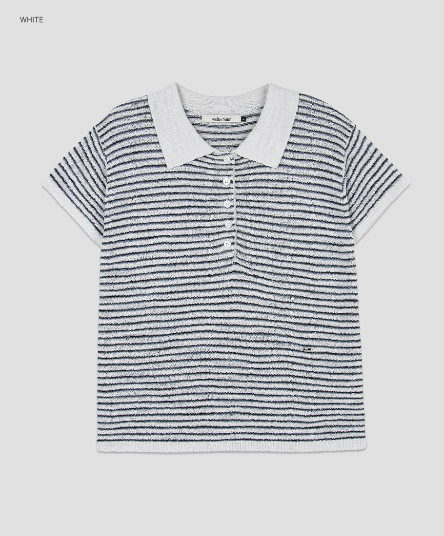가벼운 부클 소재와 카라 스트라이프가 포인트인 니트 풀오버입니다.