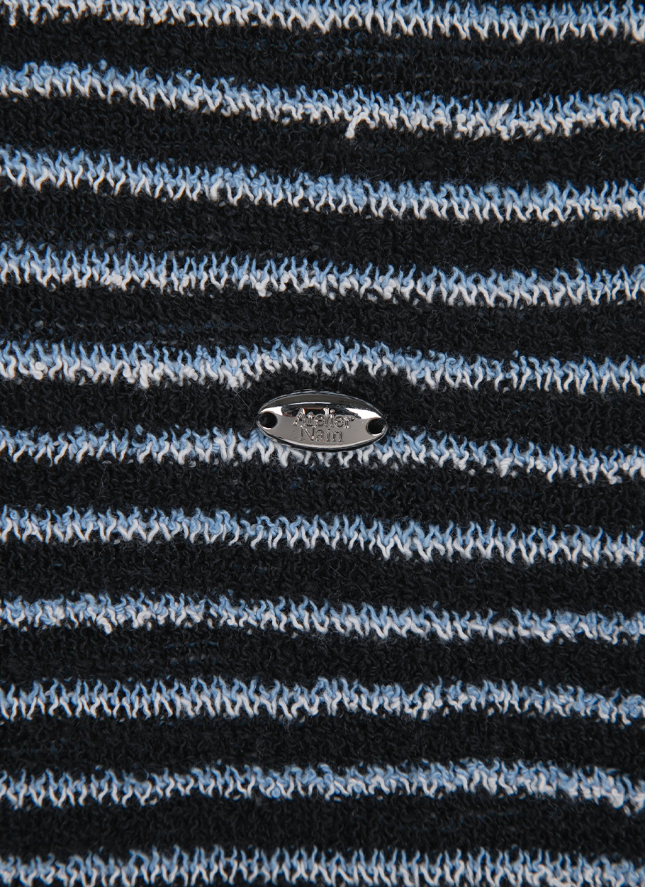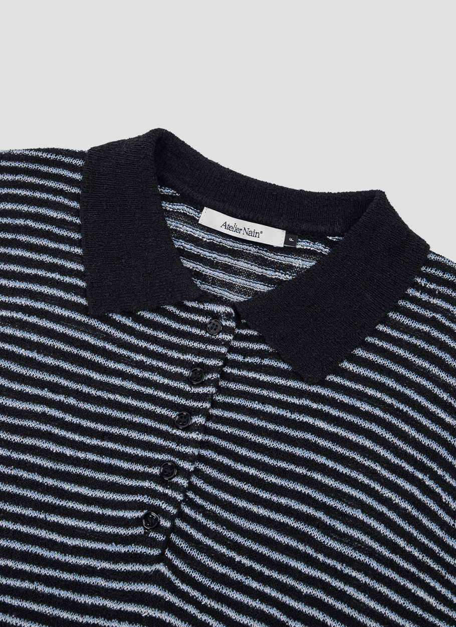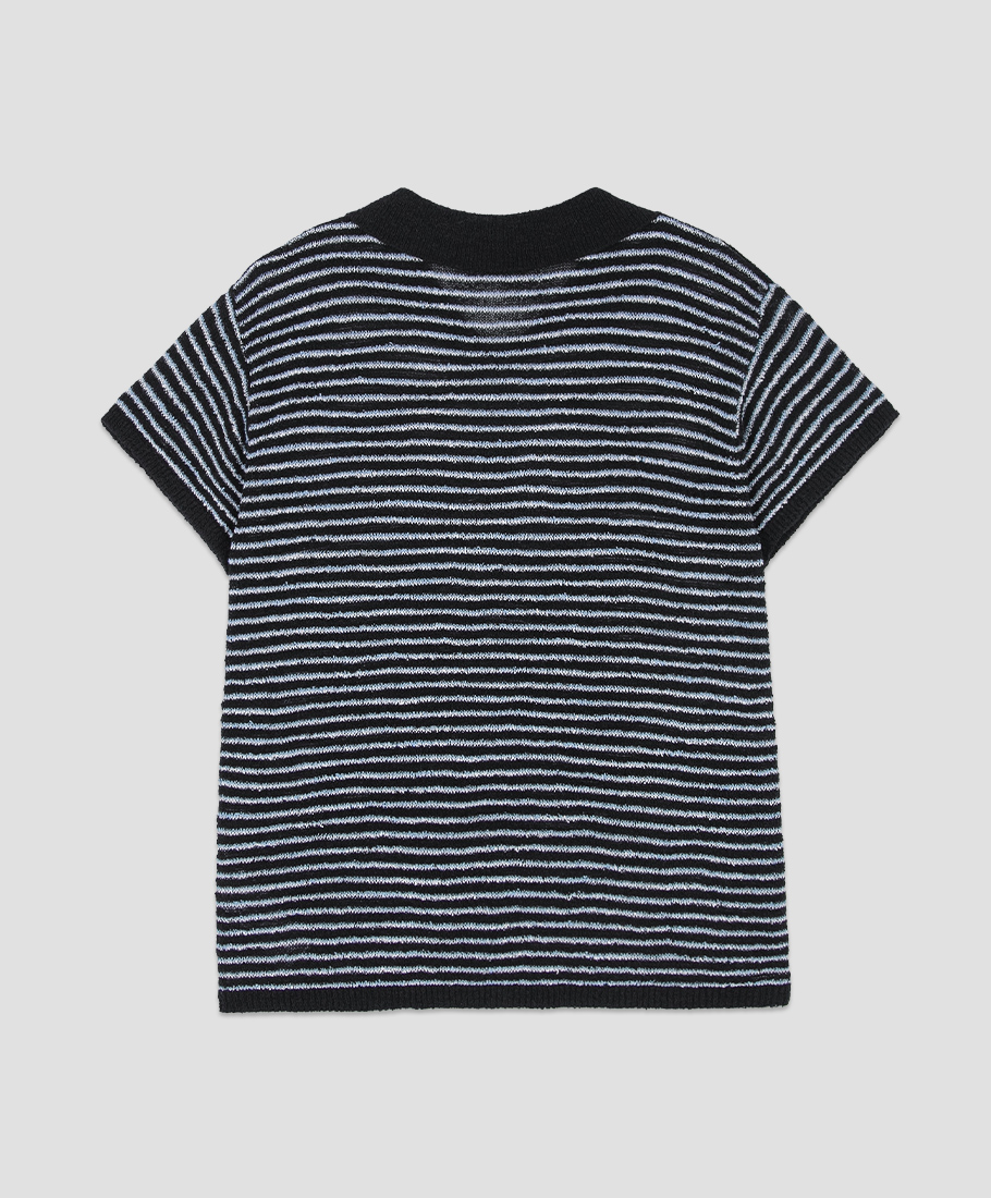 가벼운 부클 소재와 카라 스트라이프가 포인트인 니트 풀오버입니다.