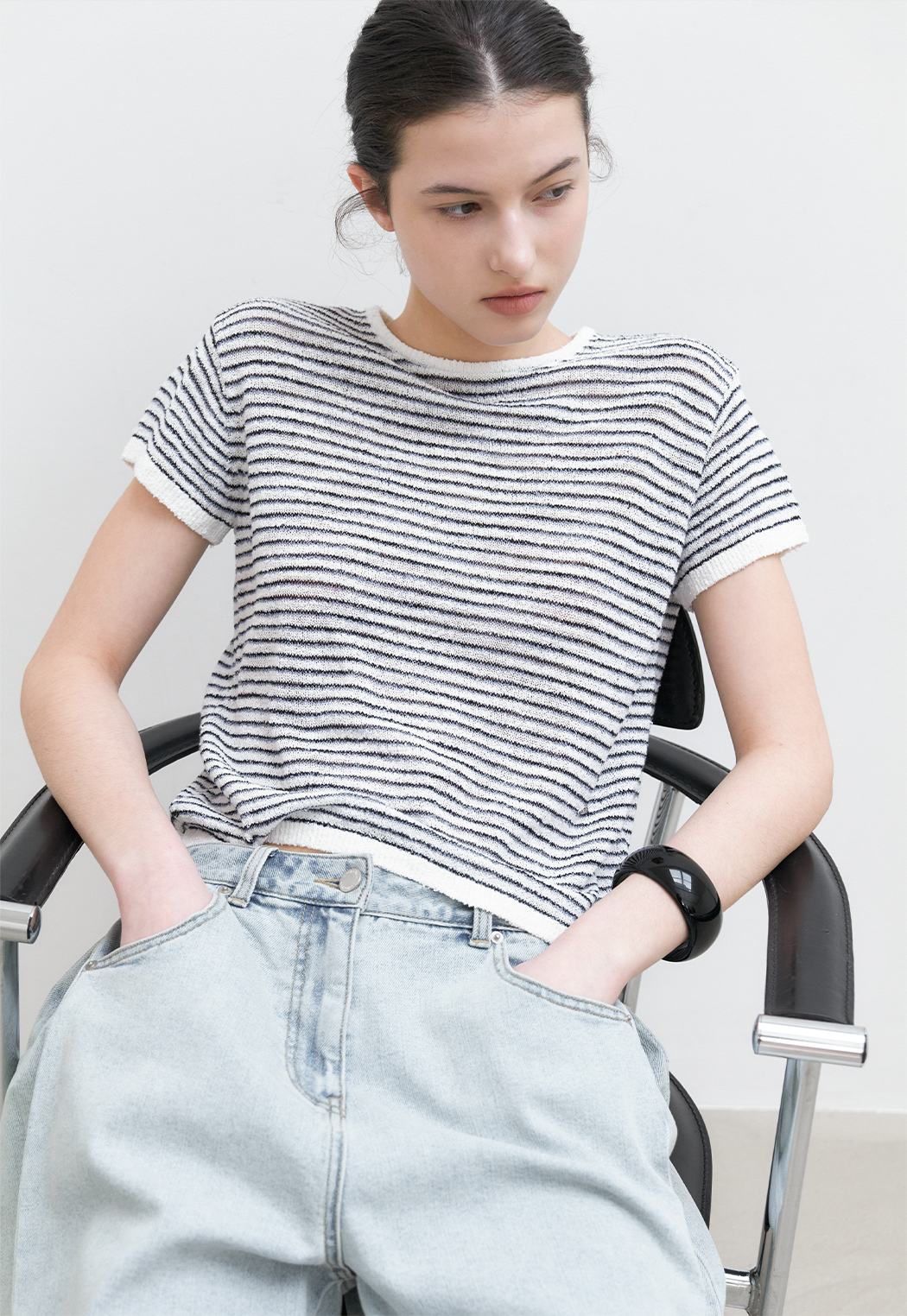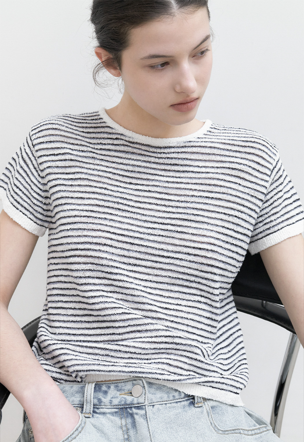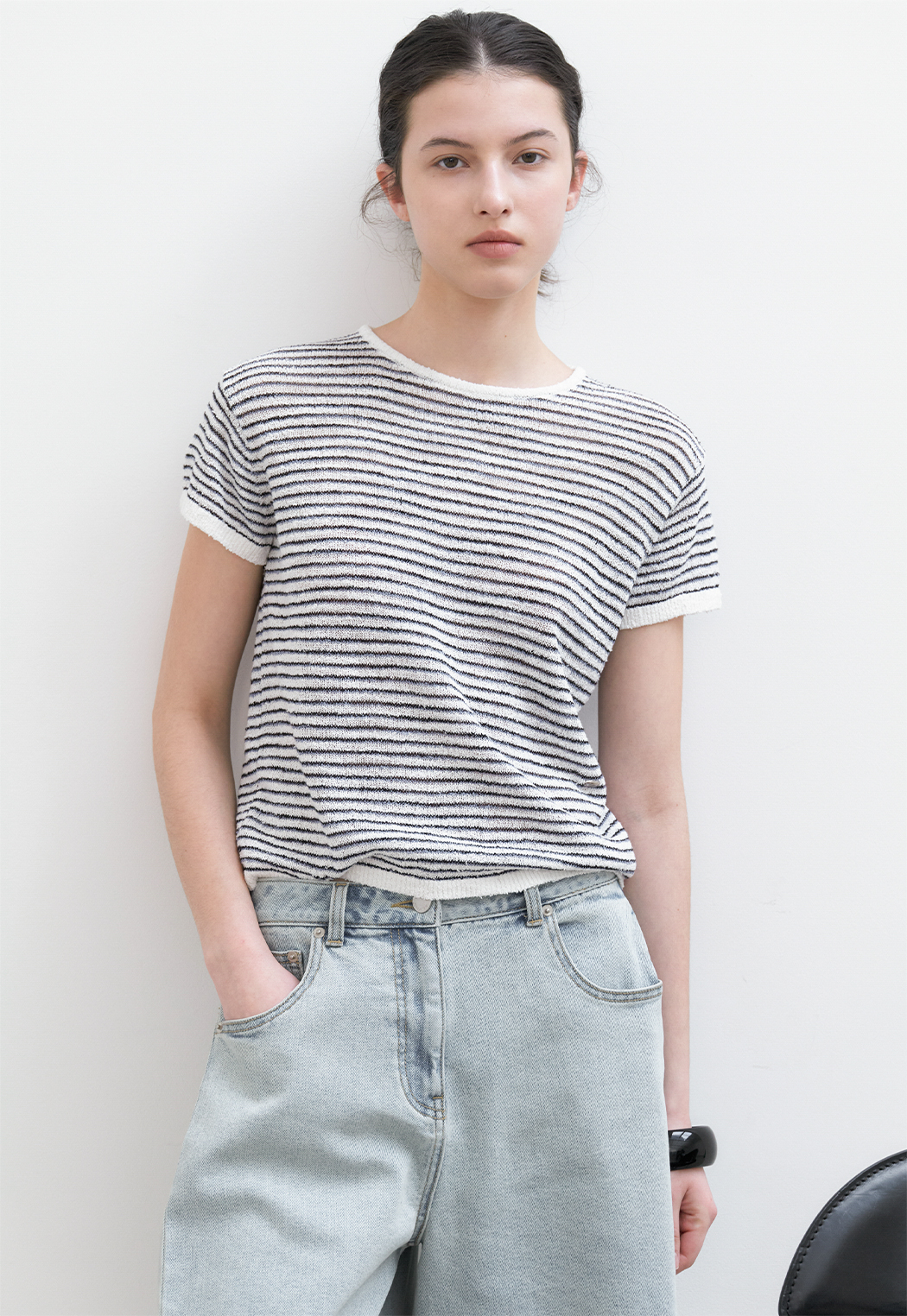 가볍게 한 가지 아이템만으로도 포인트 주기 좋은 여름 니트 풀오버입니다.