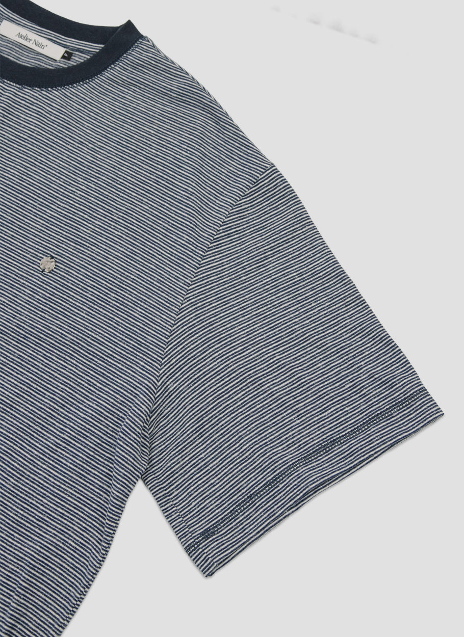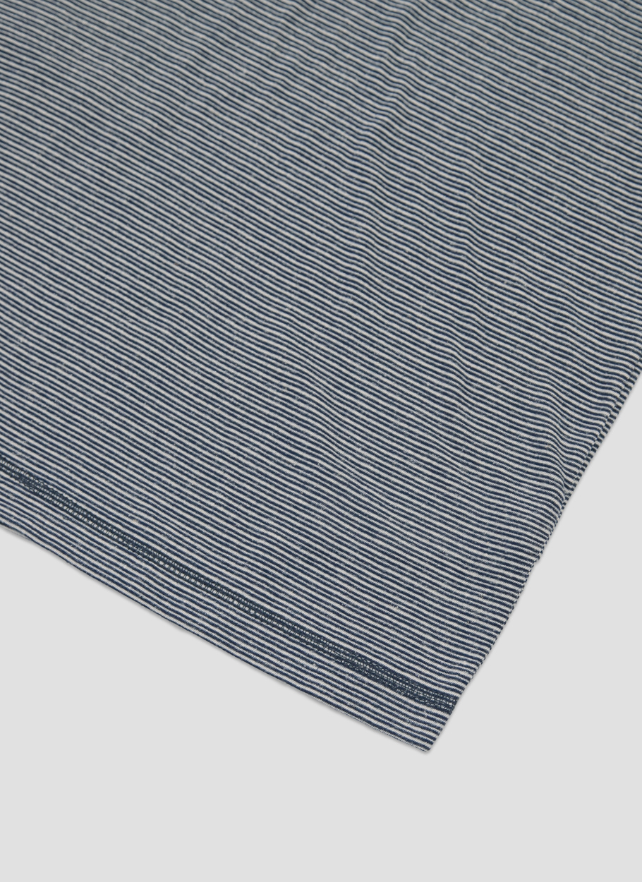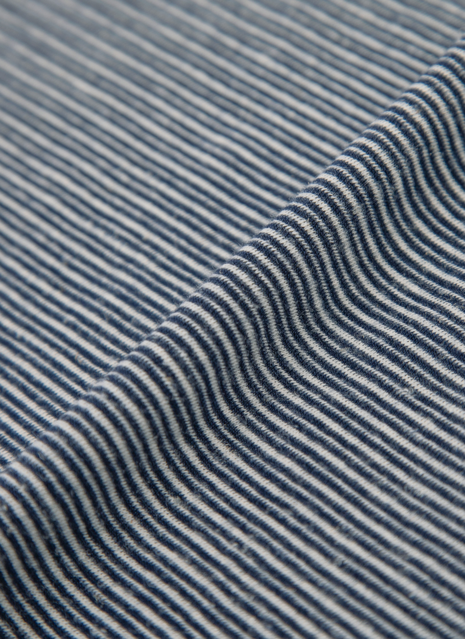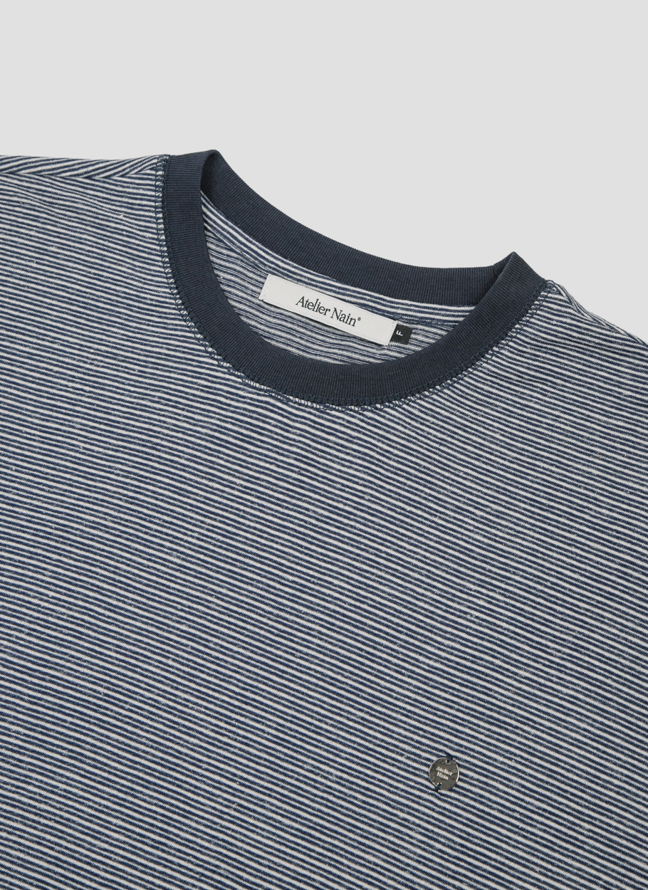 멀티 스트라이프와 배색 리브 디테일이 포인트인 박시핏 티셔츠입니다.
