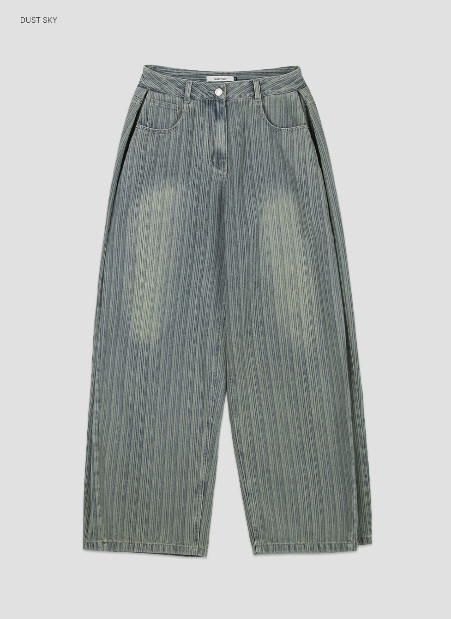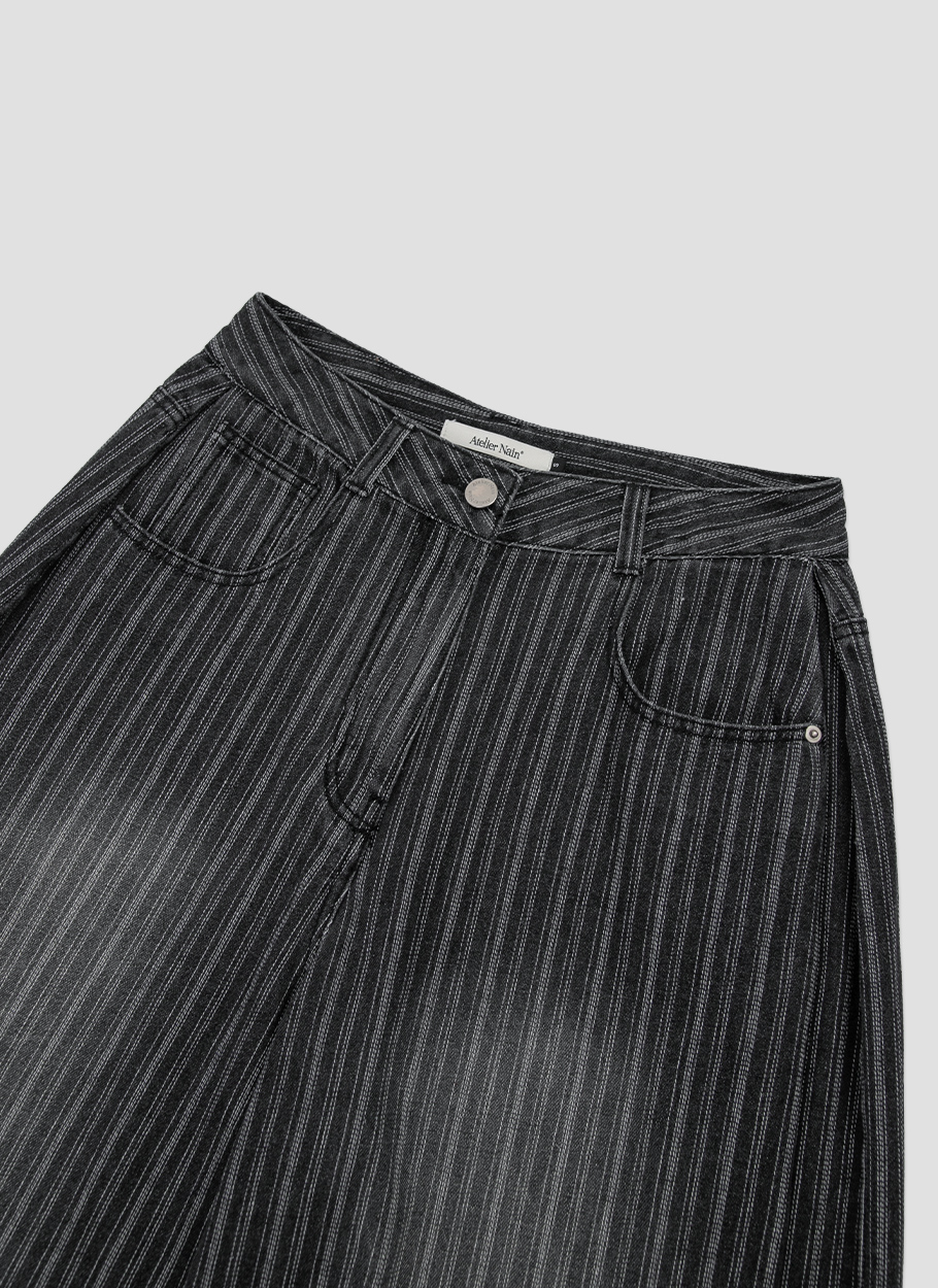 잔잔한 스트라이프 패턴이 돋보이는 데님 팬츠입니다.
