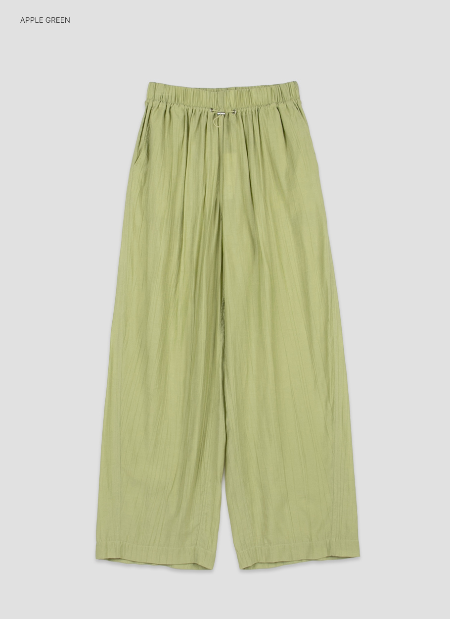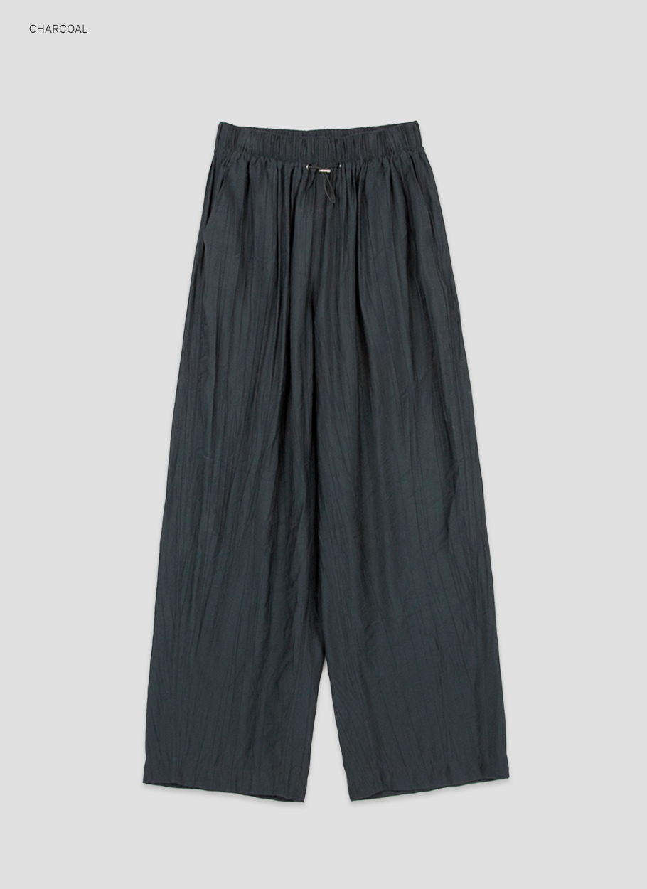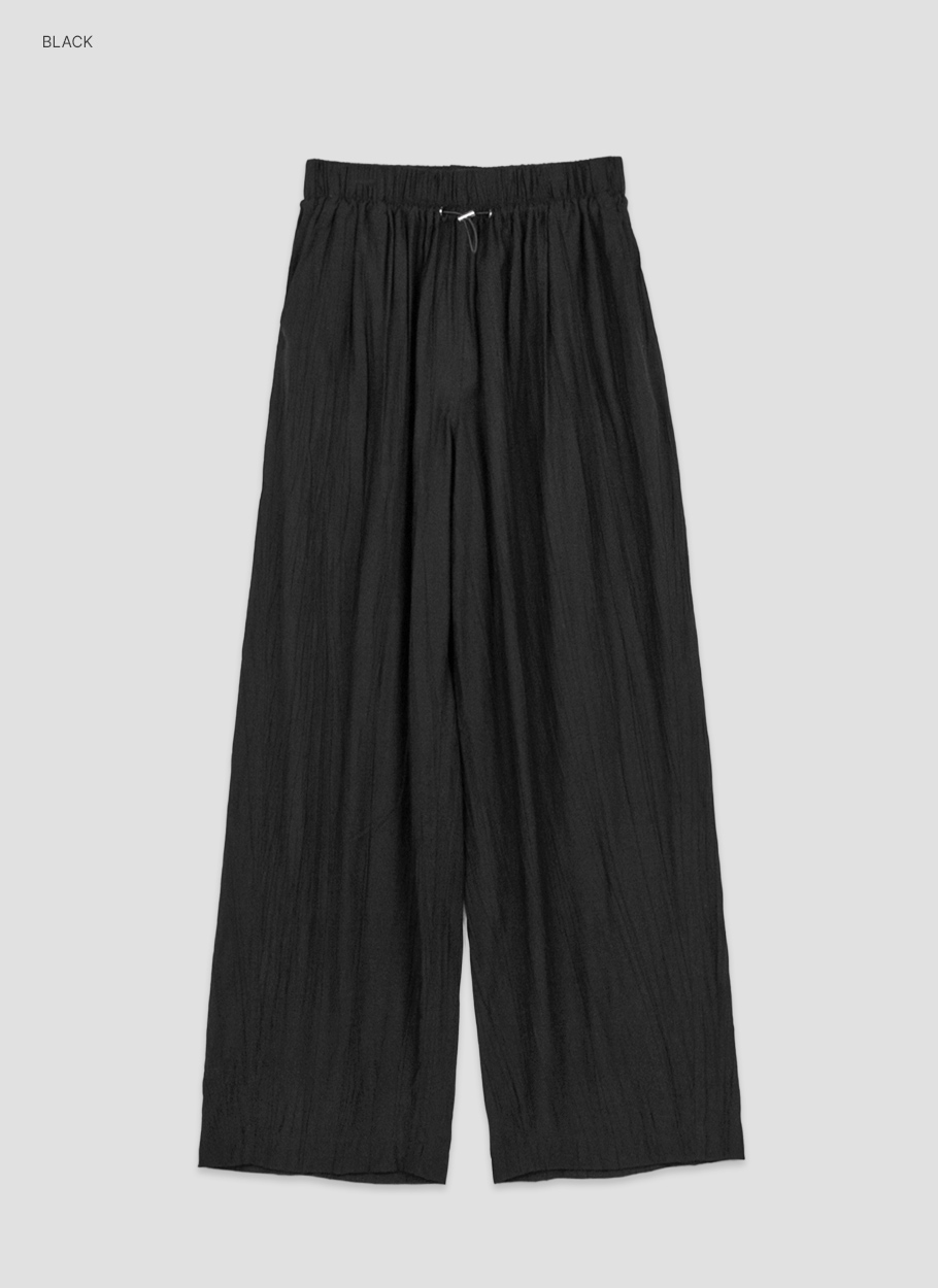 와샤 주름이 더해진 가벼운 텍스처의 밴딩 팬츠입니다.
