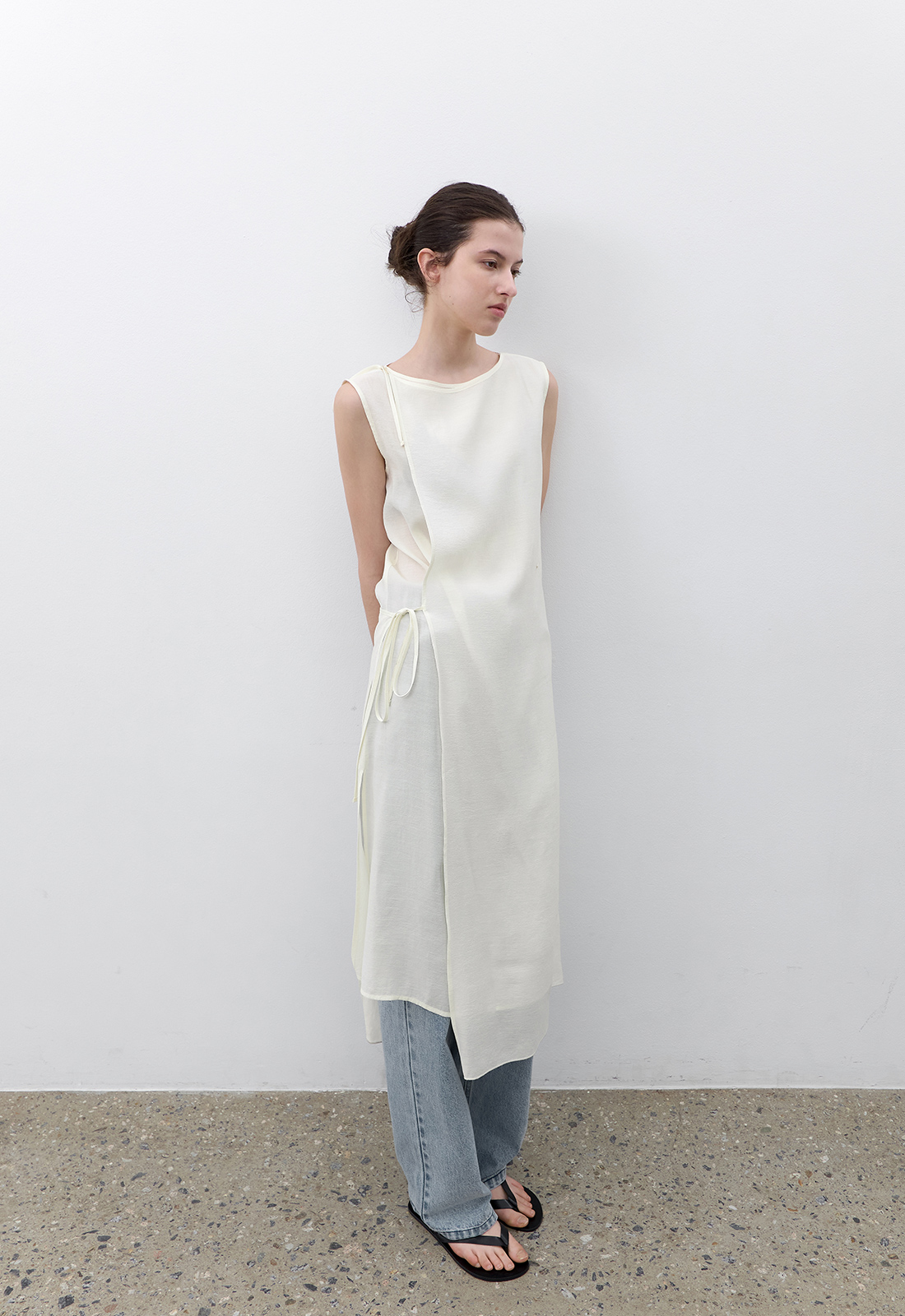 바디를 따라 부드럽게 흐르는 실루엣과 슬림 스트랩, 레이어드 디테일이