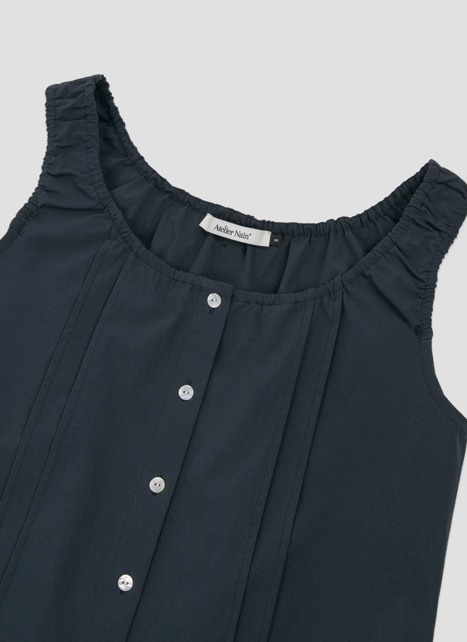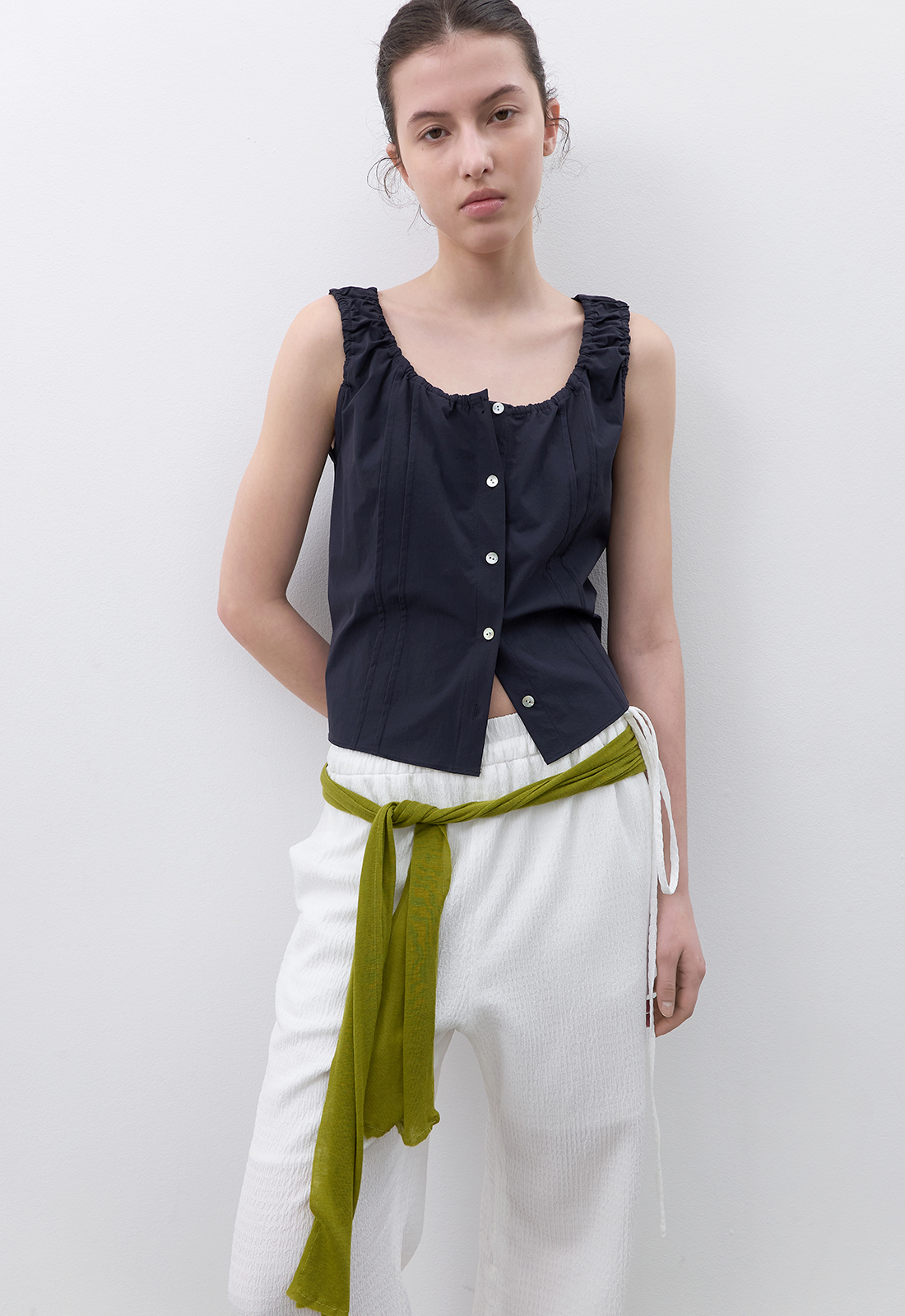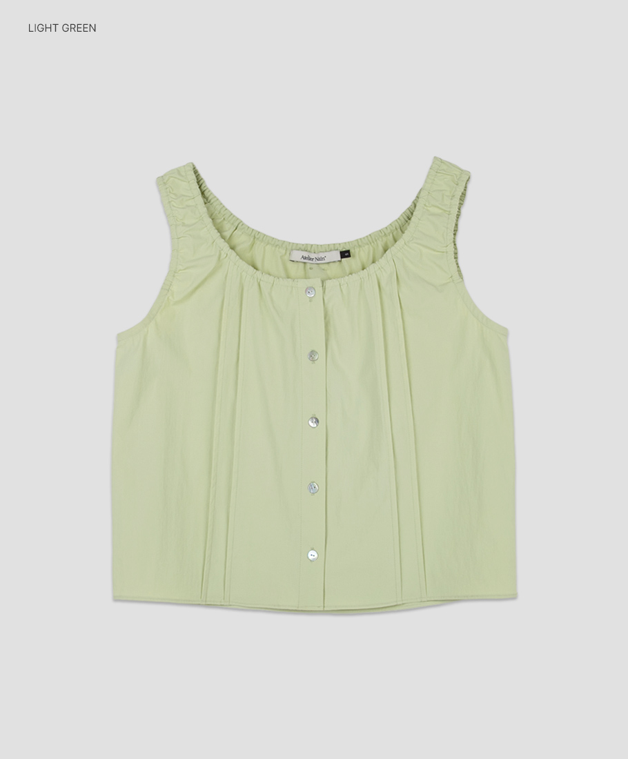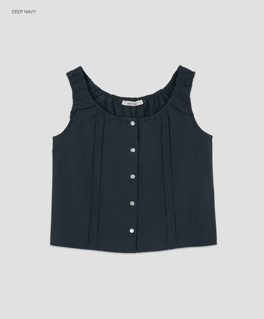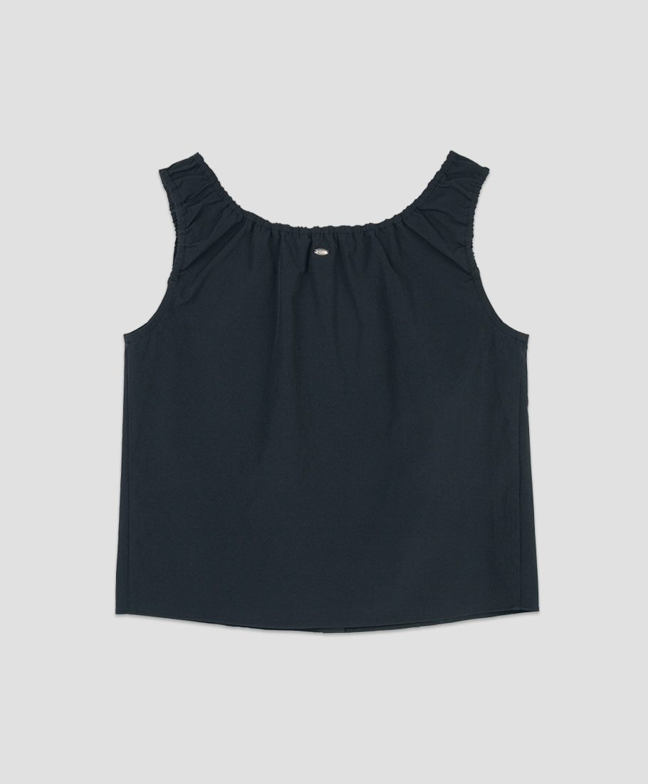 페미닌한 무드가 돋보이는 슬리브리스 블라우스입니다.