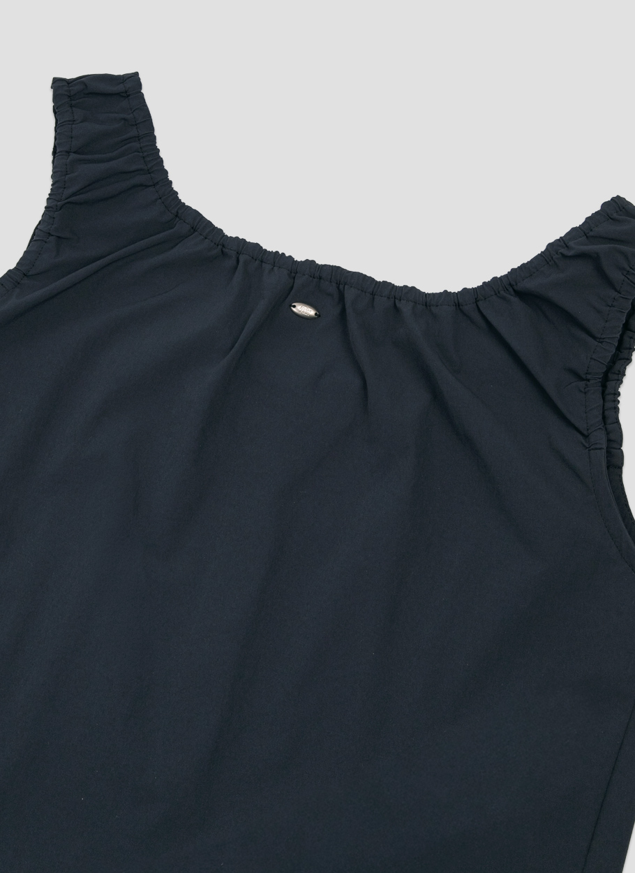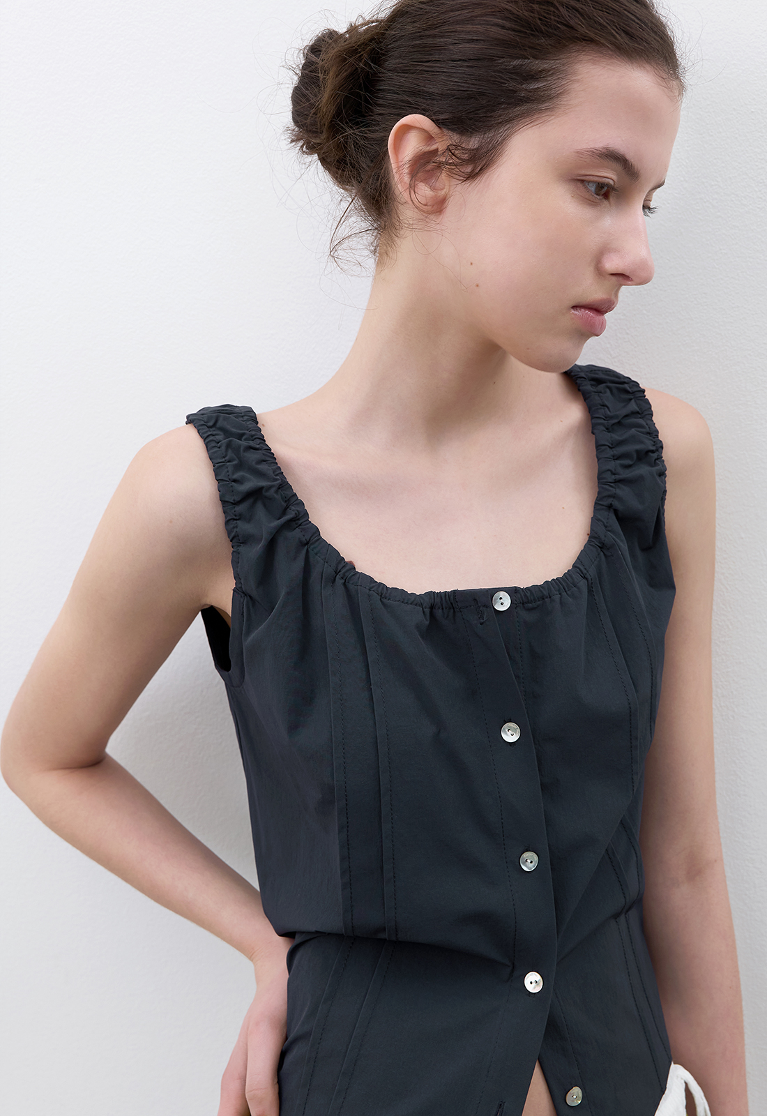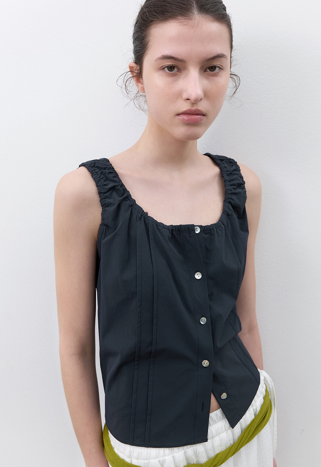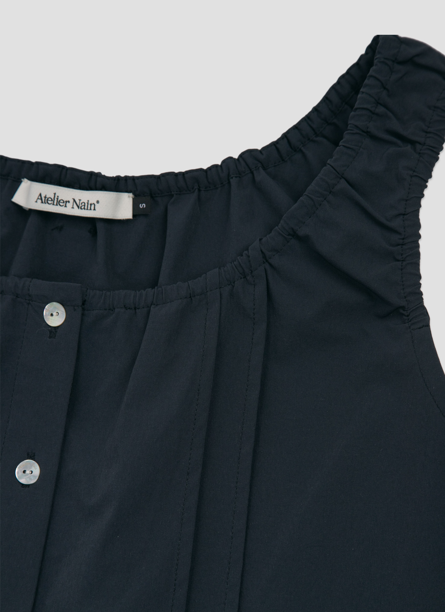 페미닌한 무드가 돋보이는 슬리브리스 블라우스입니다.
