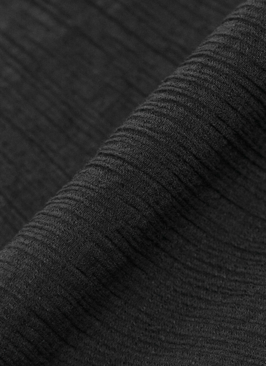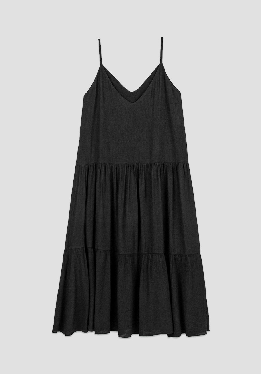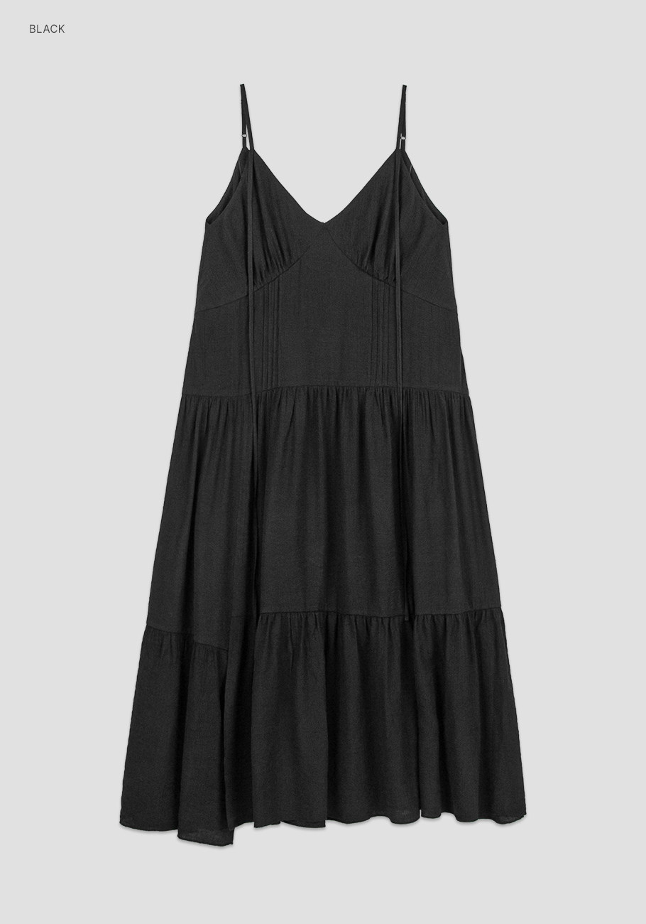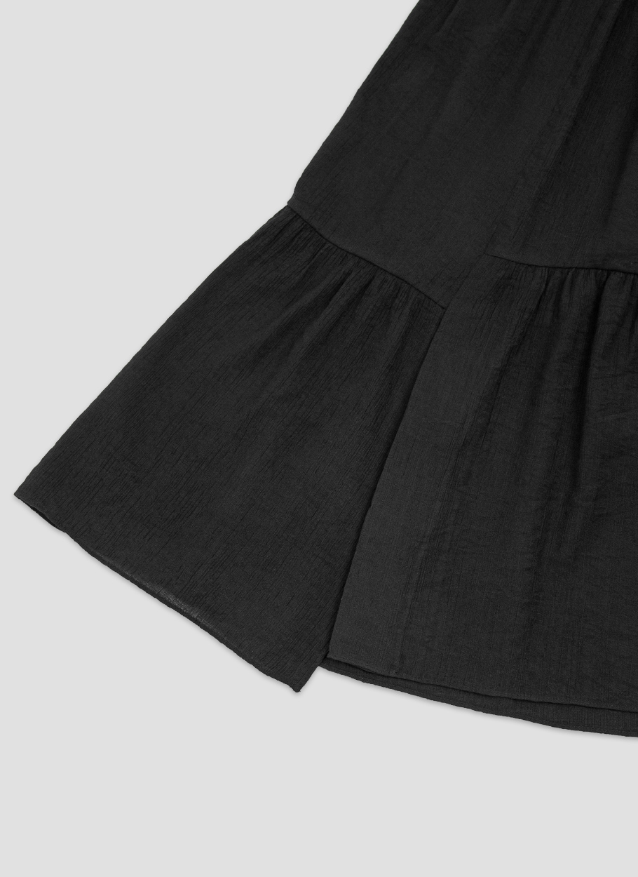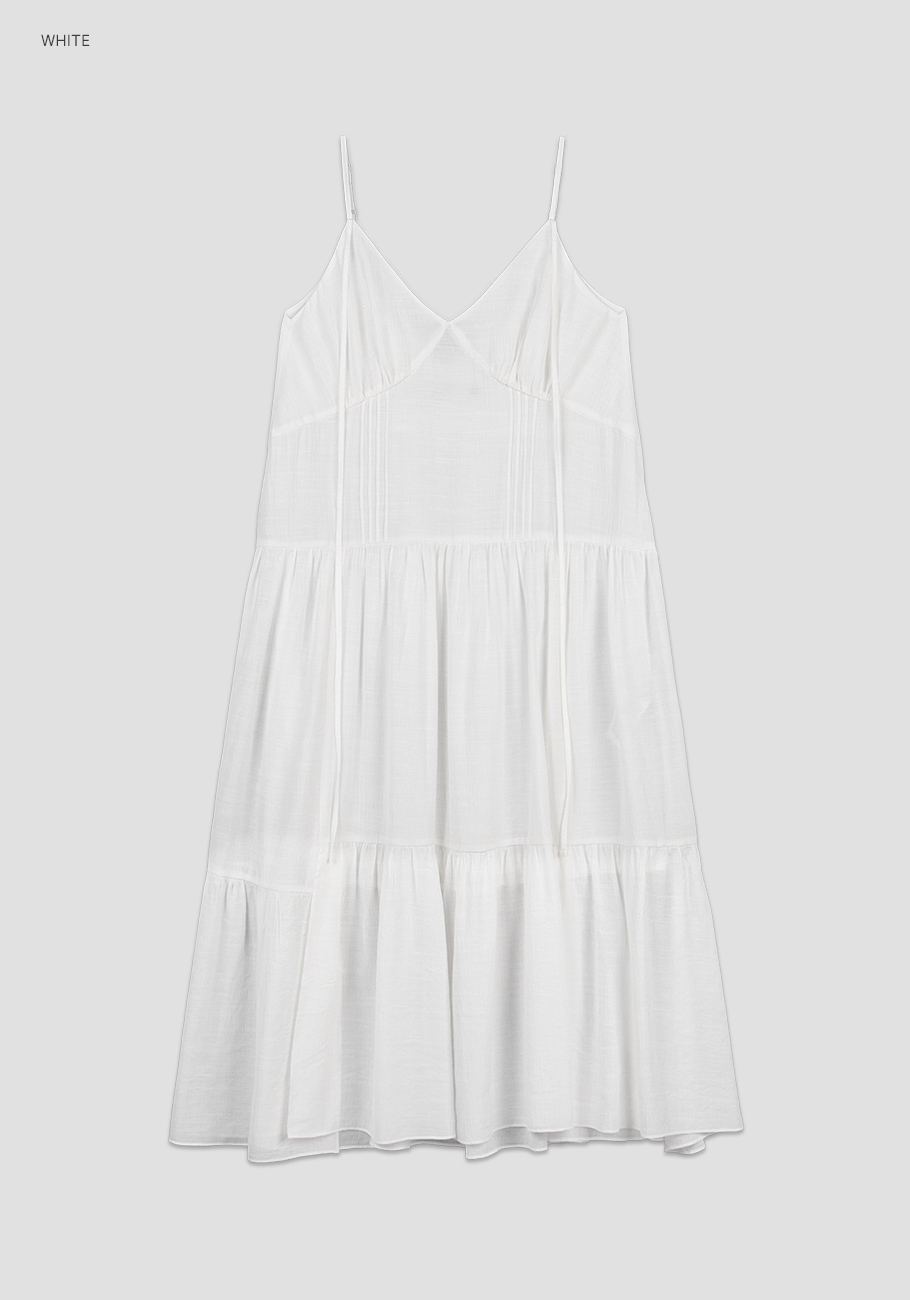 은은한 결감의 소재와 여유로운 실루엣, 티어드 디테일이 어우러져