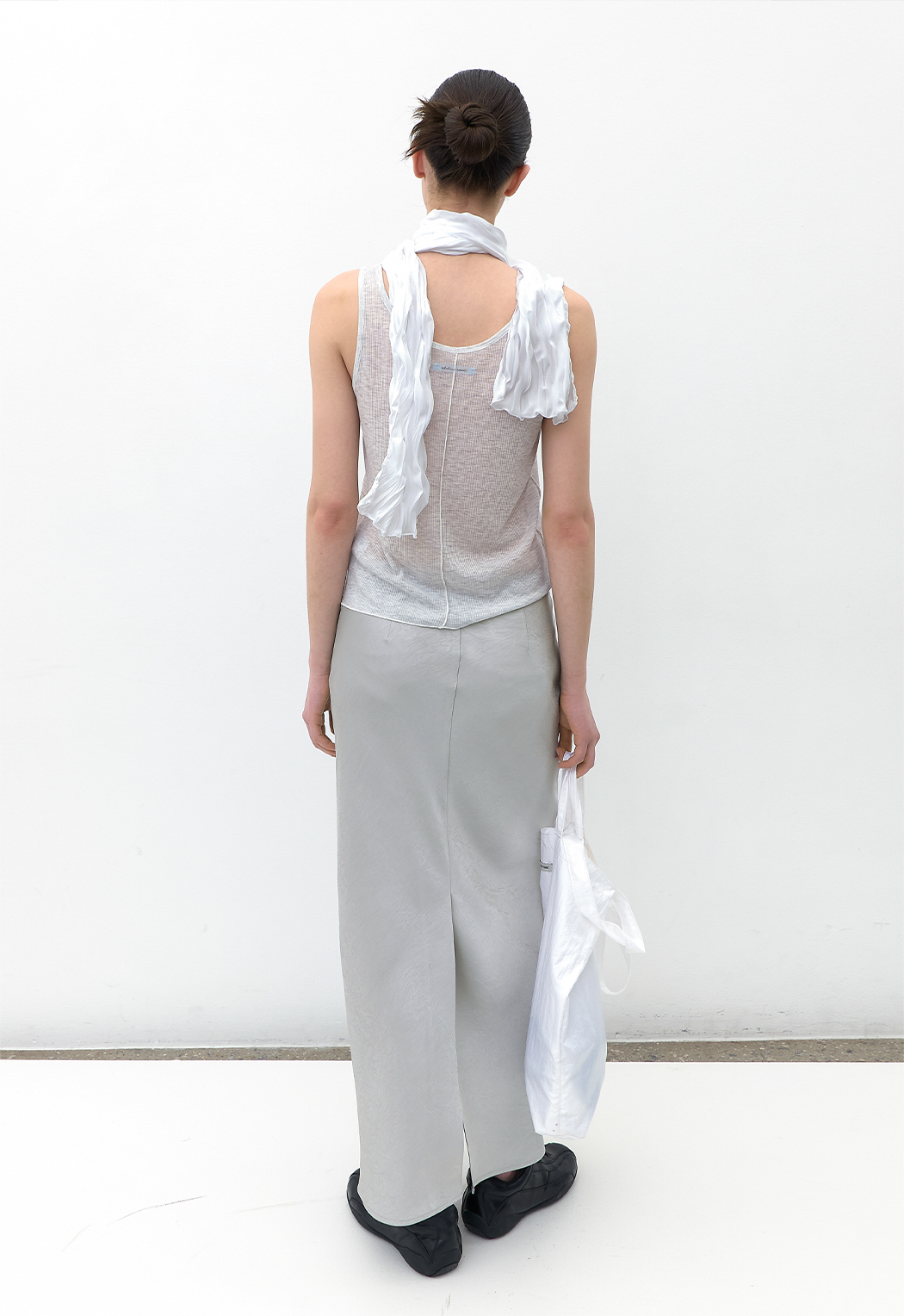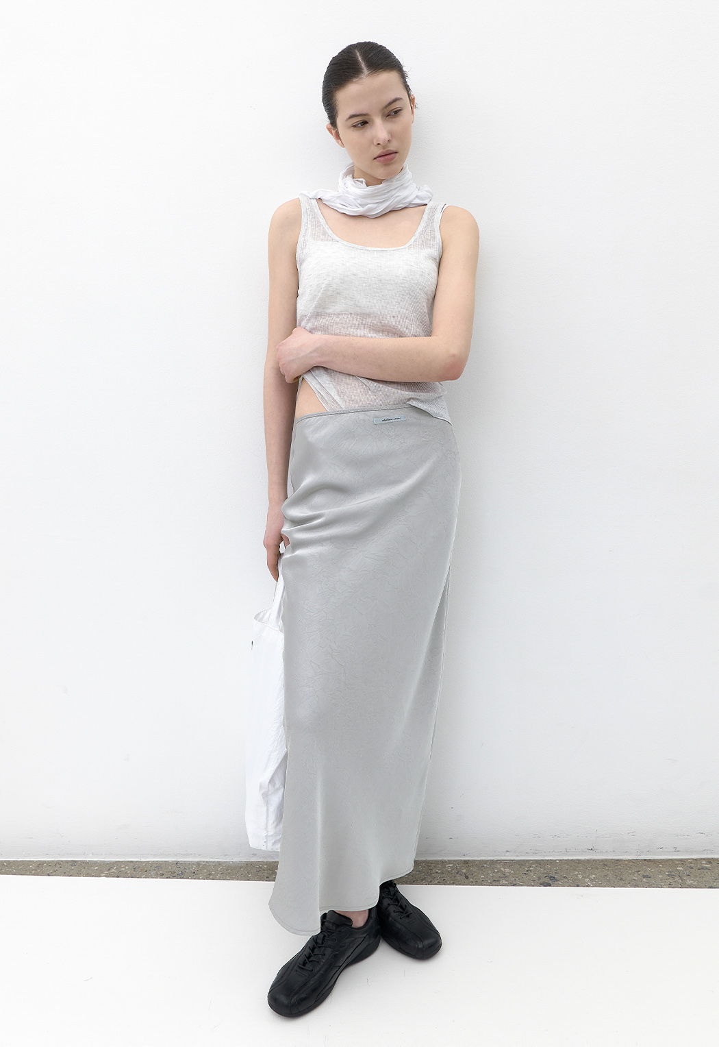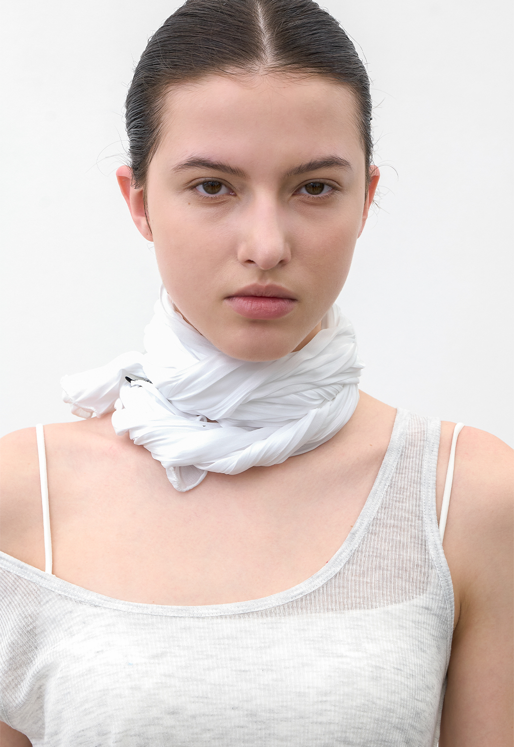 여유로운 기장감으로 목선에 가볍게 두르거나