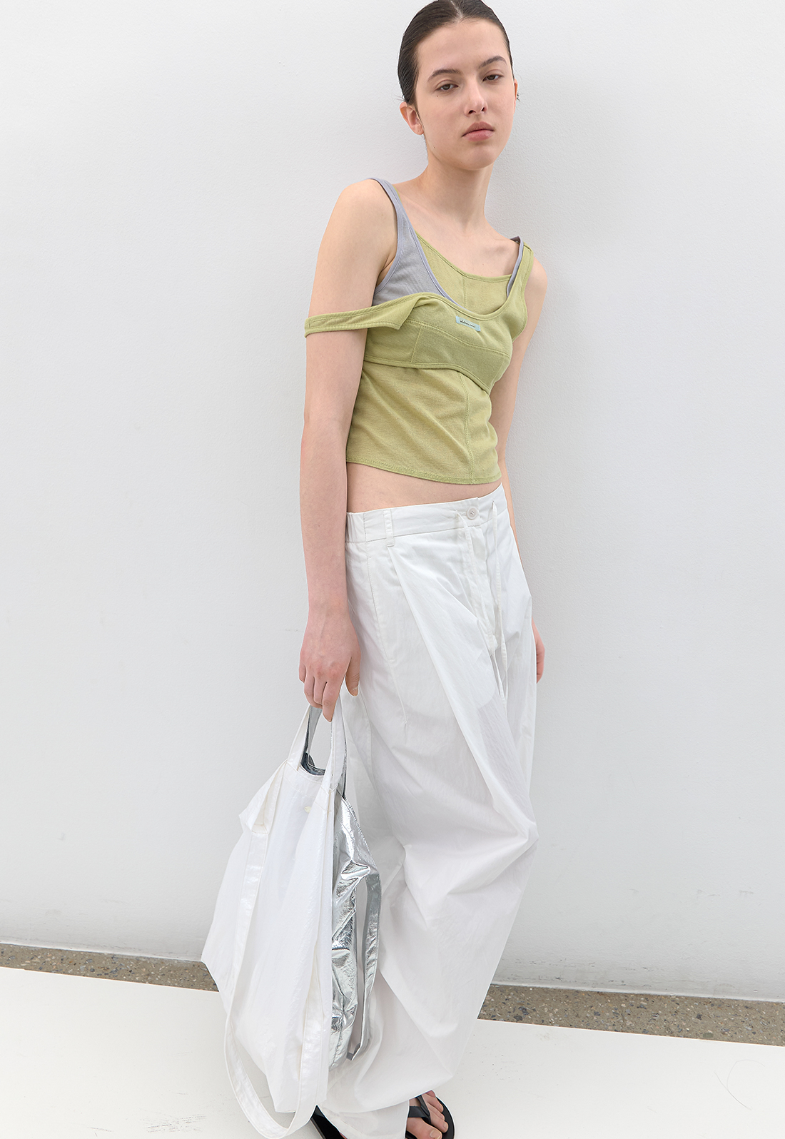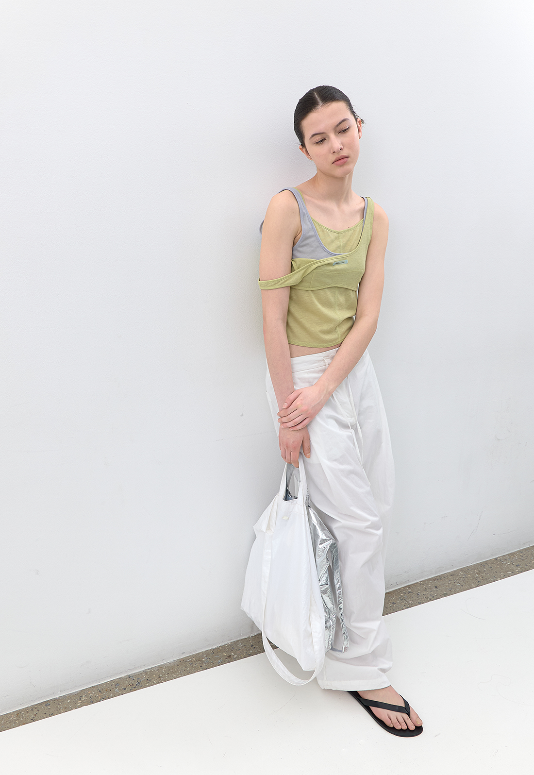 부드러운 터치감의 시어한 소재가 겹쳐지며