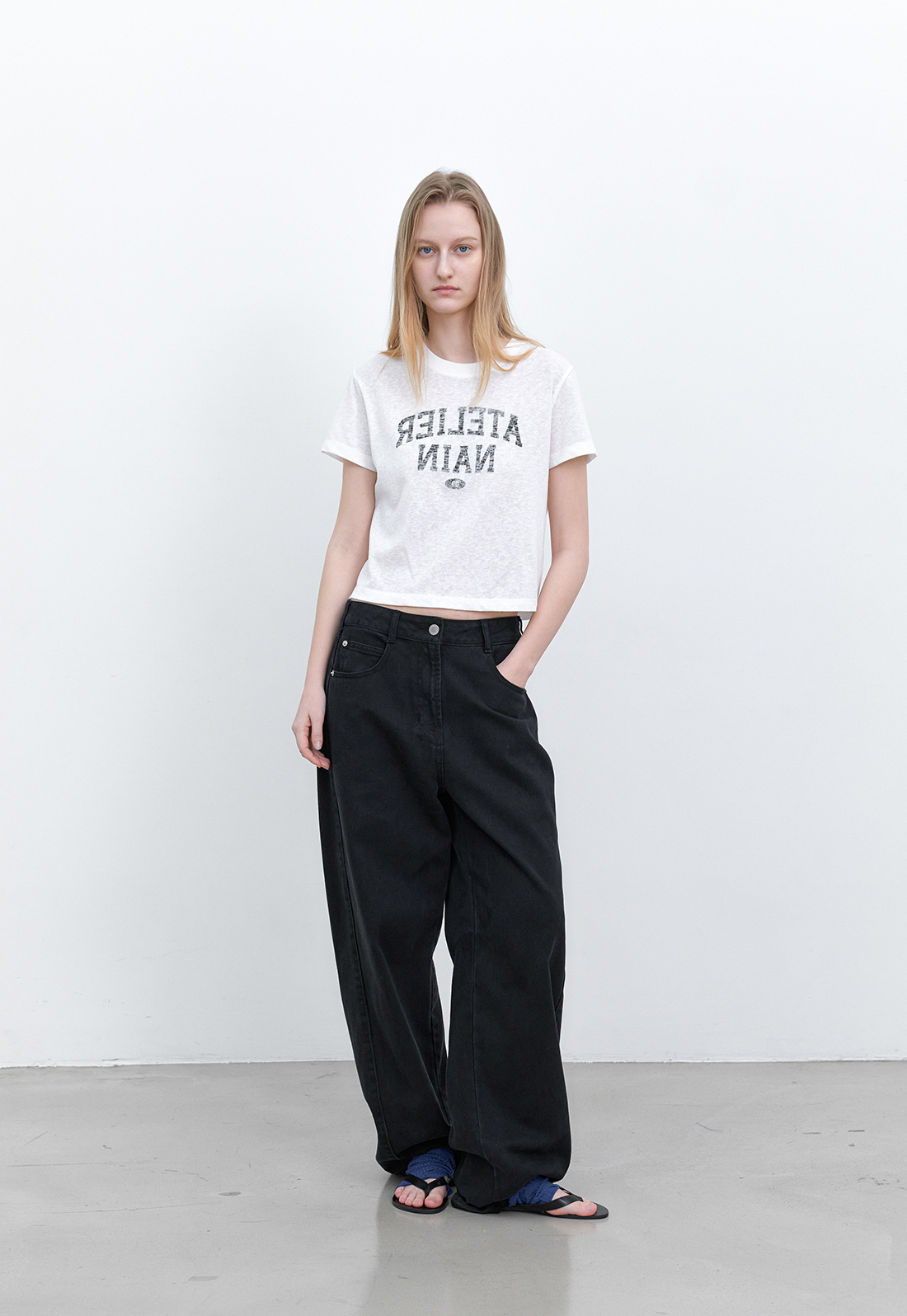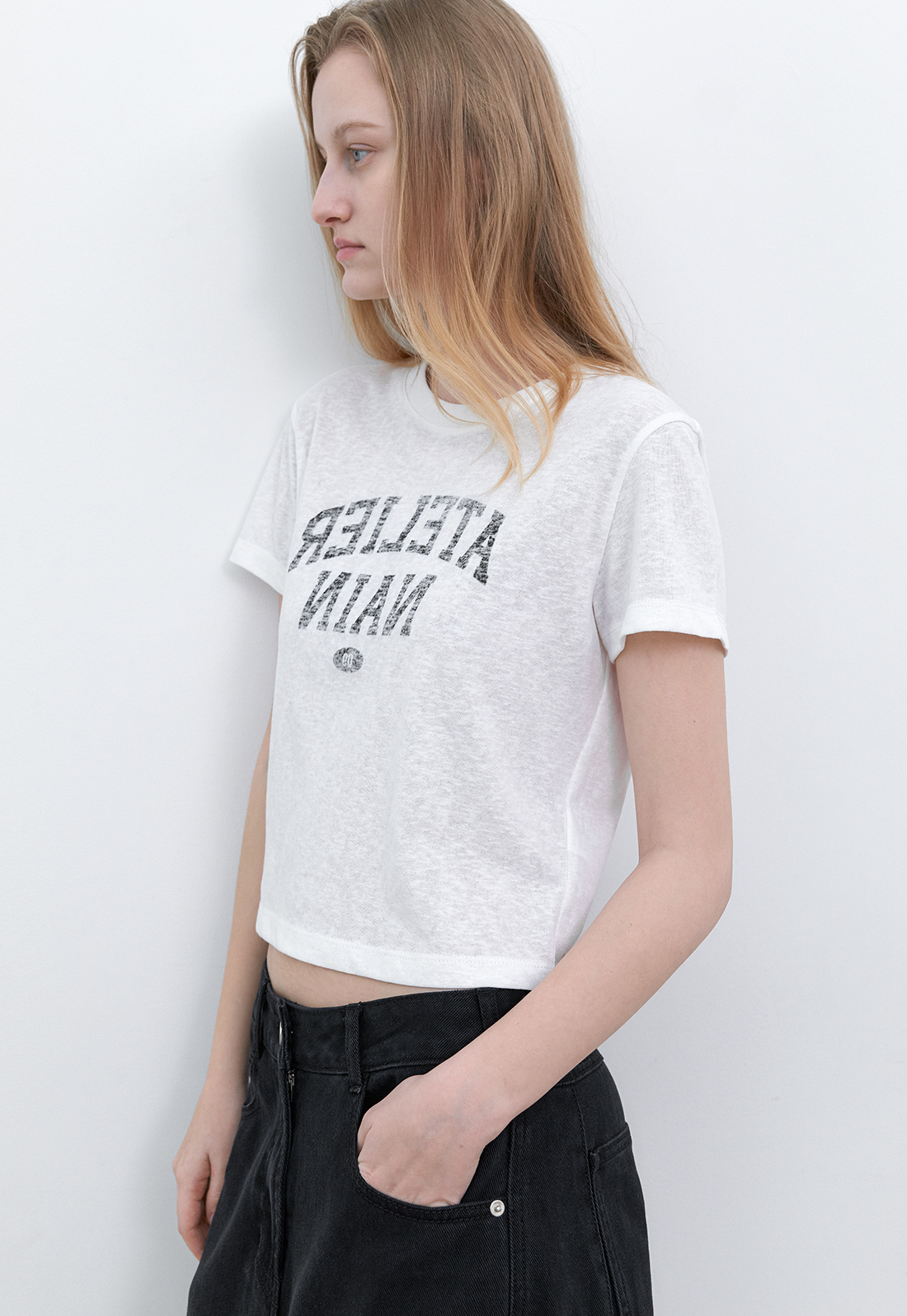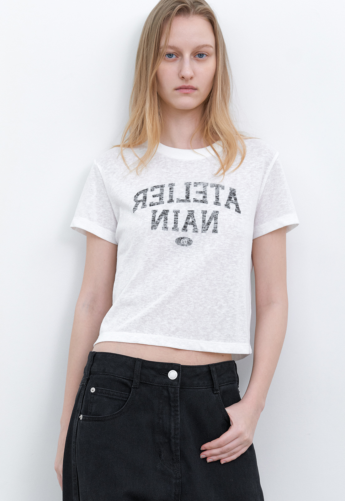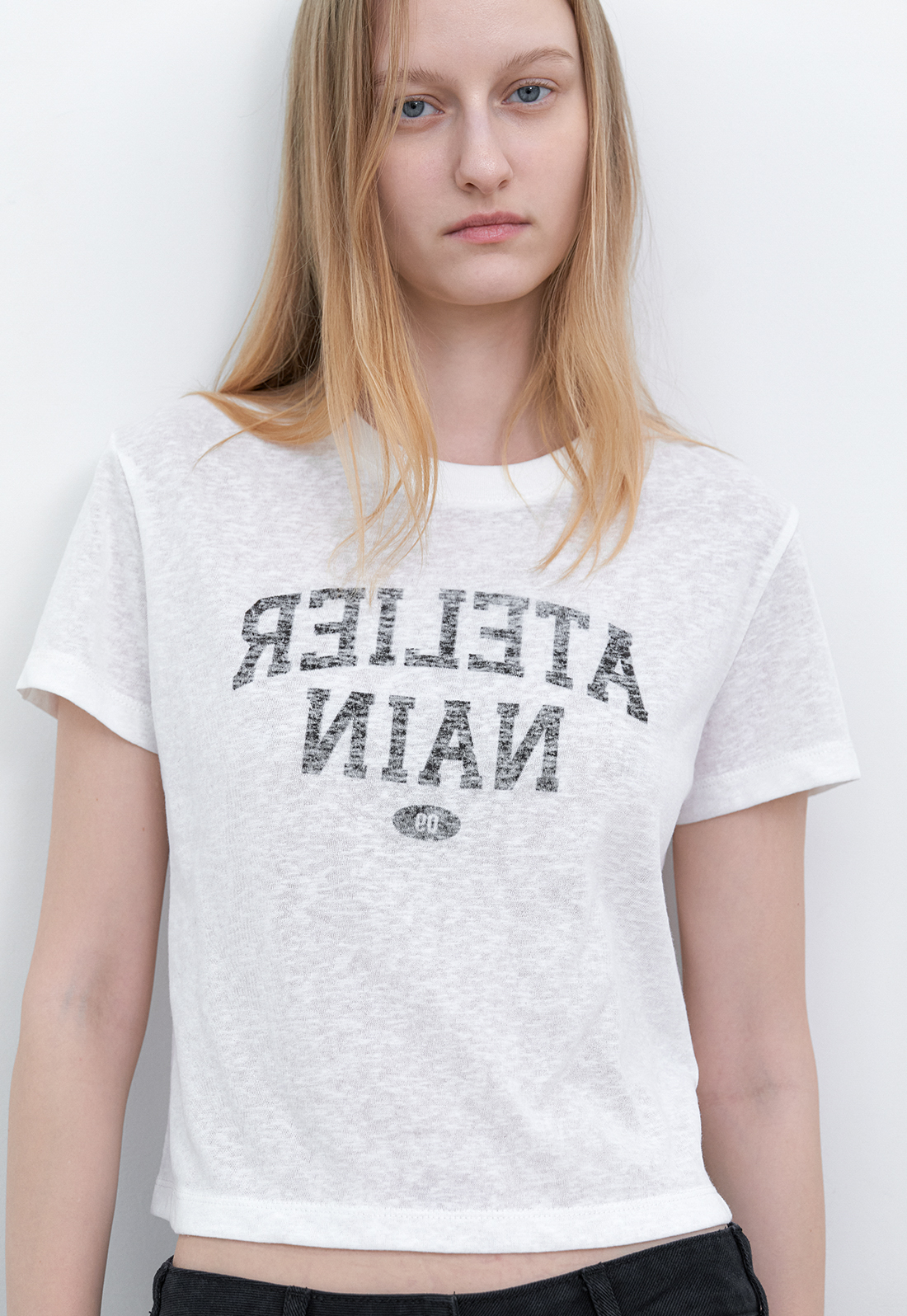 거꾸로 배치된 프린트가 마치 옷에 자연스럽게 배어든 것 같은