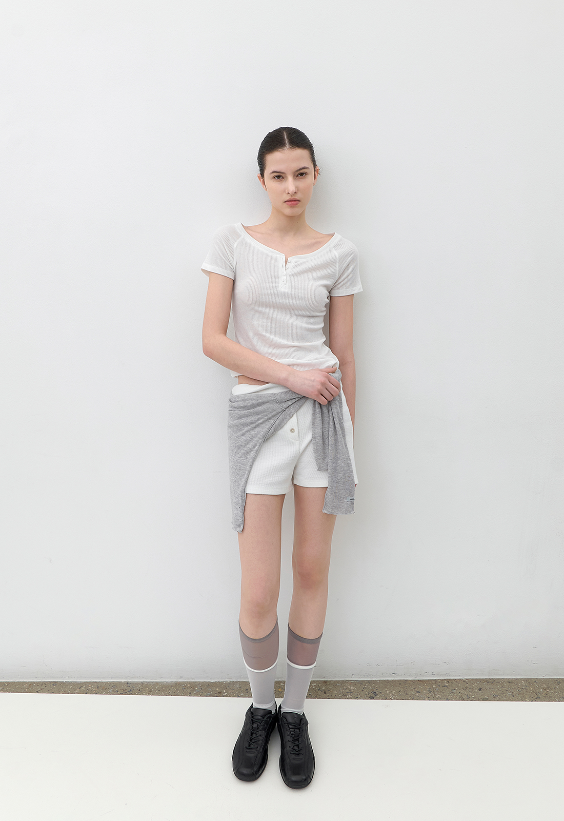 (T-7231)AN SOFT RIBBED BUTTON UP SLIM HALF T