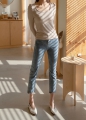 (OP-5902) Minimal Line Color Block Collar Knit One Piece S