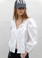 (SK-5092)UNBALANCED SHIRRING MIDI SKIRT